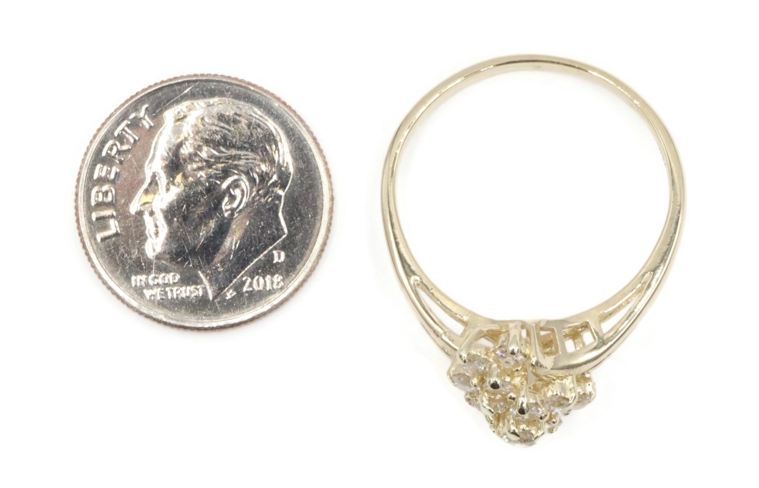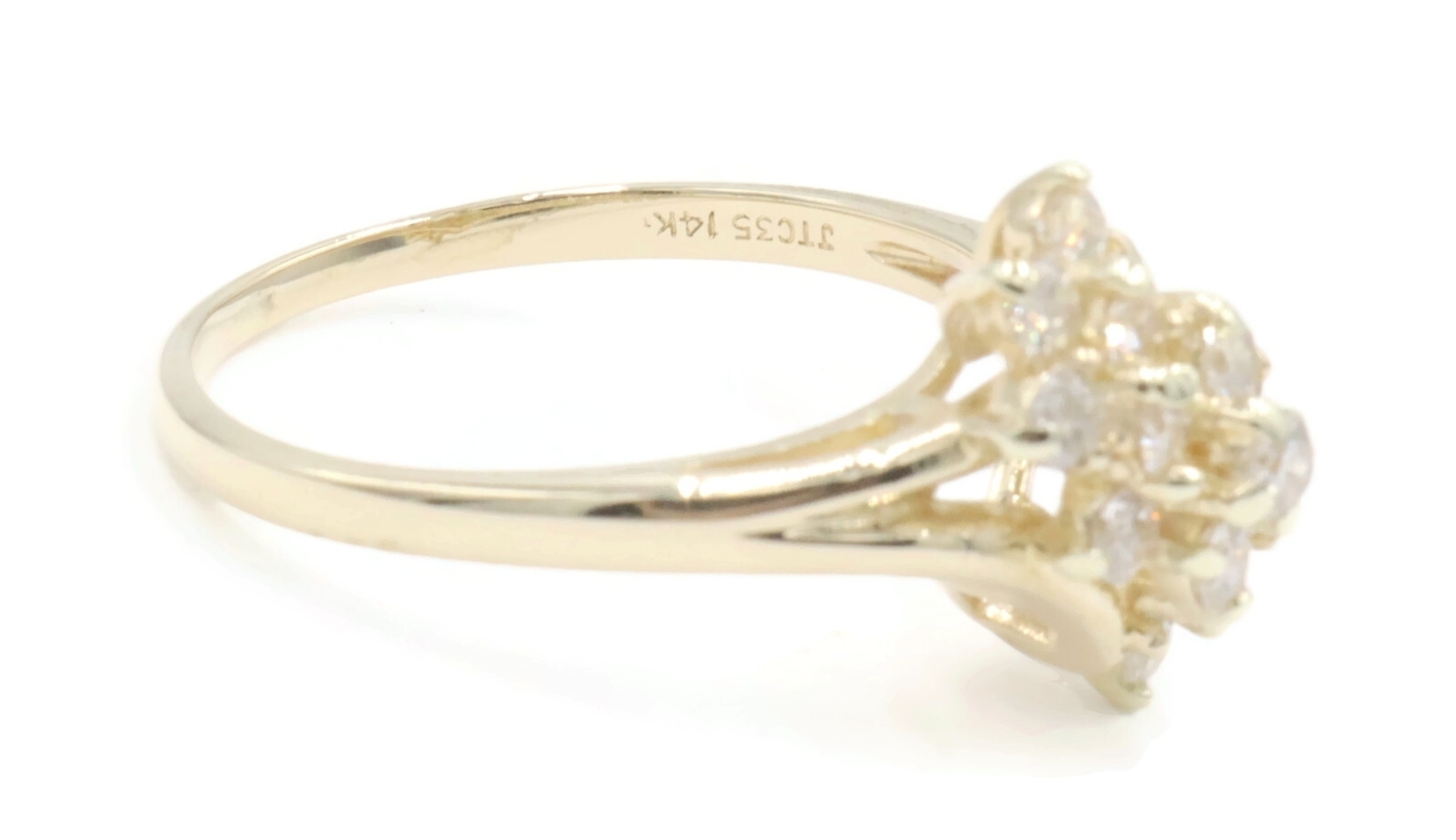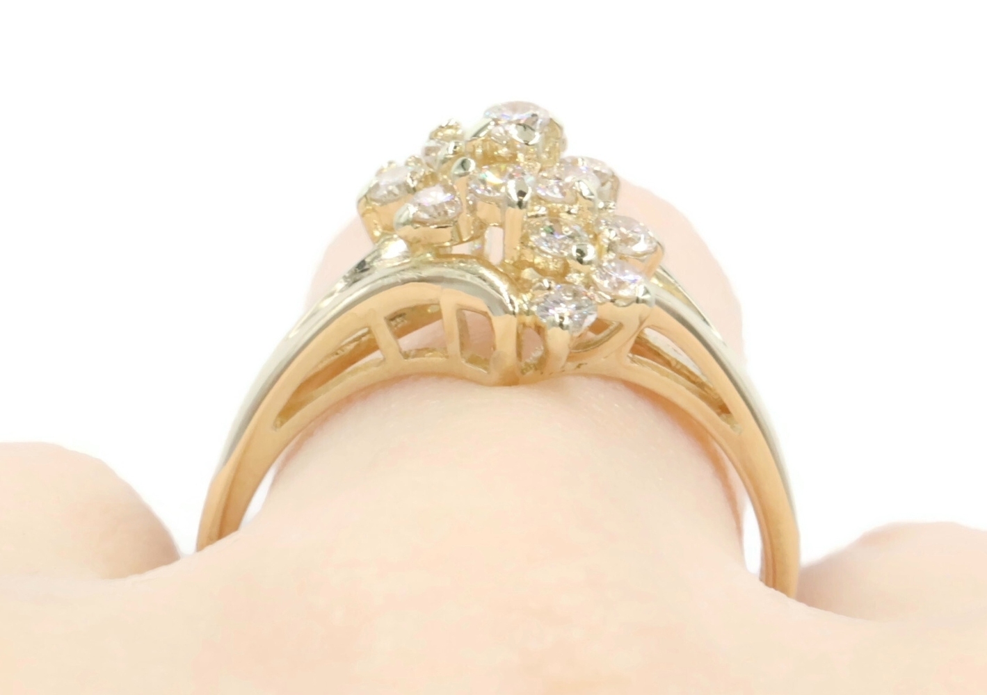 Women's 0.46 Ctw Round Diamond 14KT Yellow Gold Waterfall Cluster Ring JTC 3.13g. This ring is a size 8 1/4.