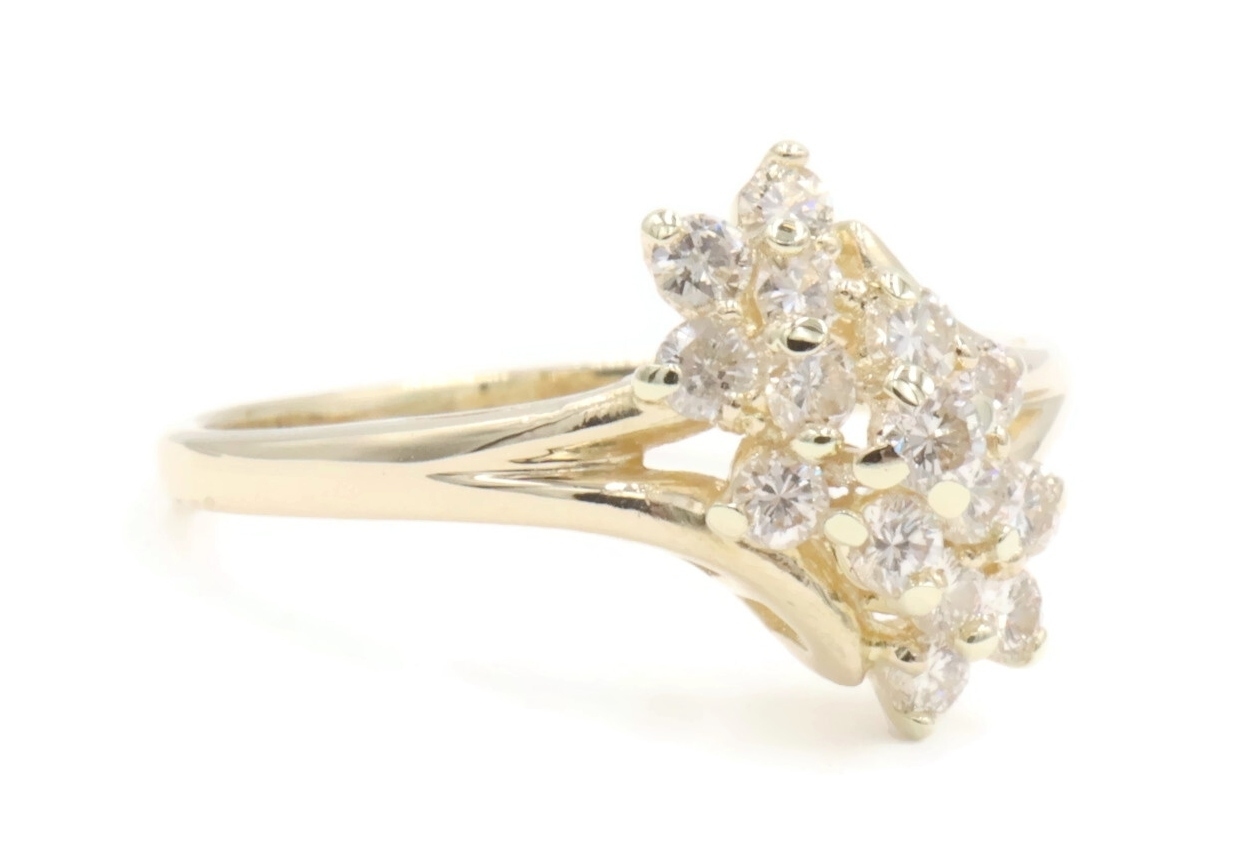 Women's 0.46 Ctw Round Diamond 14KT Yellow Gold Waterfall Cluster Ring JTC 3.13g | USA Pawn