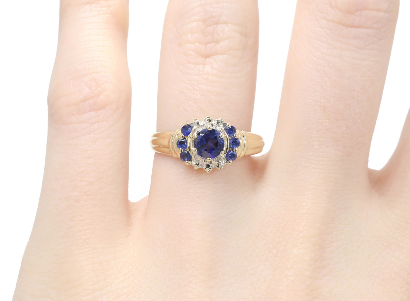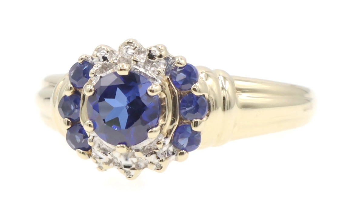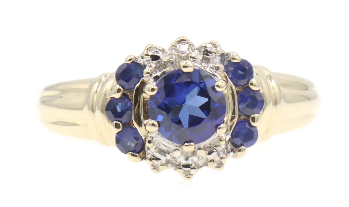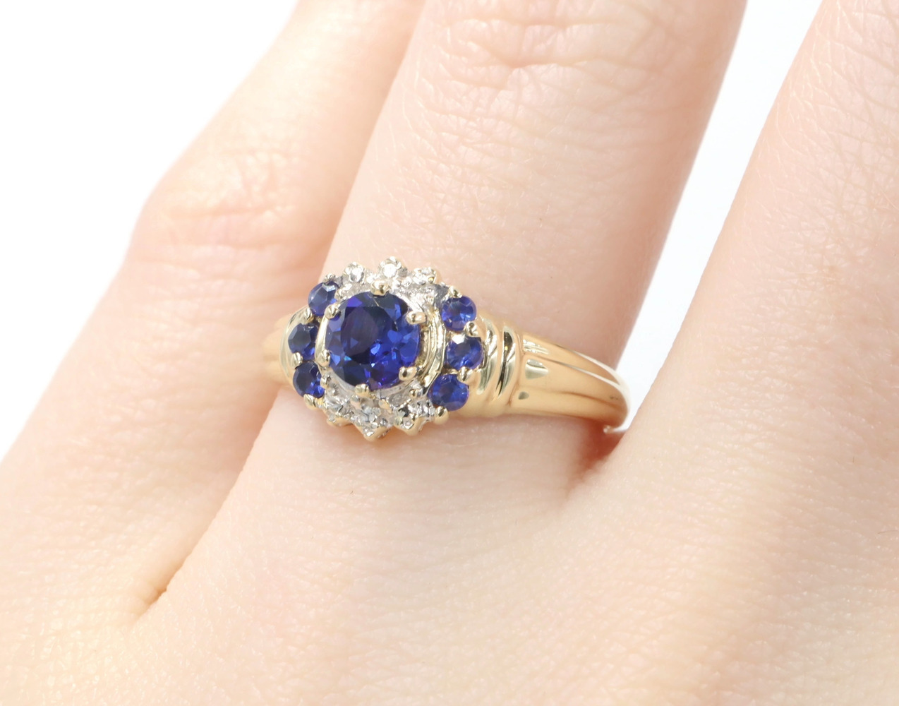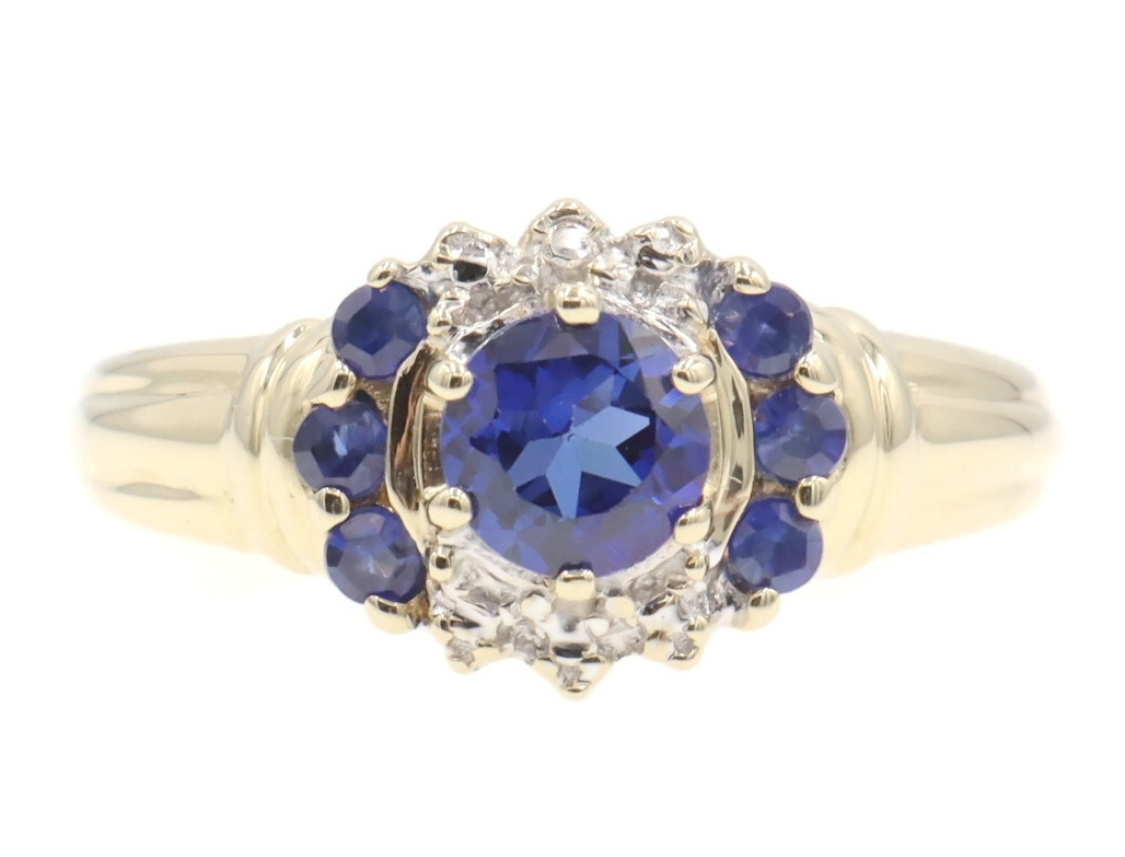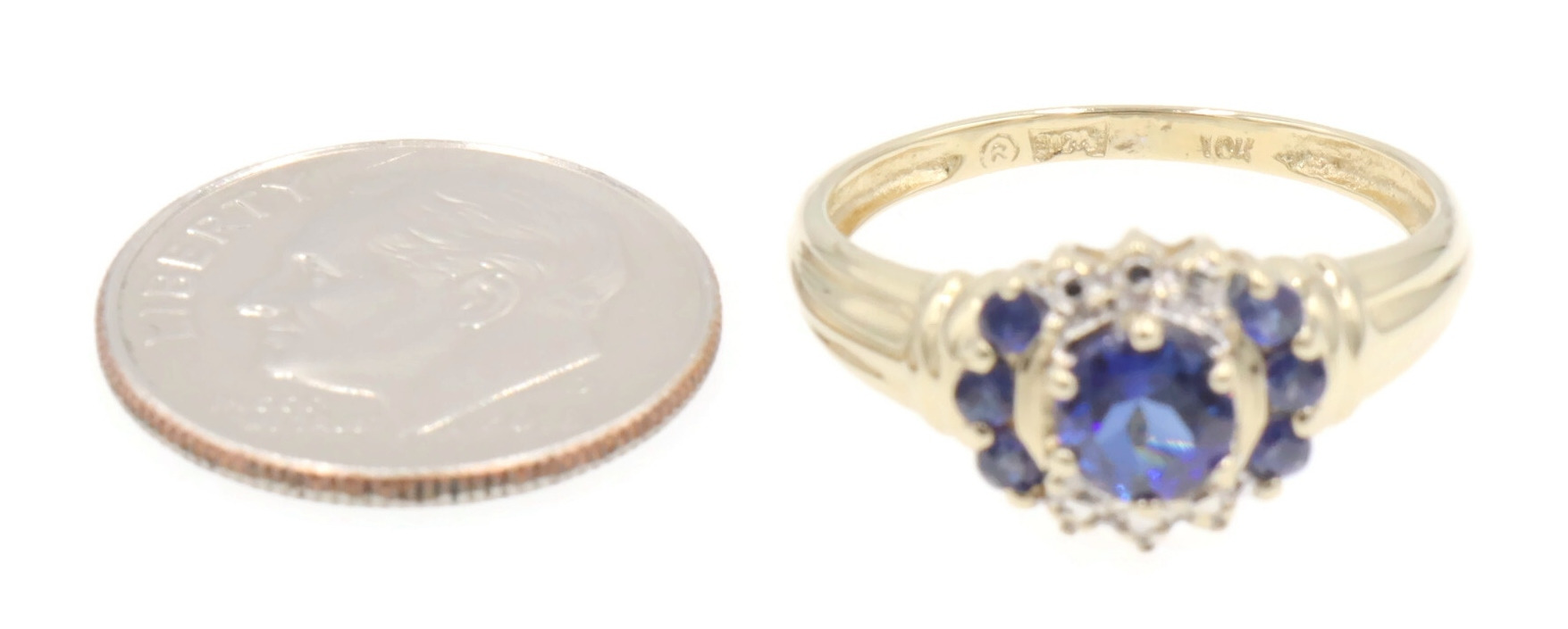 Women's 0.68 Ctw Round Cut Lab-Created Blue Sapphire 10KT Yellow Gold Ring 1.9g | USA Pawn