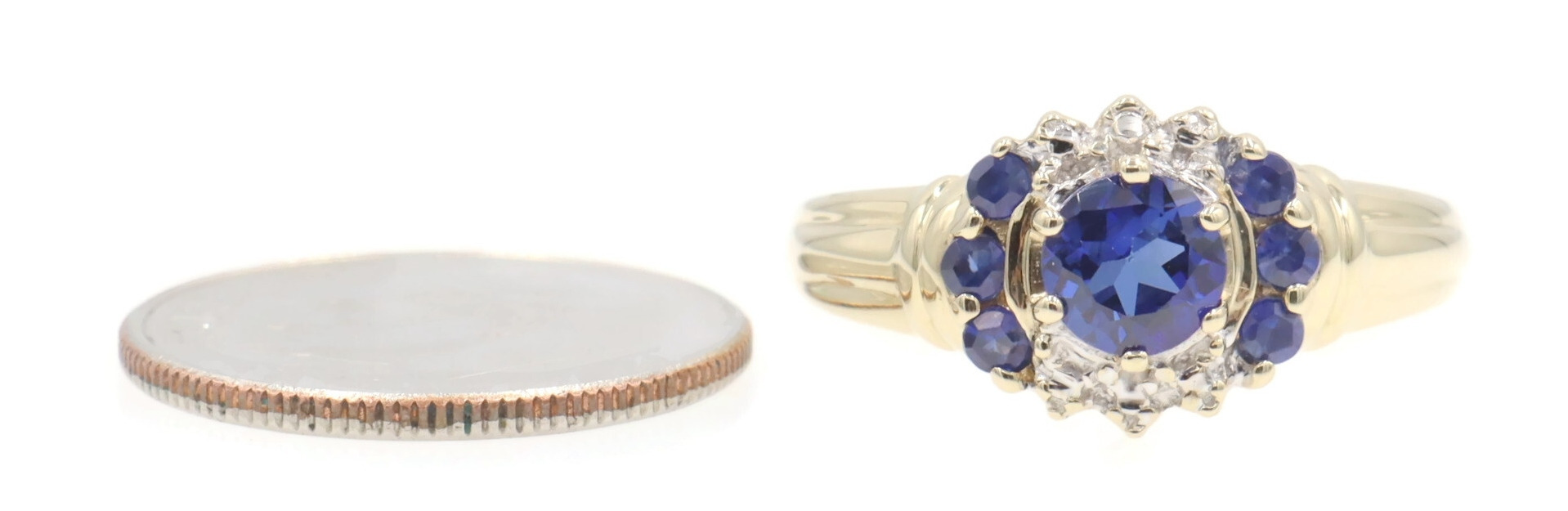 Women's 0.68 Ctw Round Cut Lab-Created Blue Sapphire 10KT Yellow Gold Ring 1.9g. This ring is a size 7.