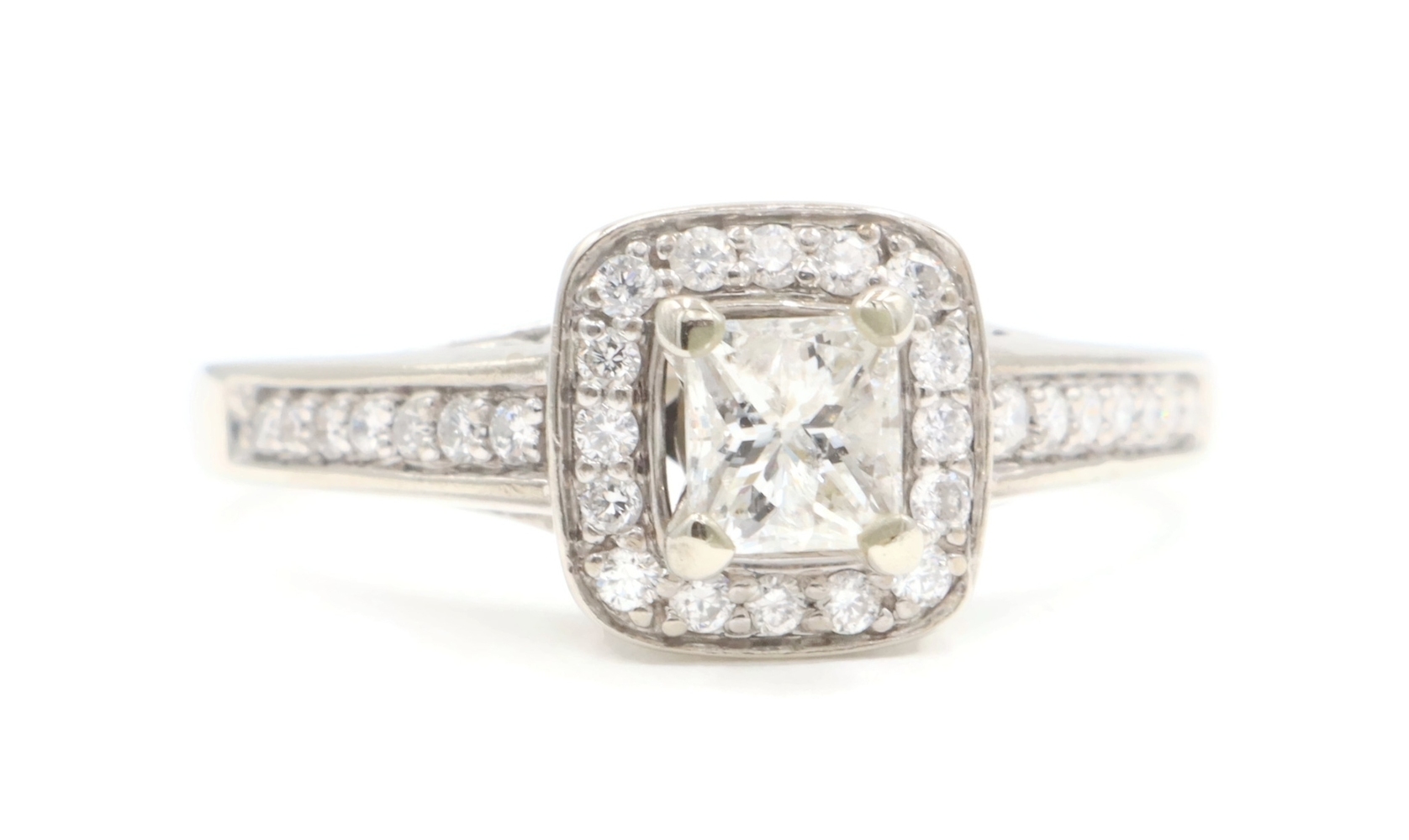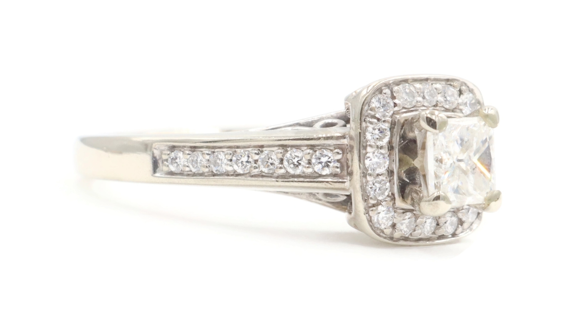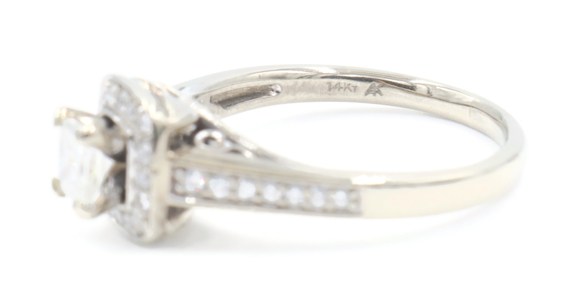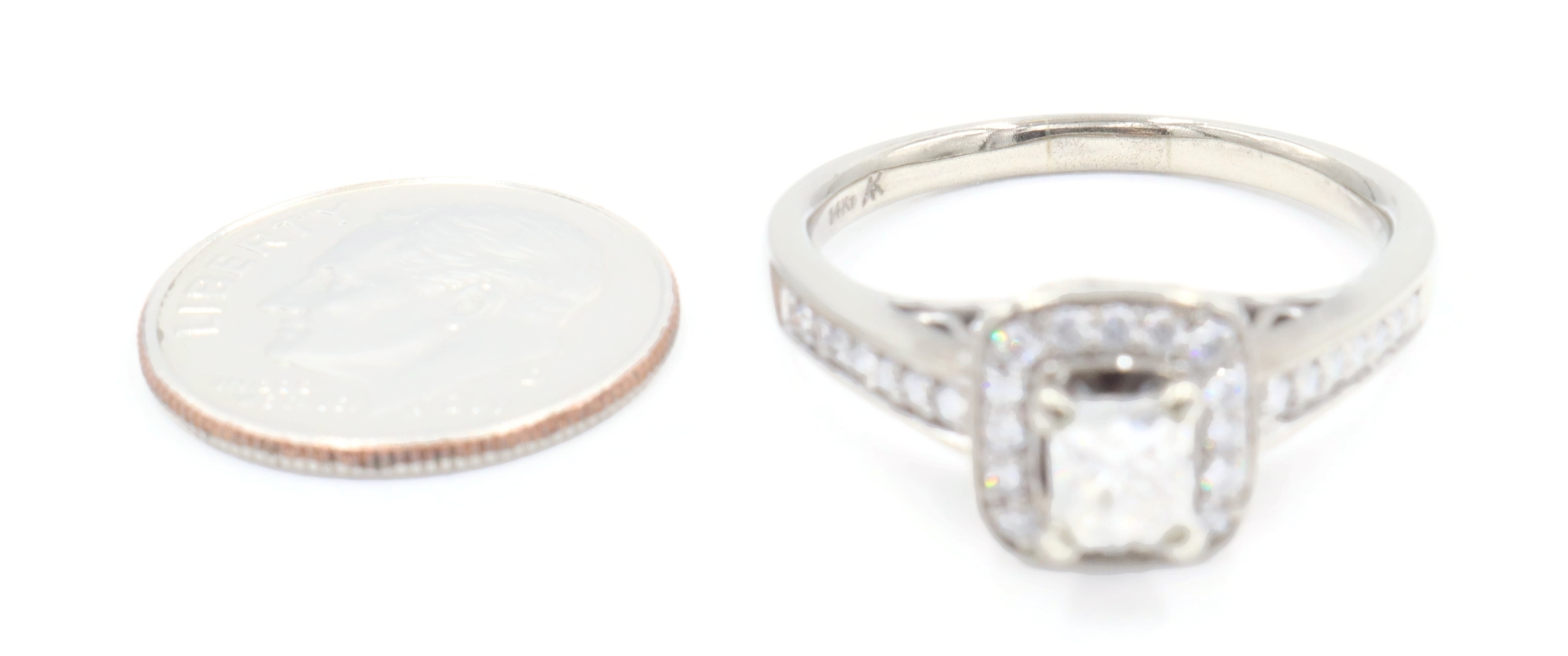 Women's 0.80 Ctw Princess & Round Diamond 14KT White Gold Square Halo Ring 4.68g. This ring is a size 8 3/4.