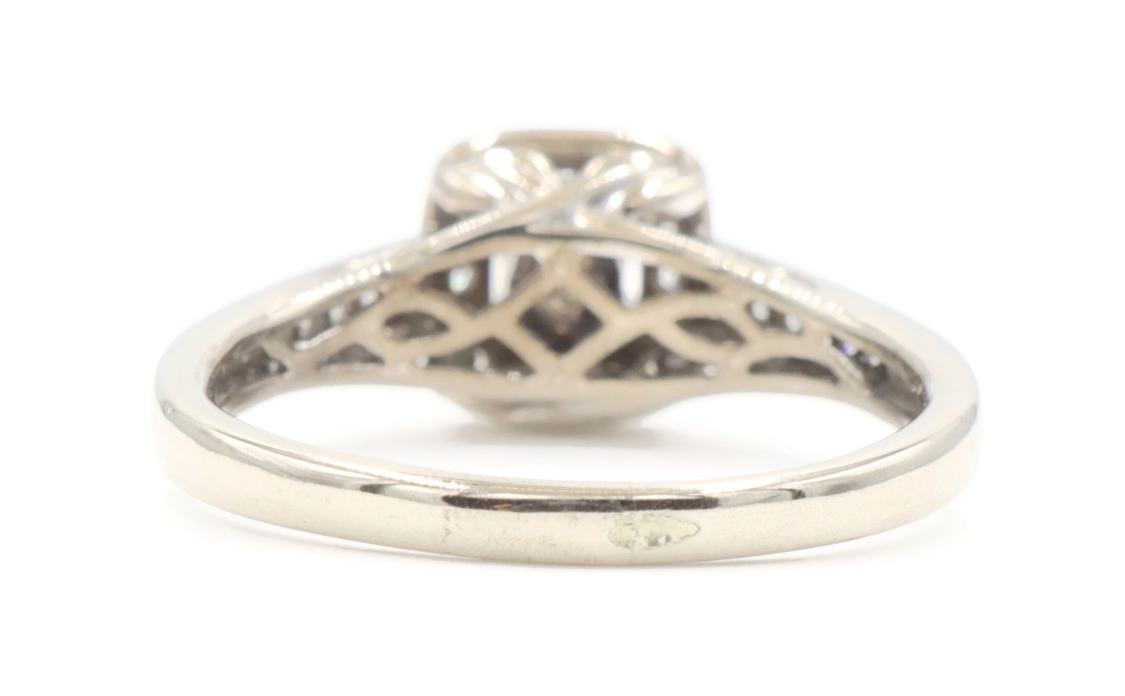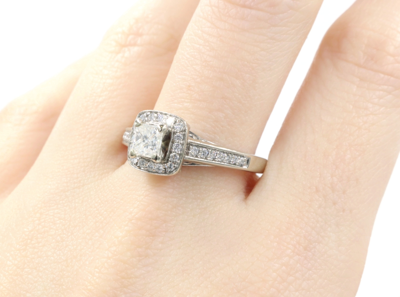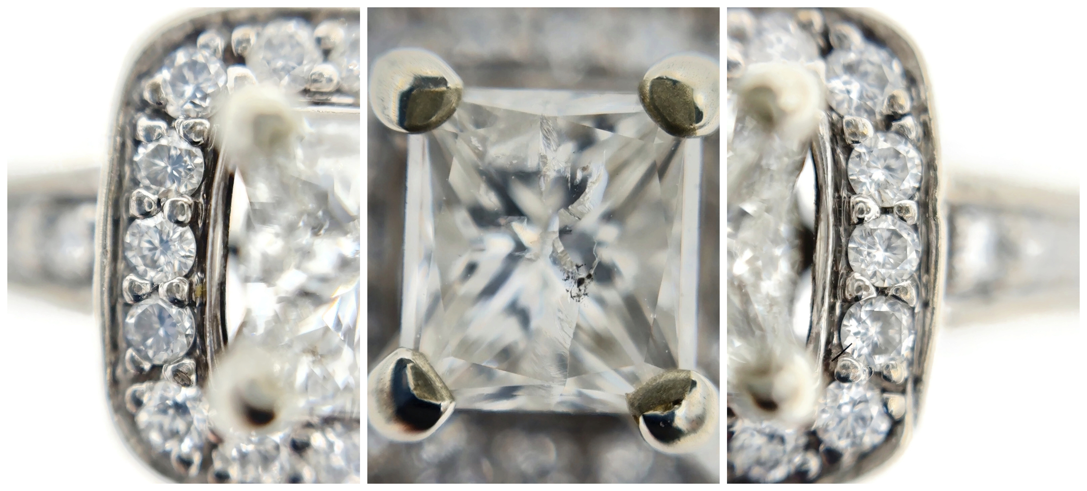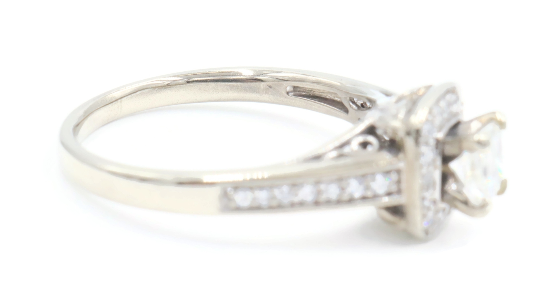 Women's 0.80 Ctw Princess & Round Diamond 14KT White Gold Square Halo Ring 4.68g. This ring is a size 8 3/4.