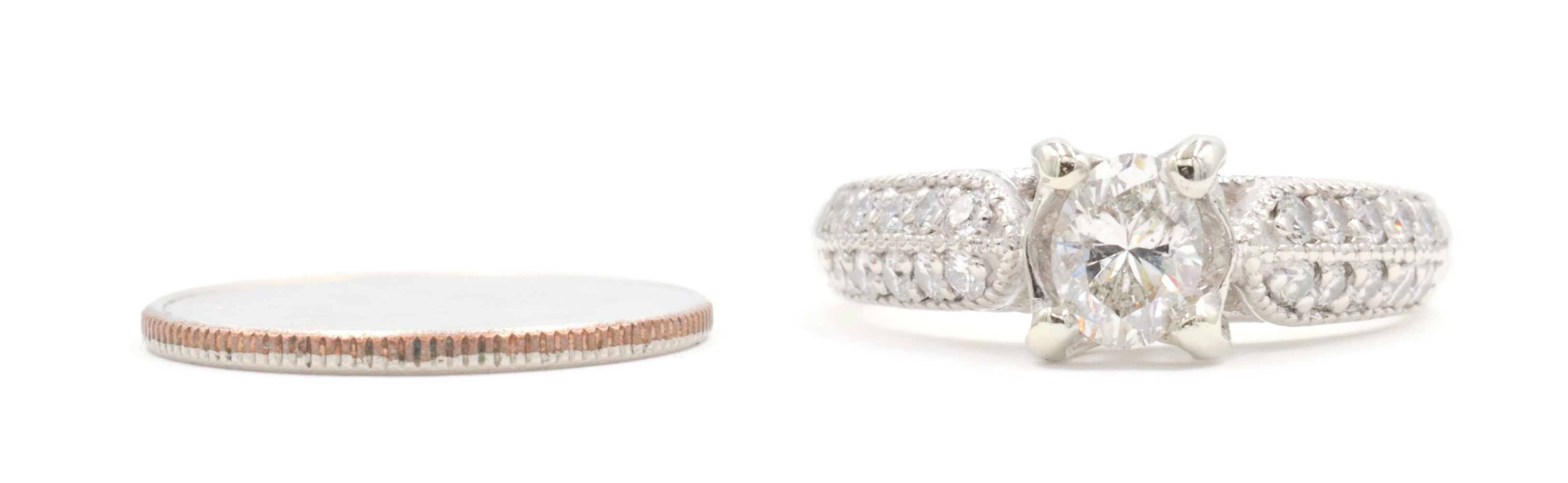 Women's 1.02 Ctw Oval & Round Diamond 14KT White Gold Milgrain Engagement Ring | USA Pawn