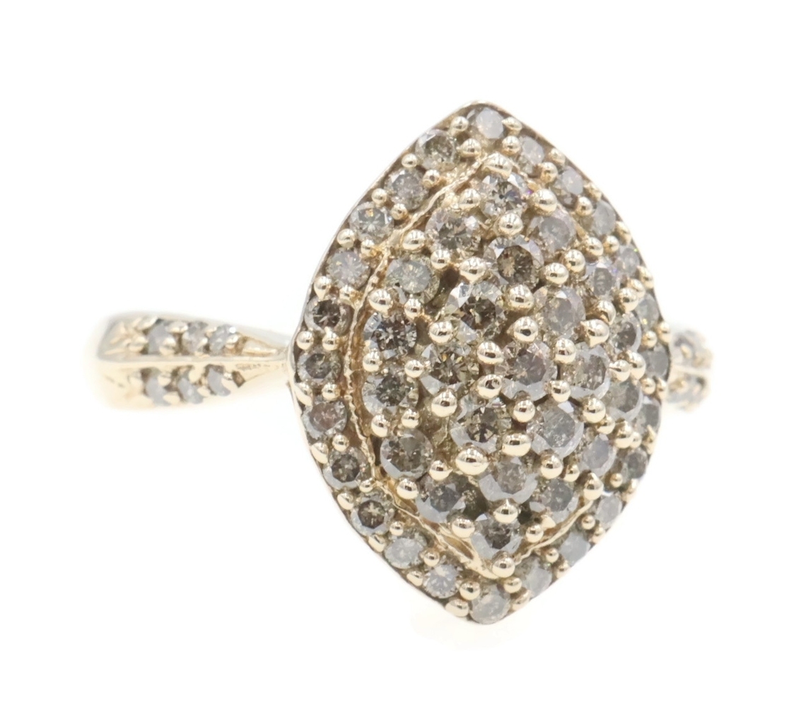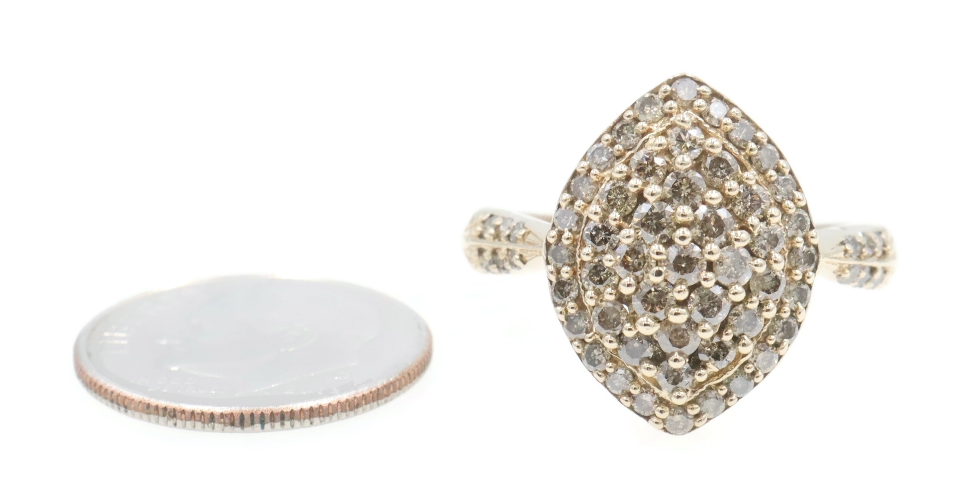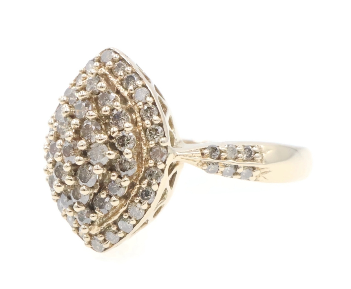 Women's 1.12 Ctw Round Champagne Diamond 14KT Gold Marquise Cluster Ring SJ 4.2g. This ring is a size 9.
