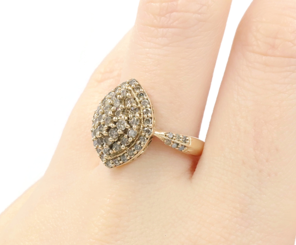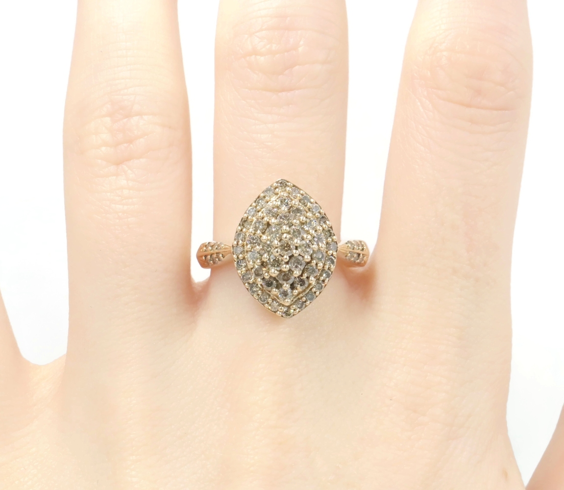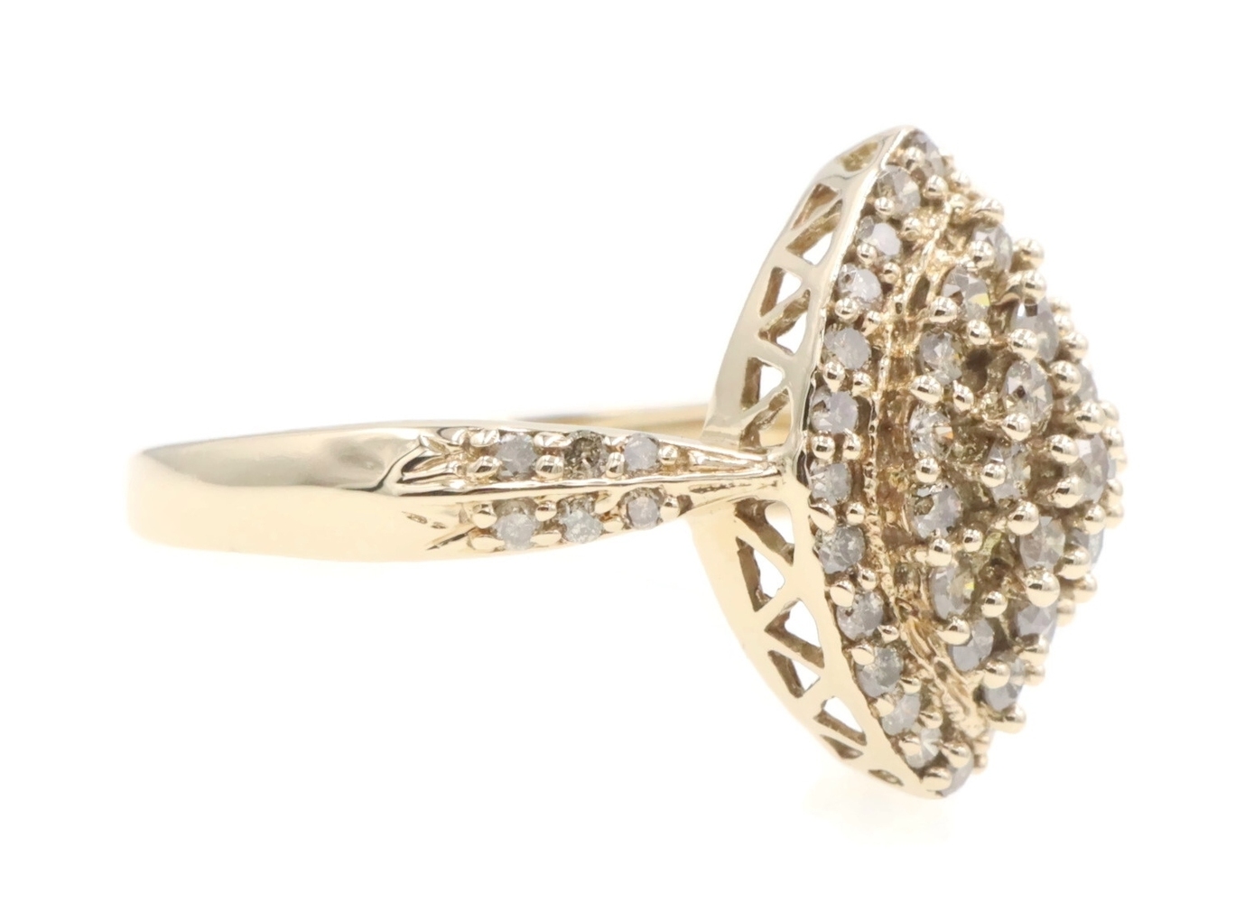 Women's 1.12 Ctw Round Champagne Diamond 14KT Gold Marquise Cluster Ring SJ 4.2g. This ring is a size 9.