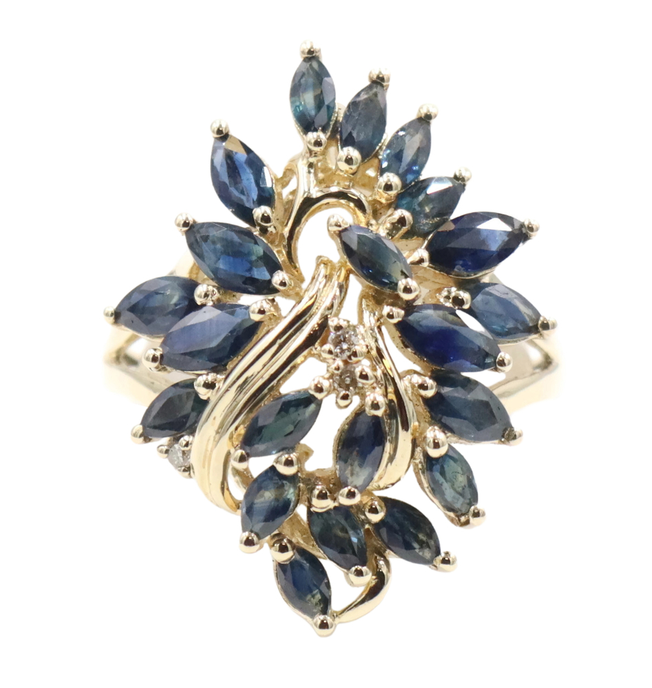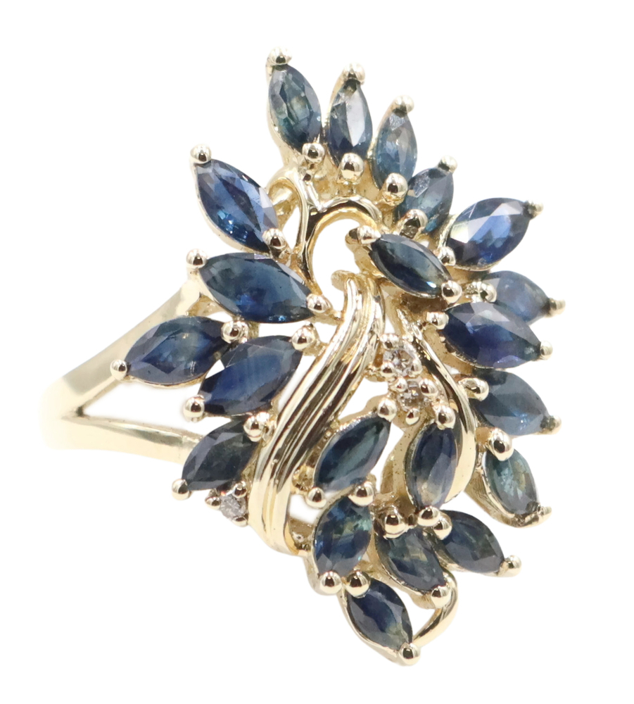 Women's 1.35 Ctw Marquise Natural Sapphire & Diamond Accents 14KT Gold Ring FP | USA Pawn