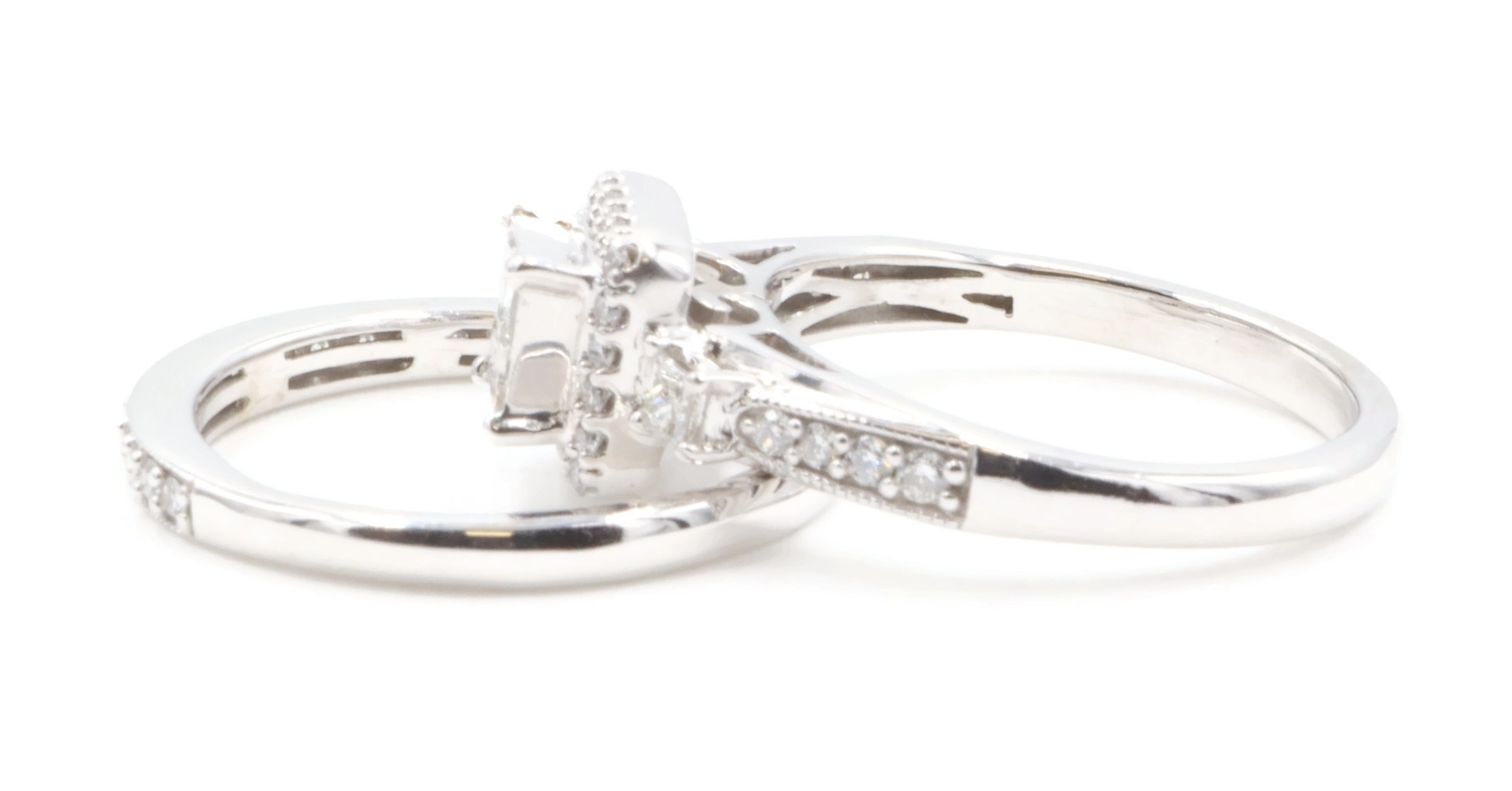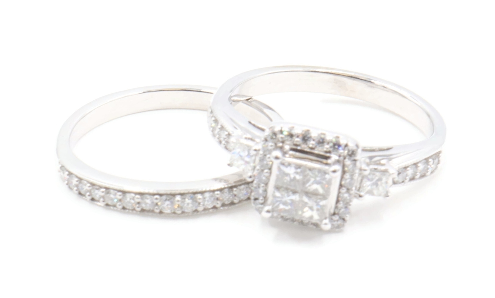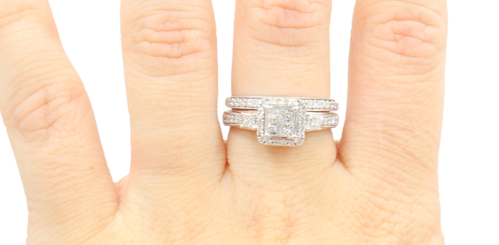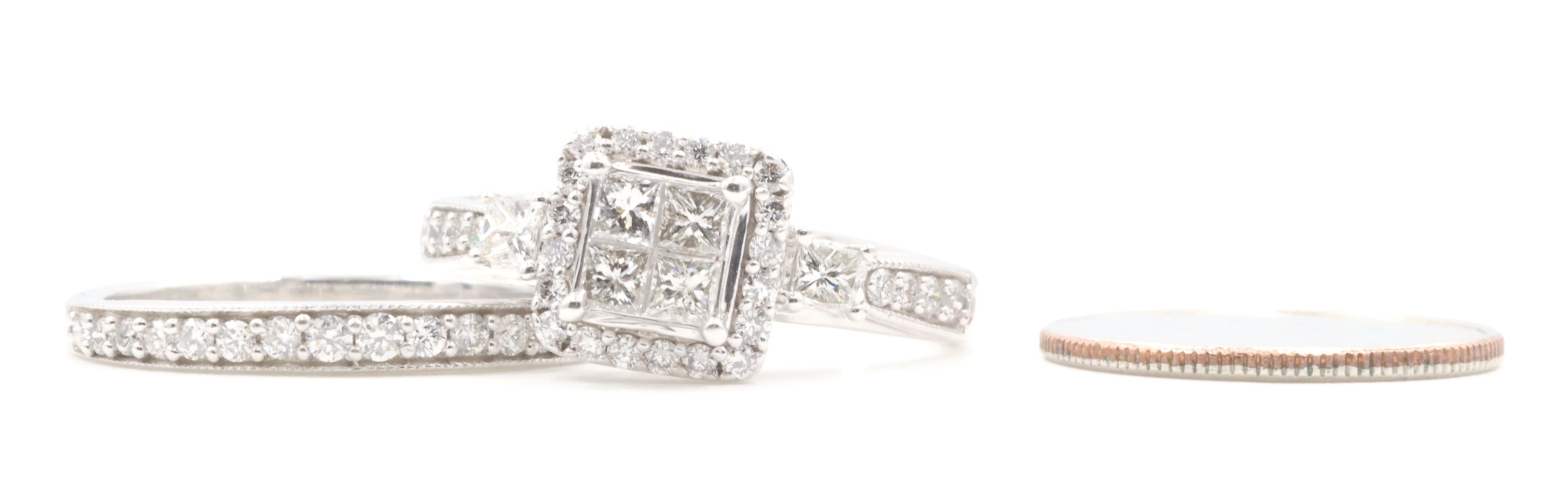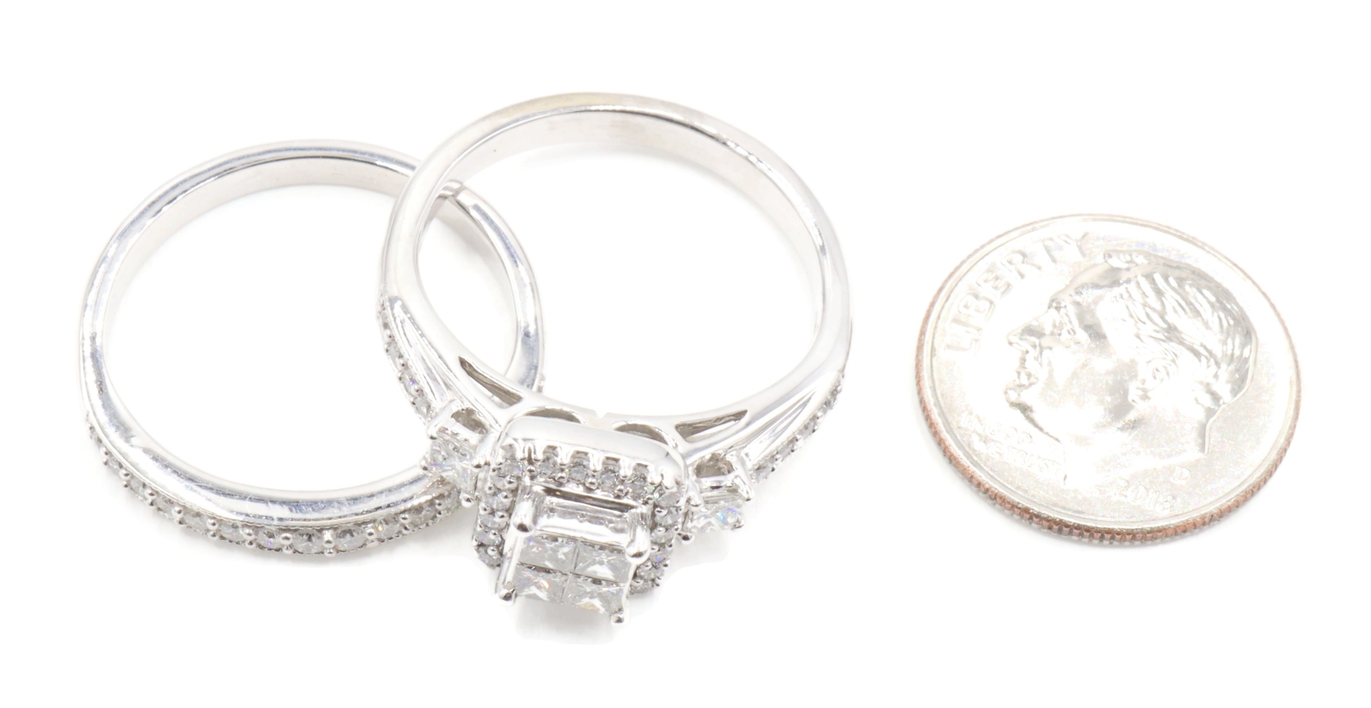 Women's 1.40 ctw Princess & Round Diamond 10KT White Gold Wedding Ring Set 7.0g | USA Pawn