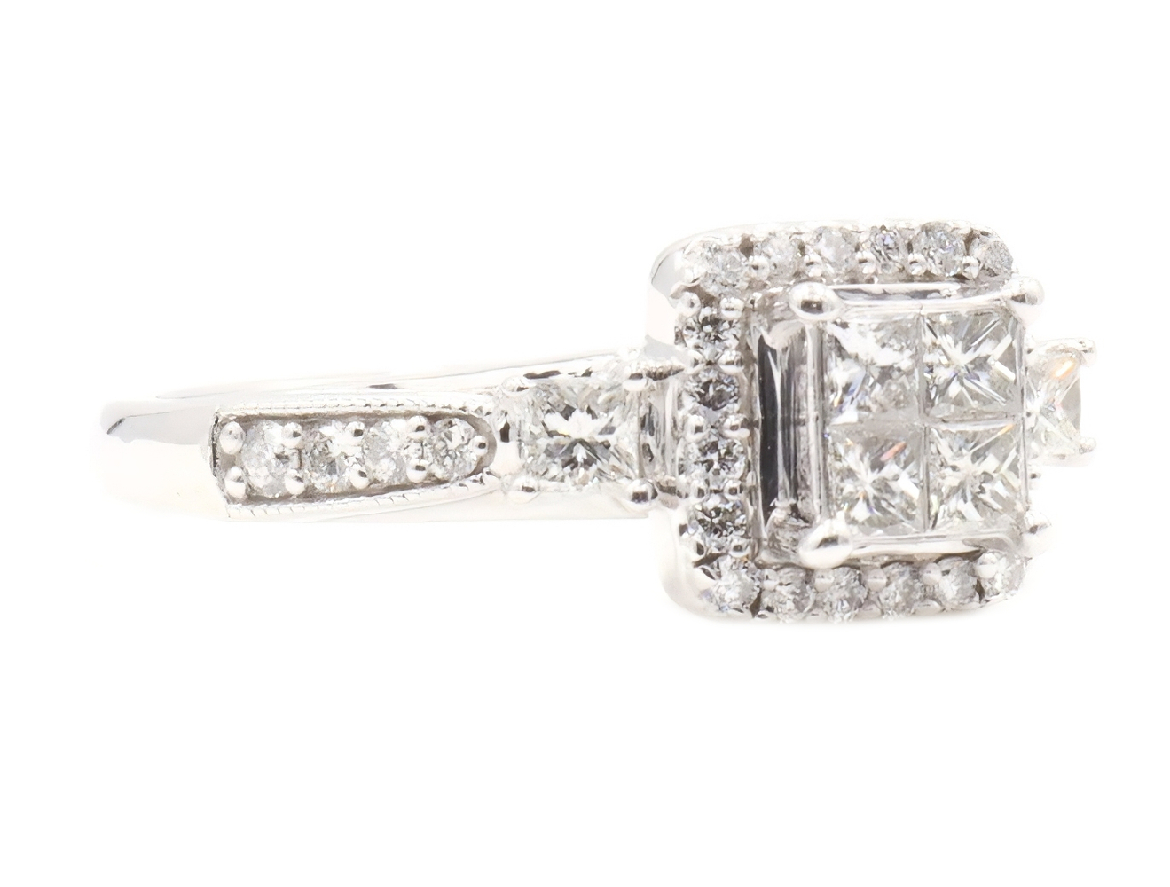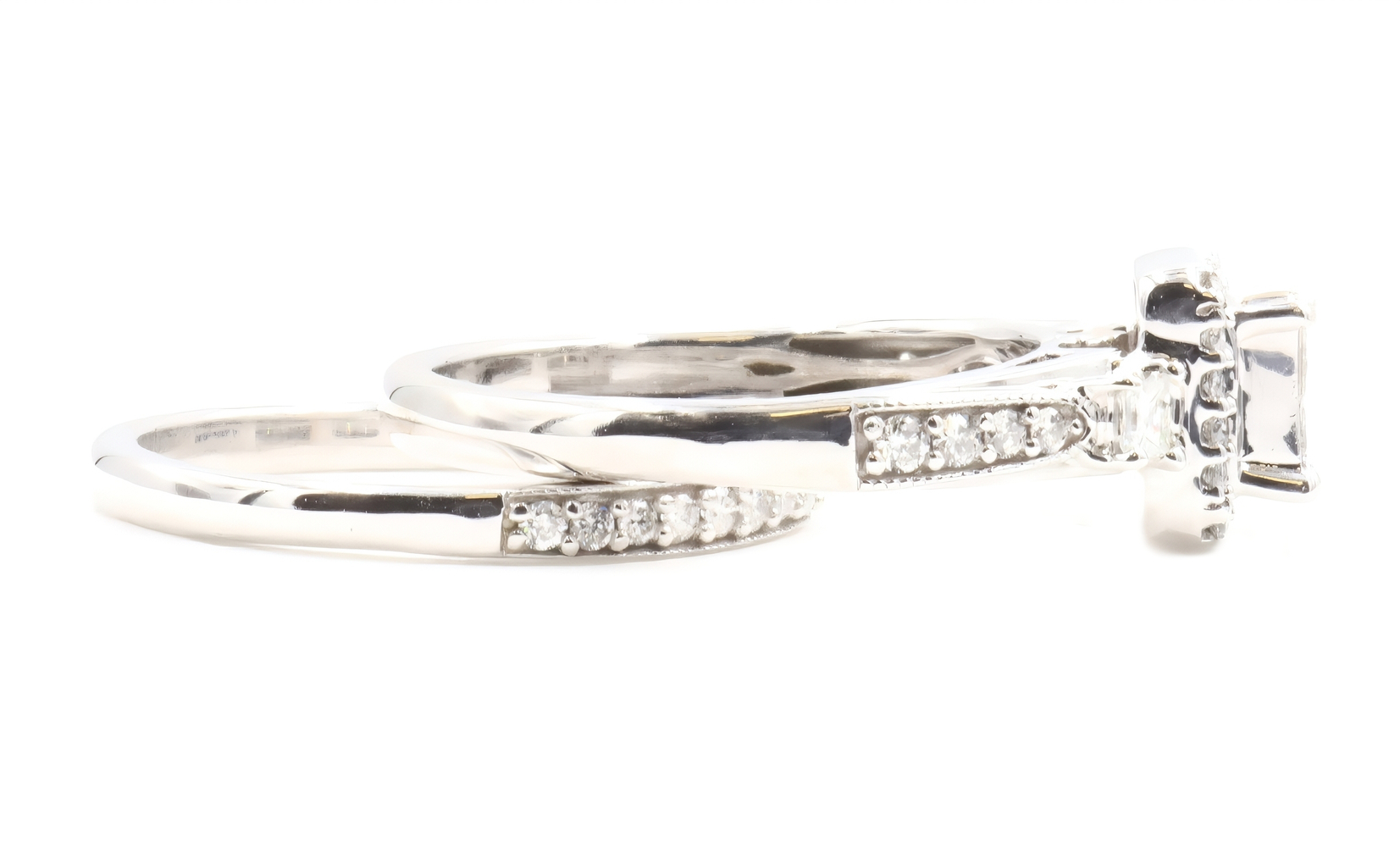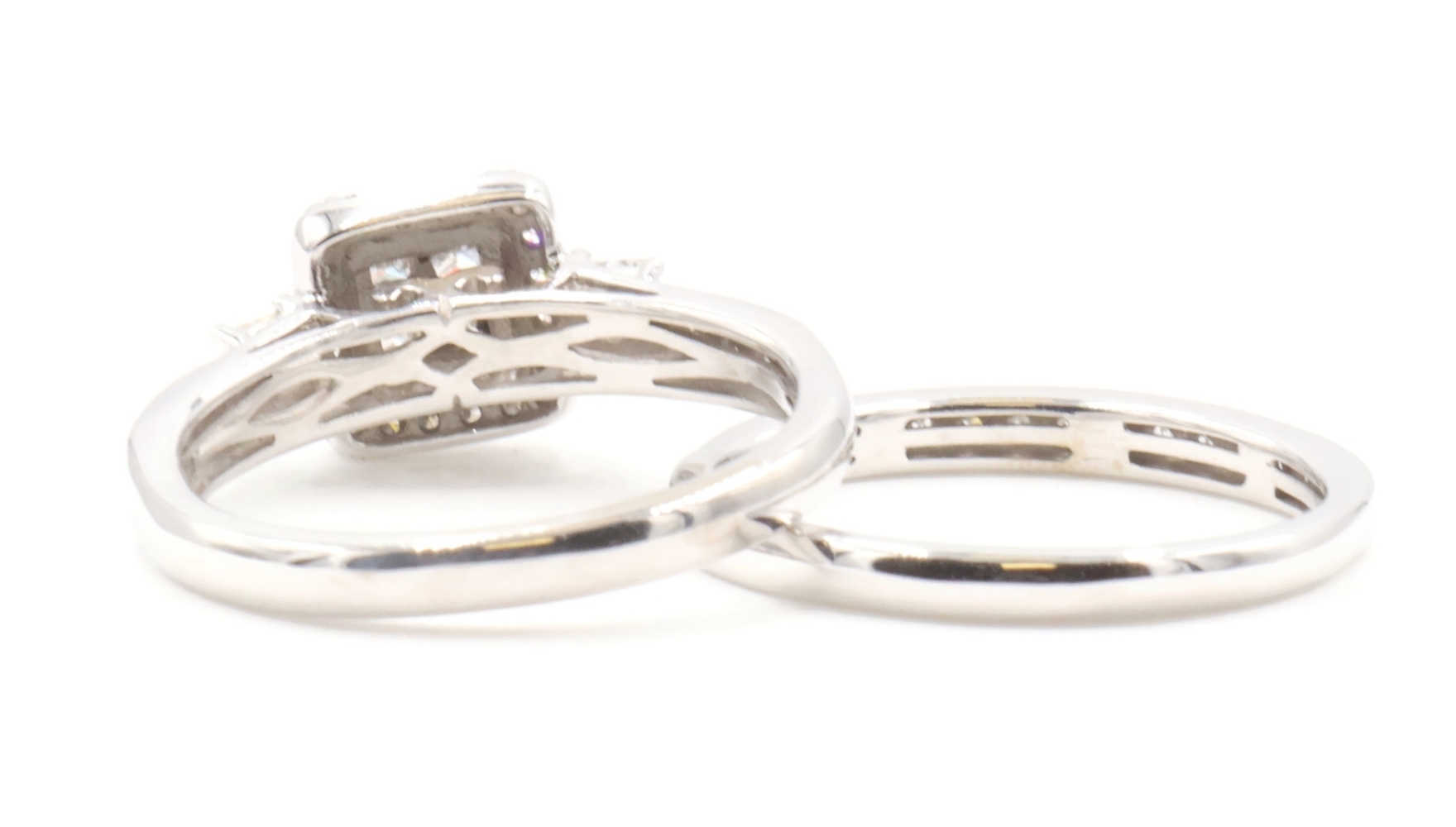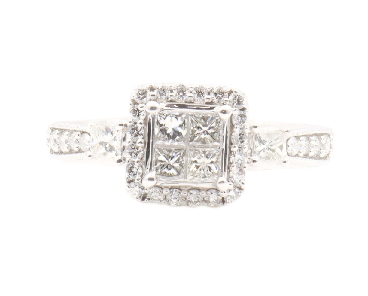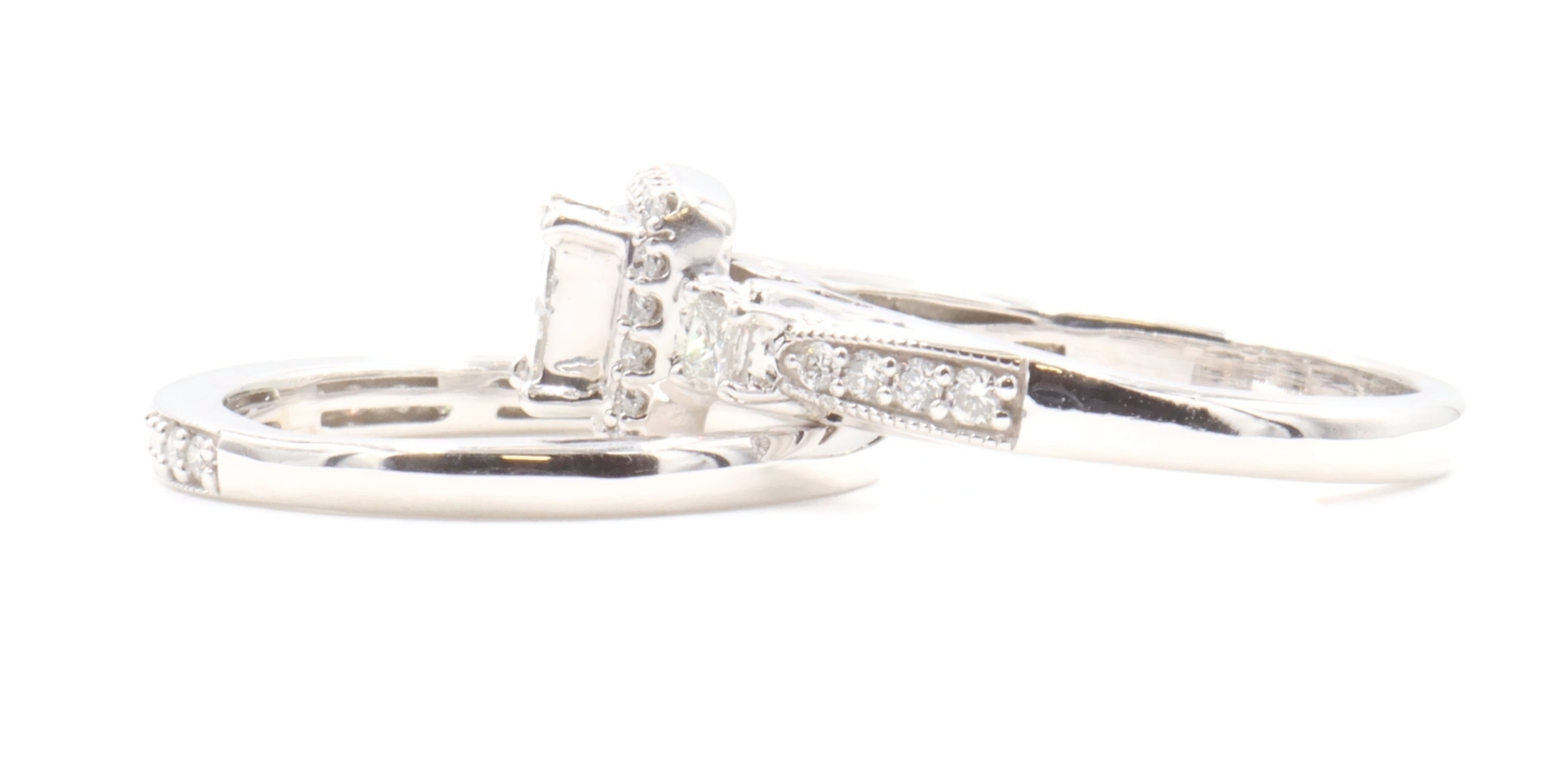 Women's 1.40 ctw Princess & Round Diamond 10KT White Gold Wedding Ring Set 7.0g | USA Pawn