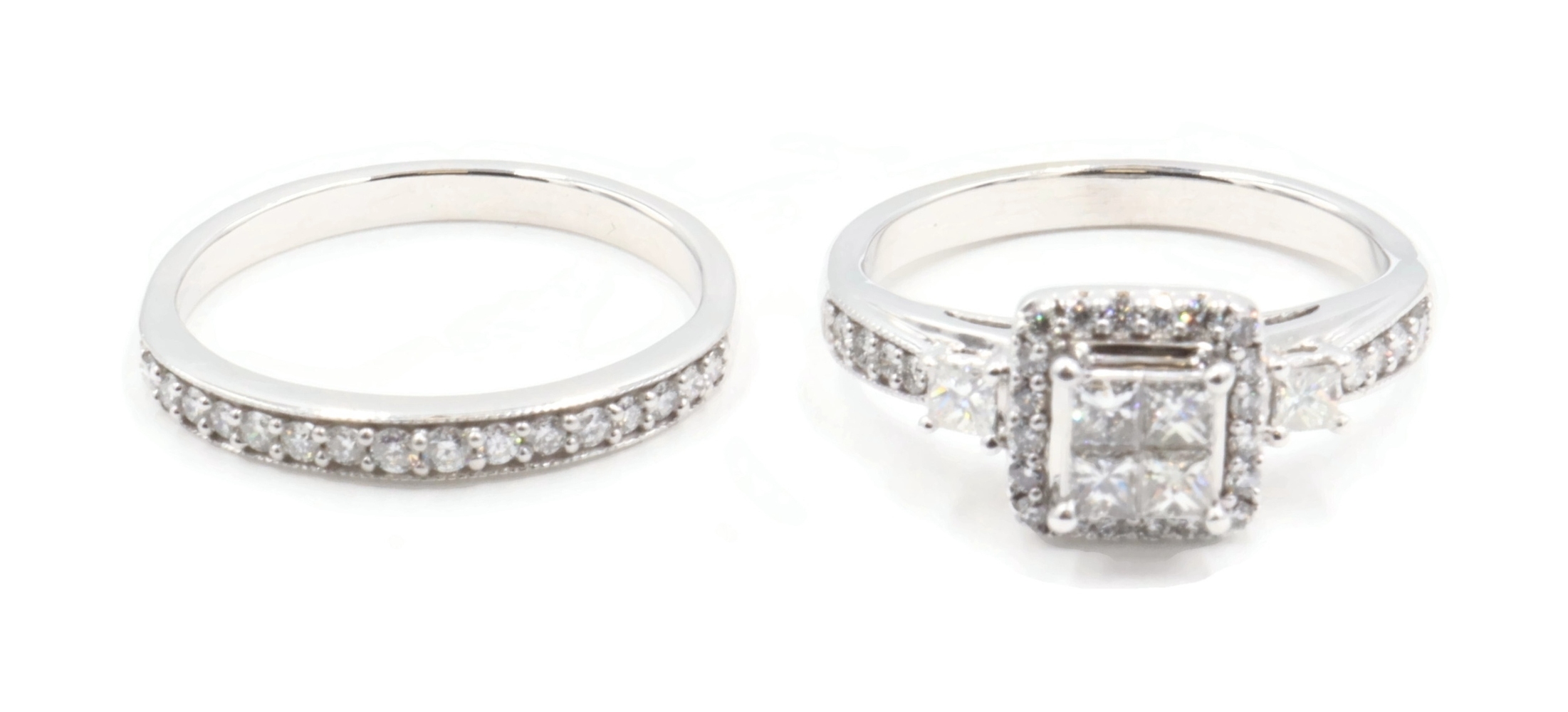Women's 1.40 ctw Princess & Round Diamond 10KT White Gold Wedding Ring Set 7.0g. These rings are a size 8.5.
