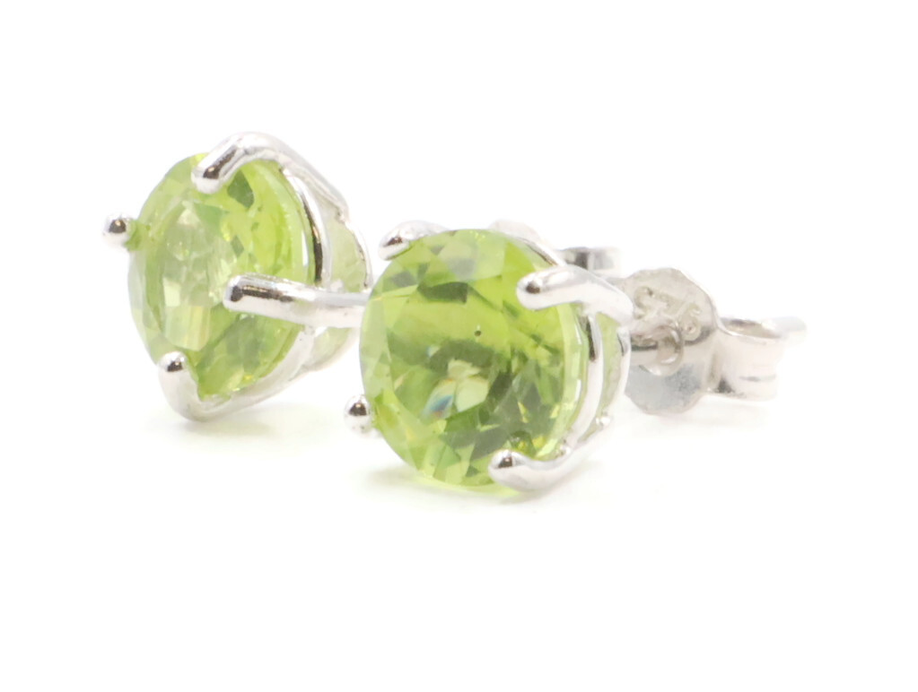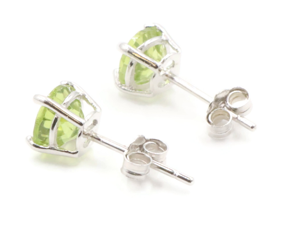 Women's 1.60 ctw Round Cut Lab Created Peridot Sterling Silver 925 Stud Earrings. These earring come with sterling silver earring backs.