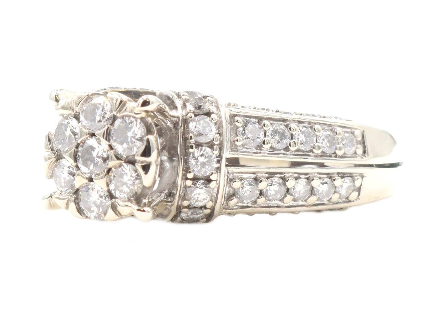 Women's 1.90 ctw Round Diamond Cluster 14KT White Gold Engagement Ring Size 6 | USA Pawn