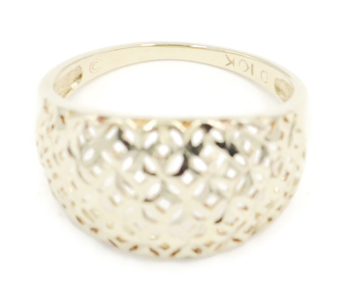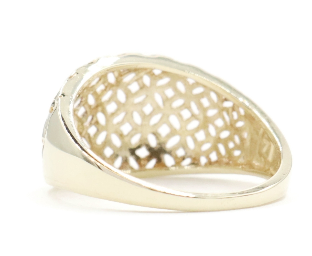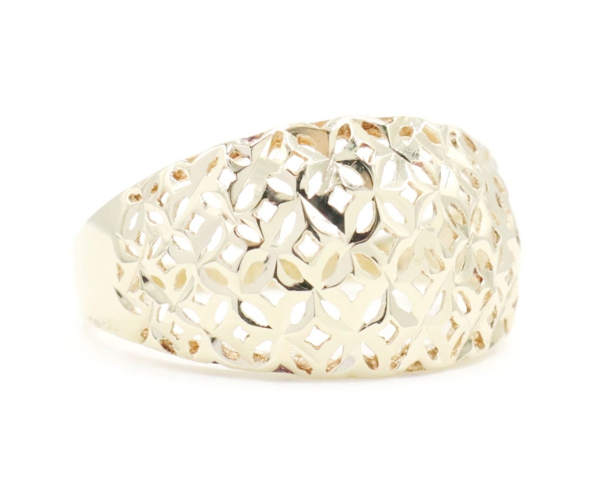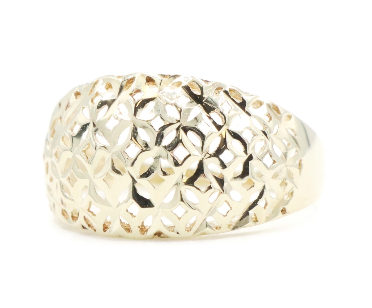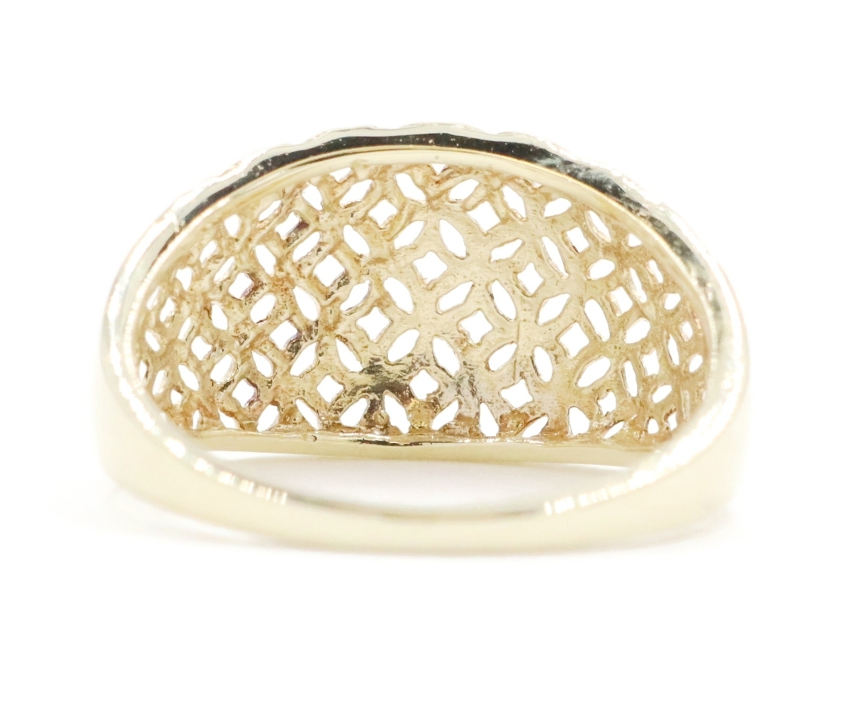 Women's 10KT Yellow Gold 11.6mm Wide Openwork Lattice Dome Ring Size 7 - 2.18g | USA Pawn