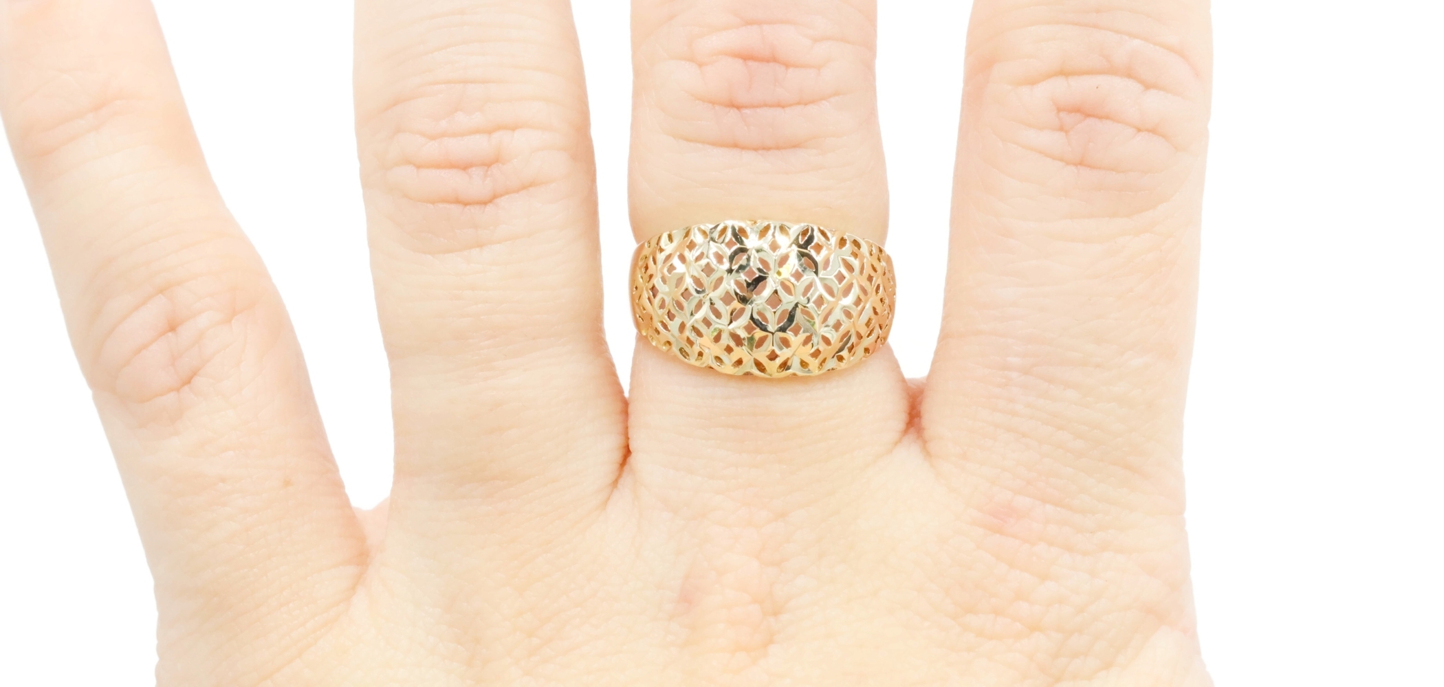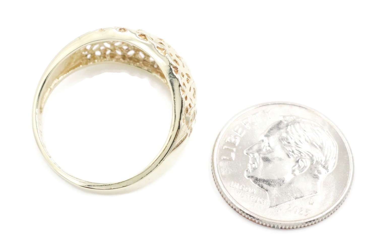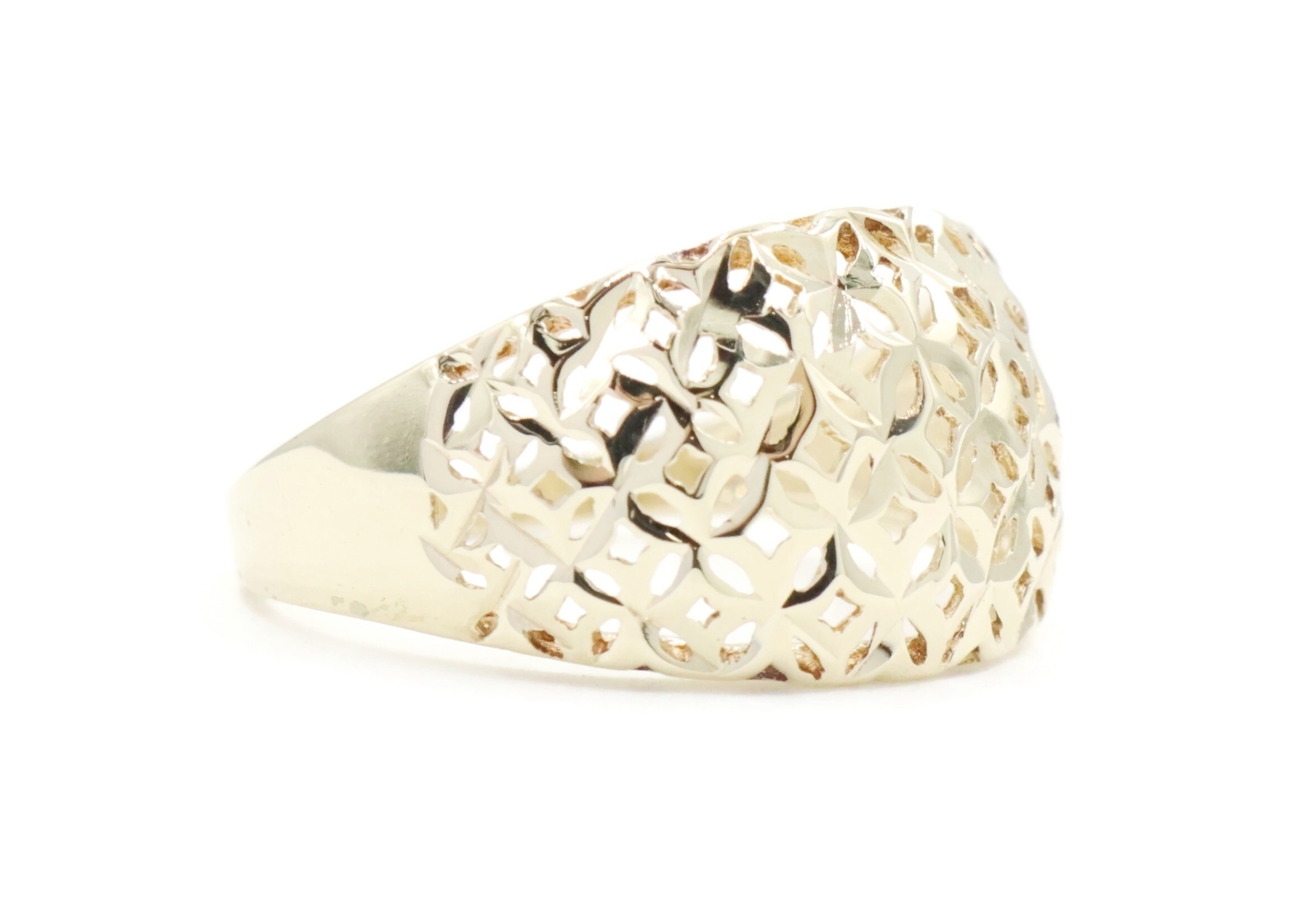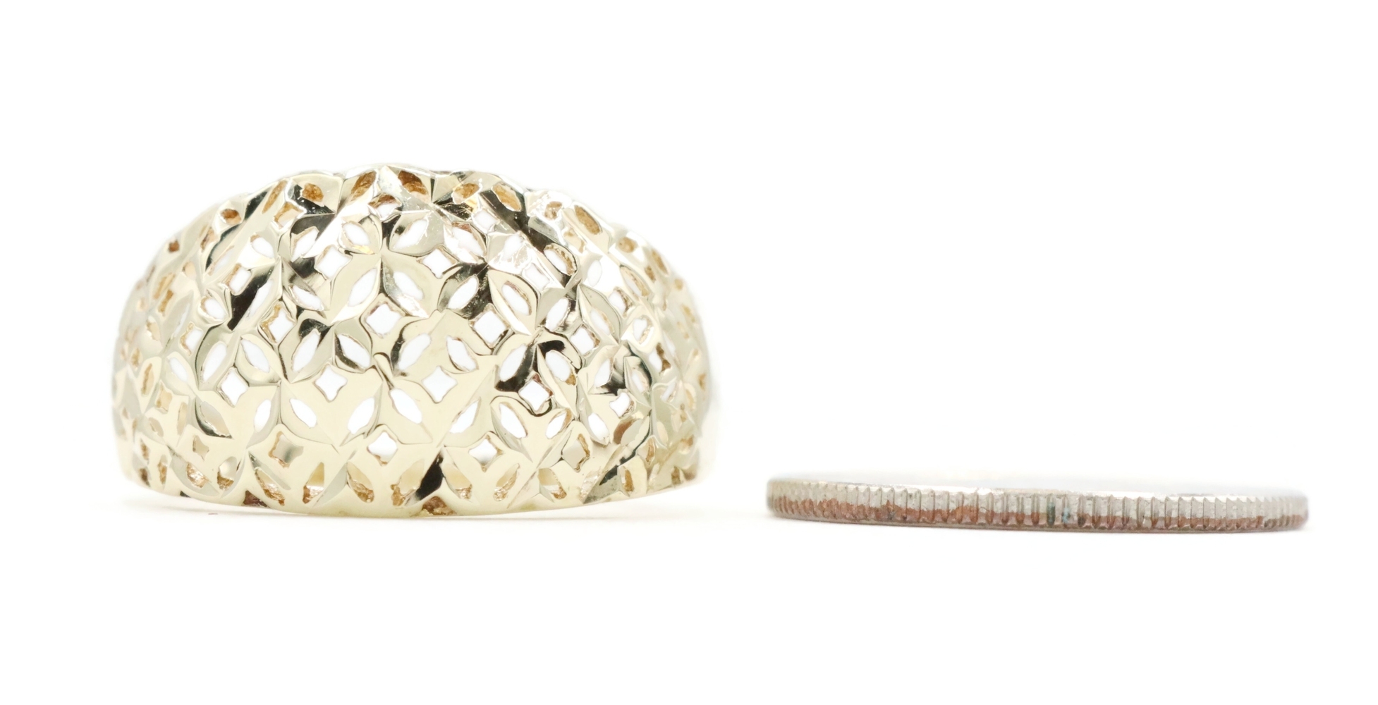 Women's 10KT Yellow Gold 11.6mm Wide Openwork Lattice Dome Ring Size 7 - 2.18g | USA Pawn