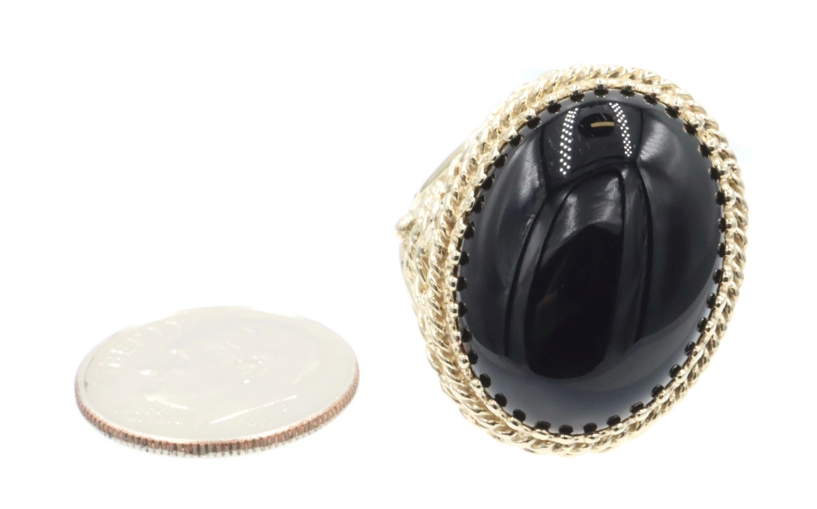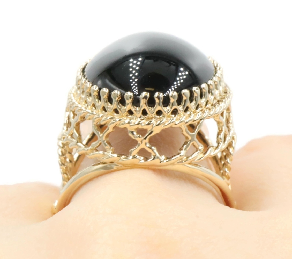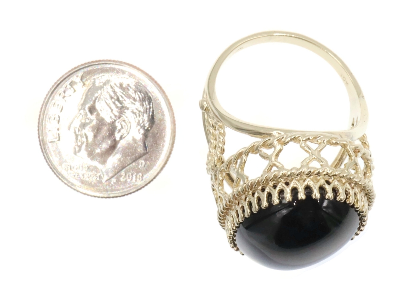 Women's 12.65 Ct Oval Cabochon Black Onyx 10KT Gold Filigree Cocktail Ring MGRB | USA Pawn