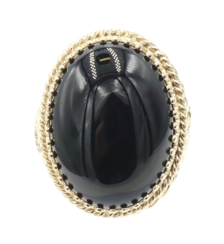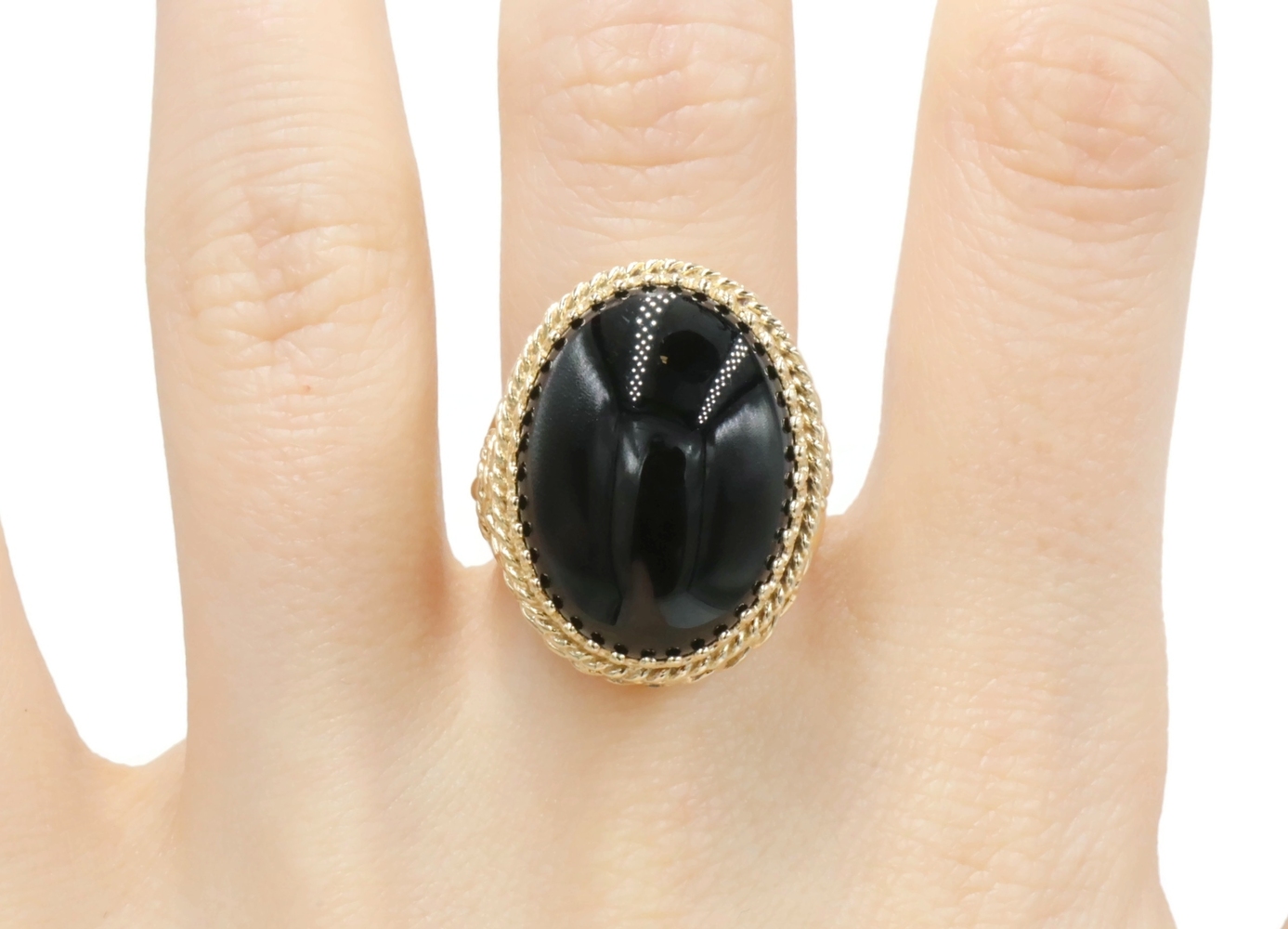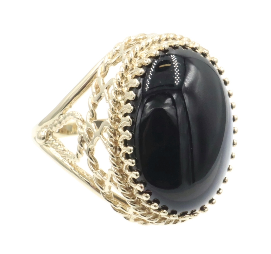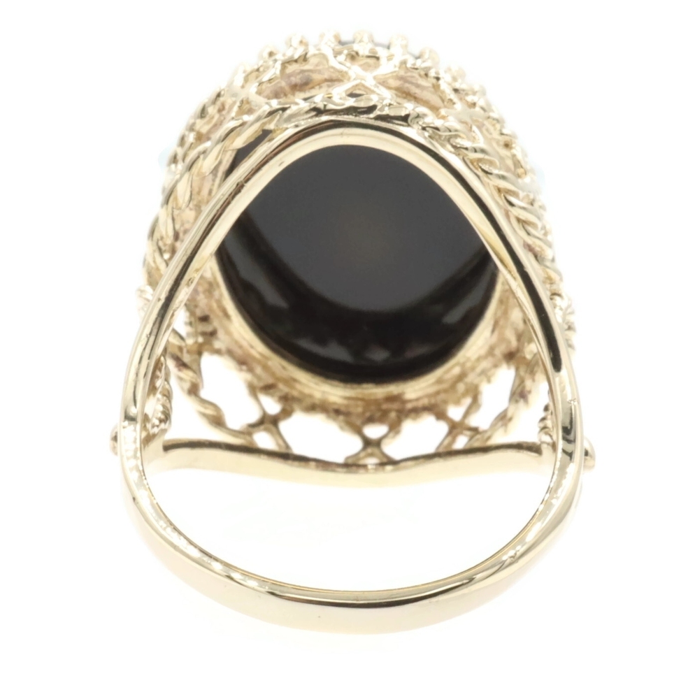 Women's 12.65 Ct Oval Cabochon Black Onyx 10KT Gold Filigree Cocktail Ring MGRB | USA Pawn