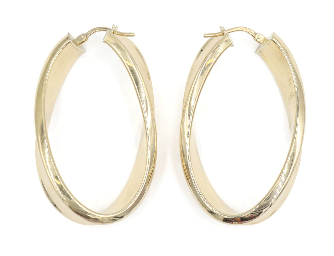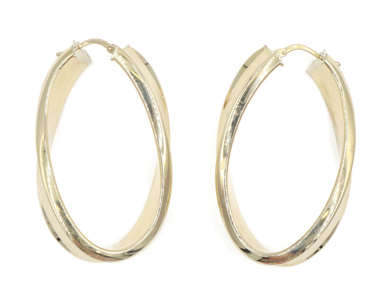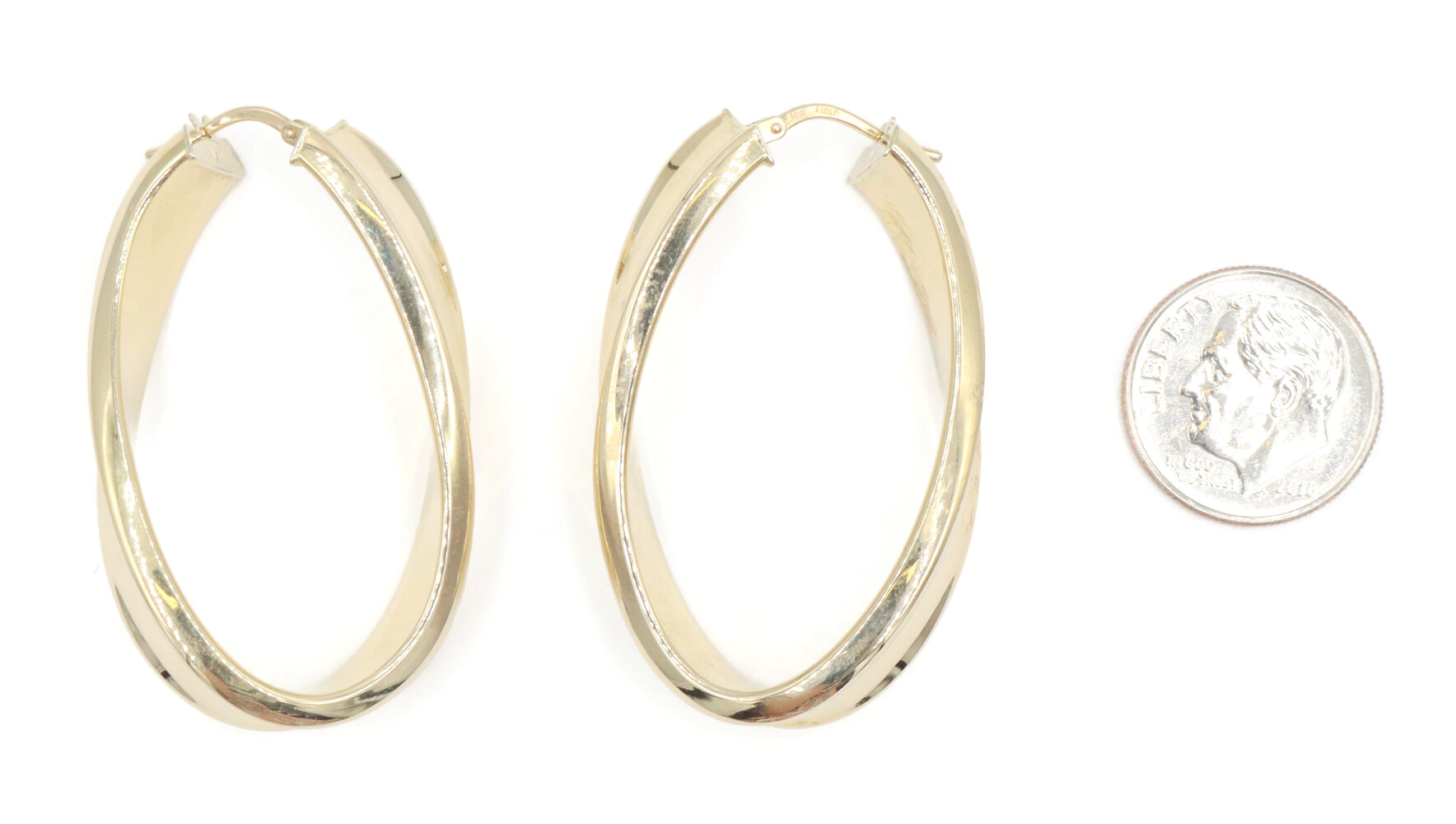 Women's 14KT Yellow Gold 1.6" Twisted Large Oval Estate Hoop Earrings - 5.81g | USA Pawn