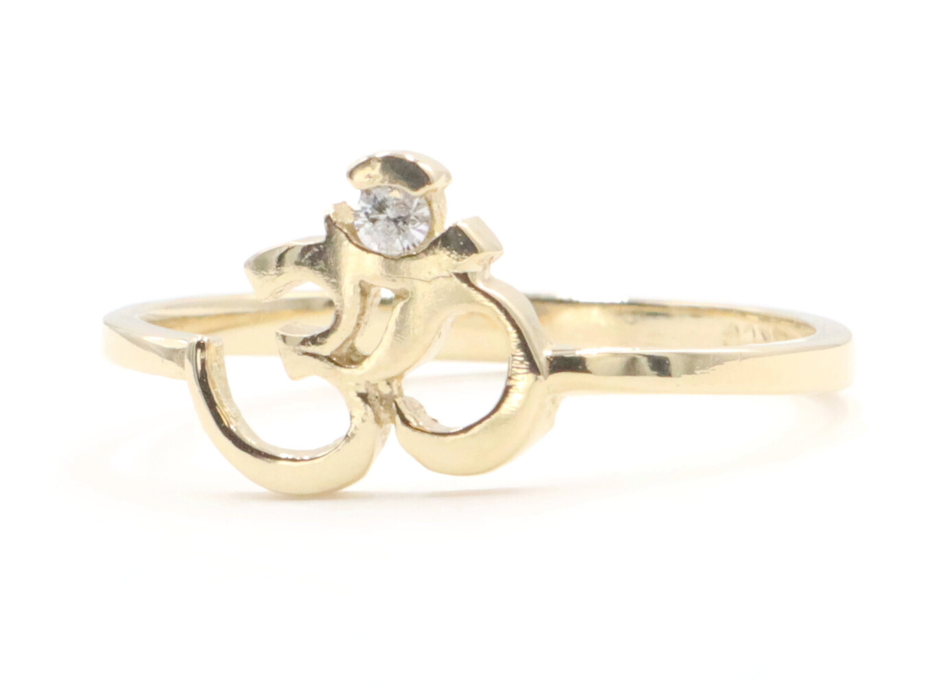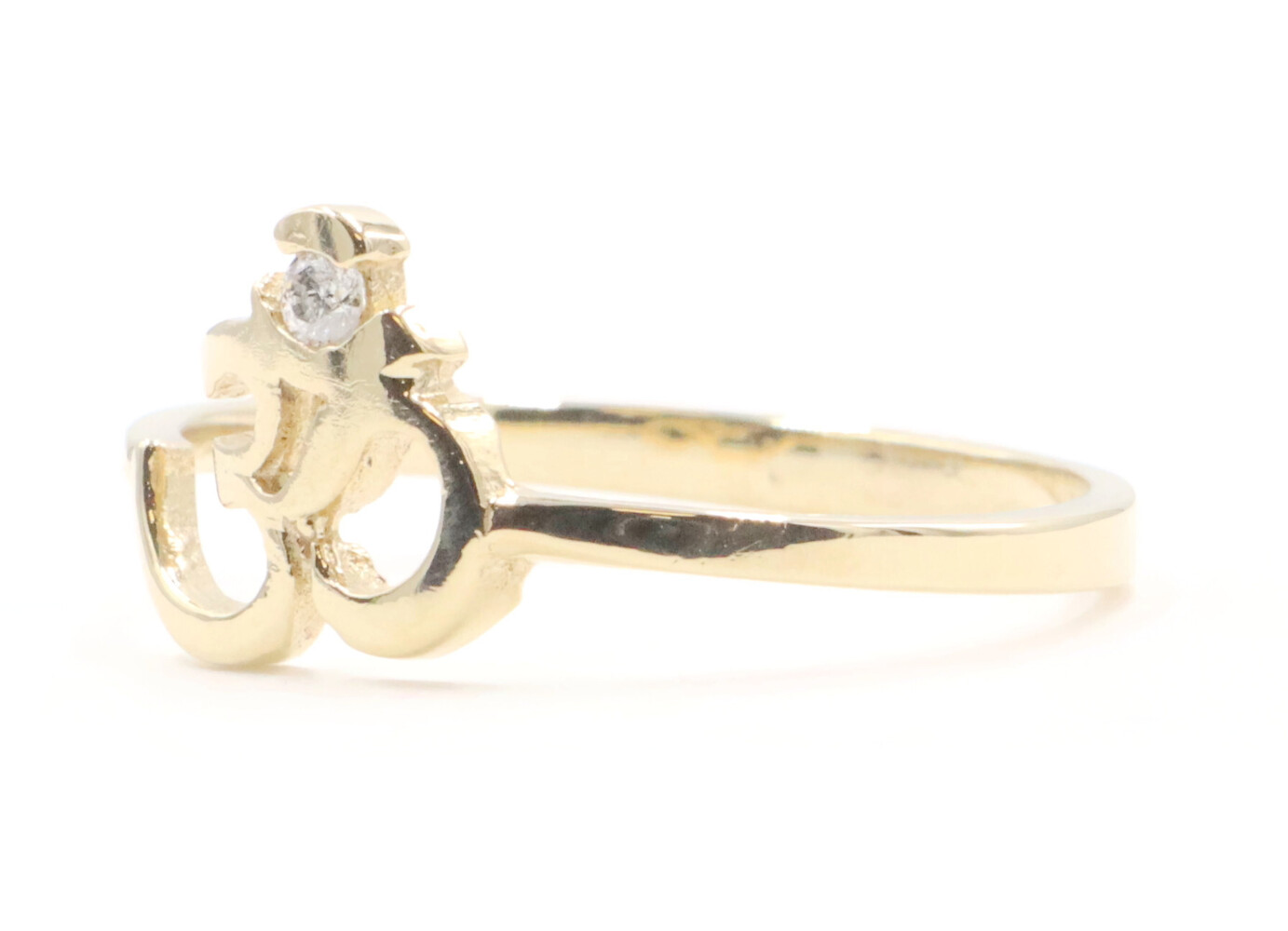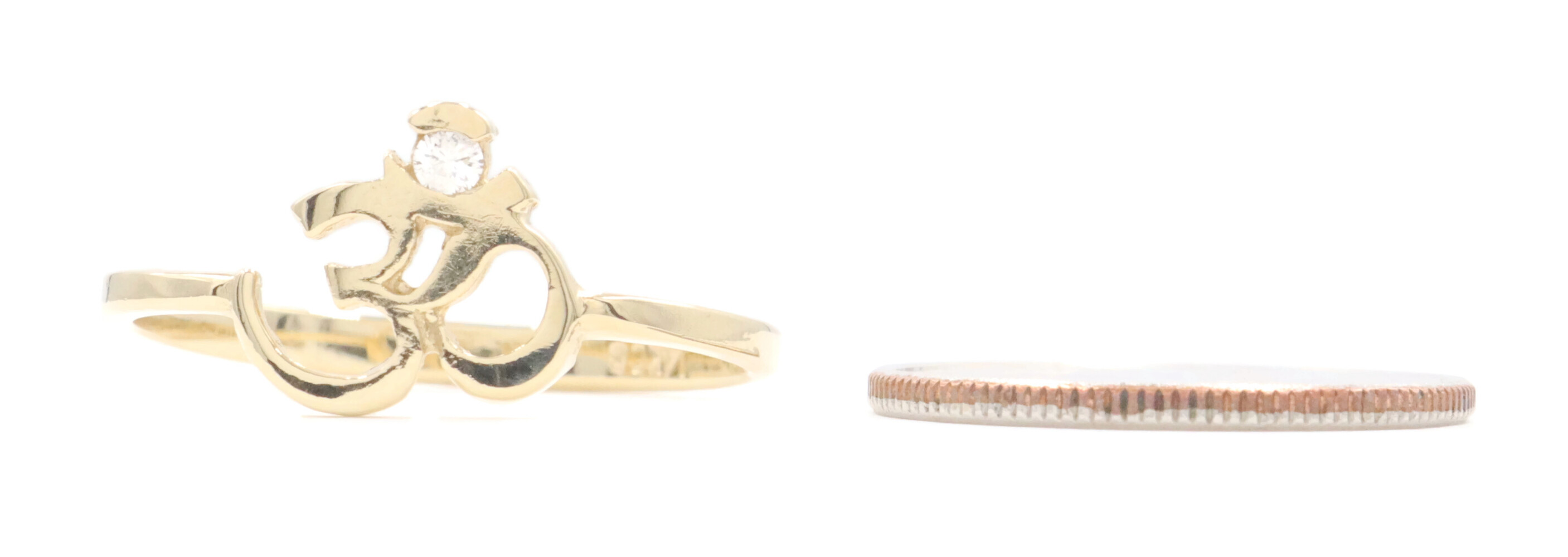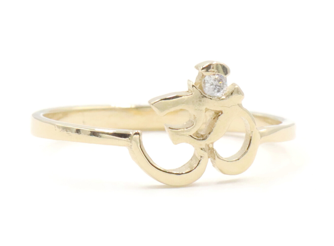Women's 14KT Yellow Gold Dainty Gold Om Yoga .03 ctw Round Diamond Ring- 1.63g | USA Pawn