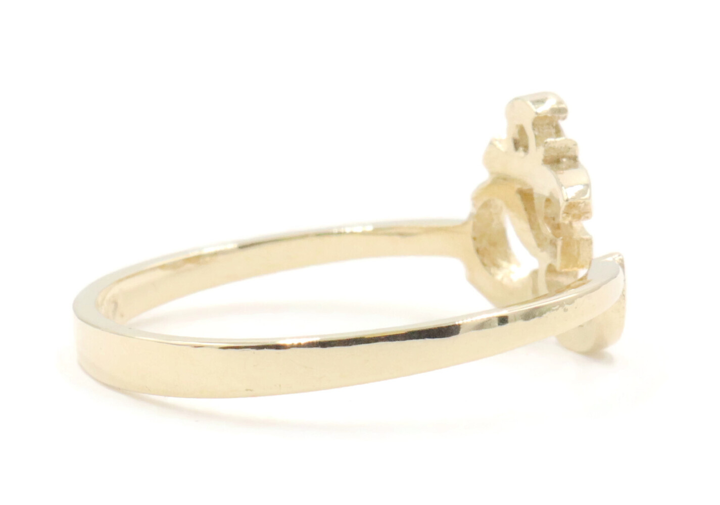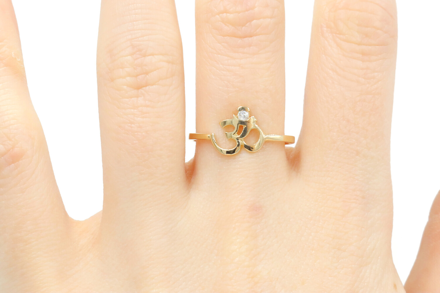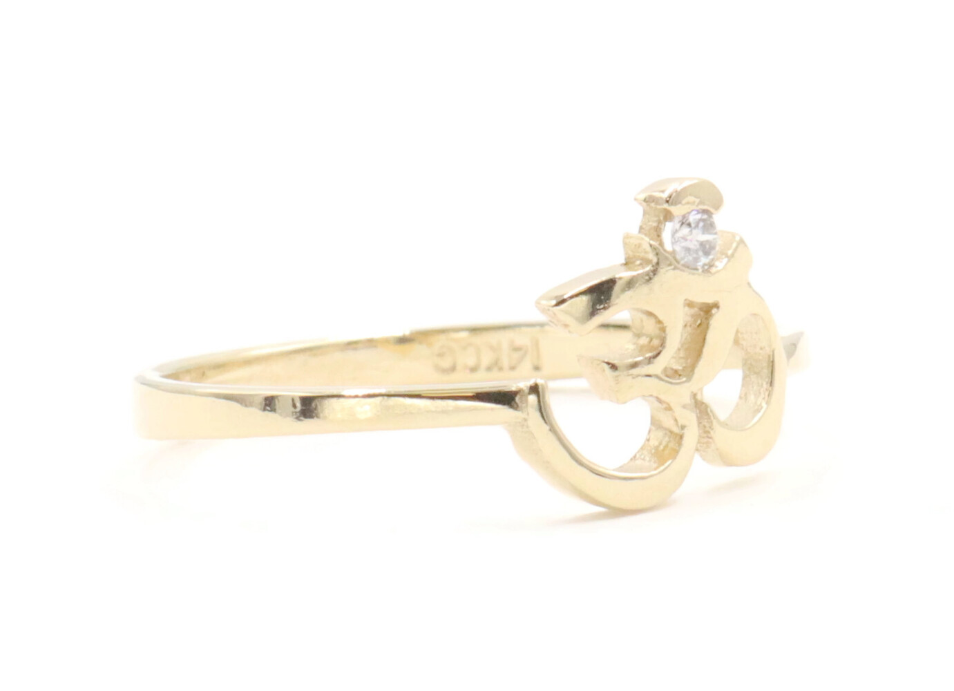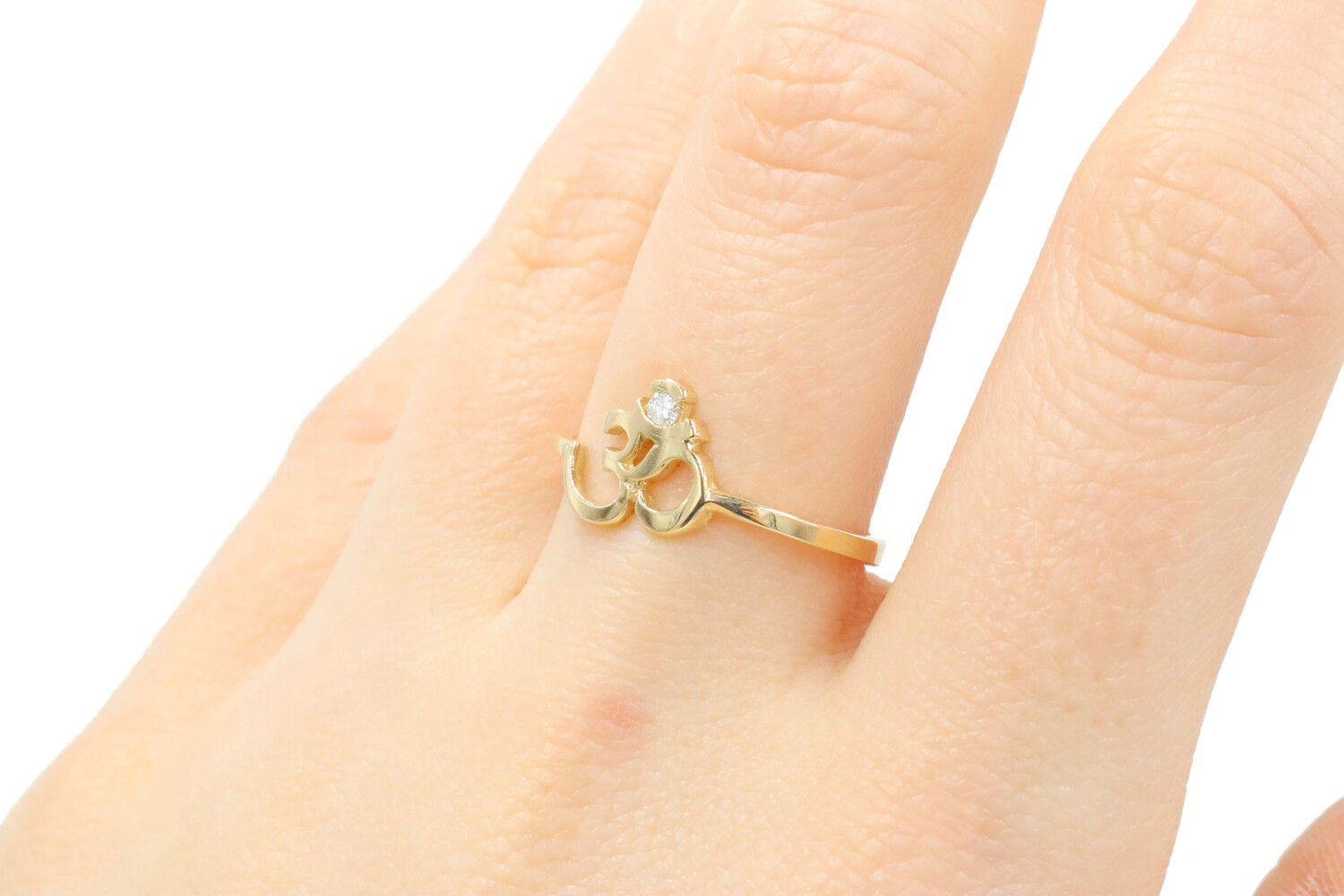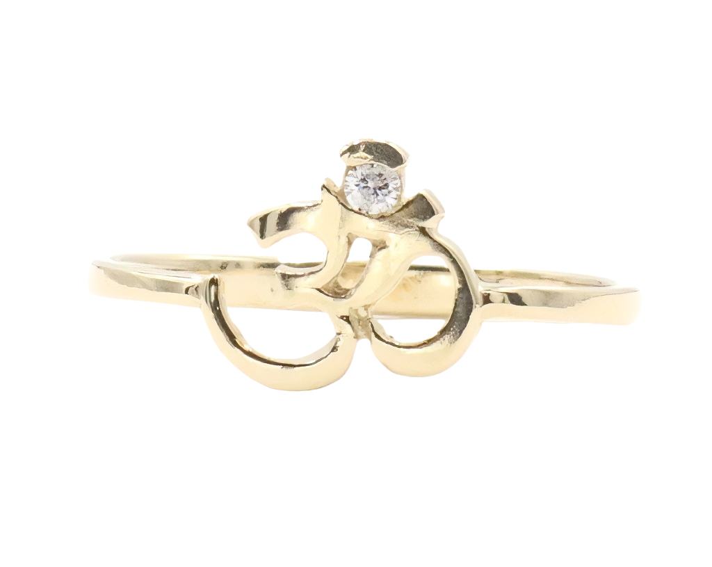 Women's 14KT Yellow Gold Dainty Gold Om Yoga .03 ctw Round Diamond Ring- 1.63g | USA Pawn