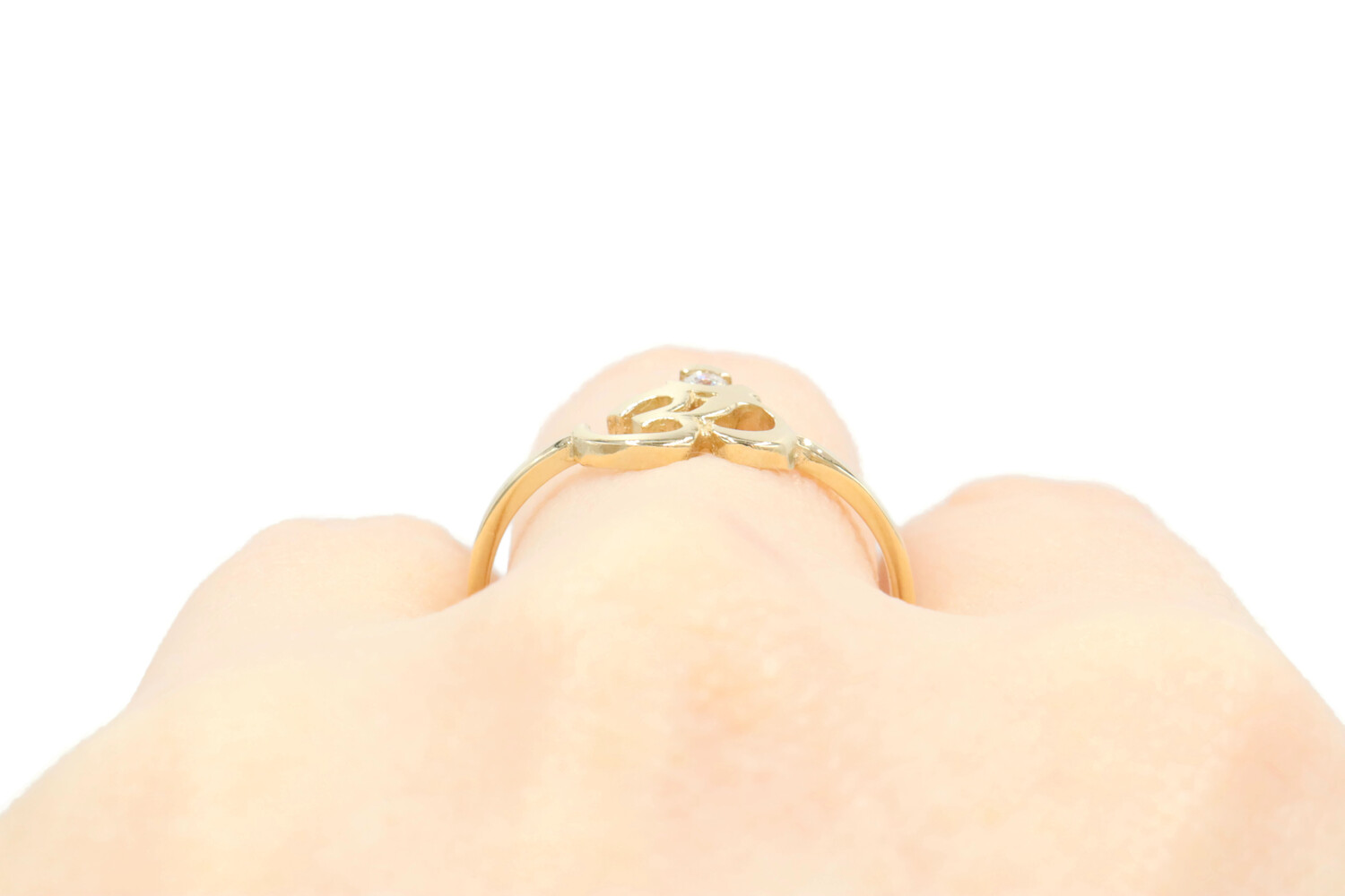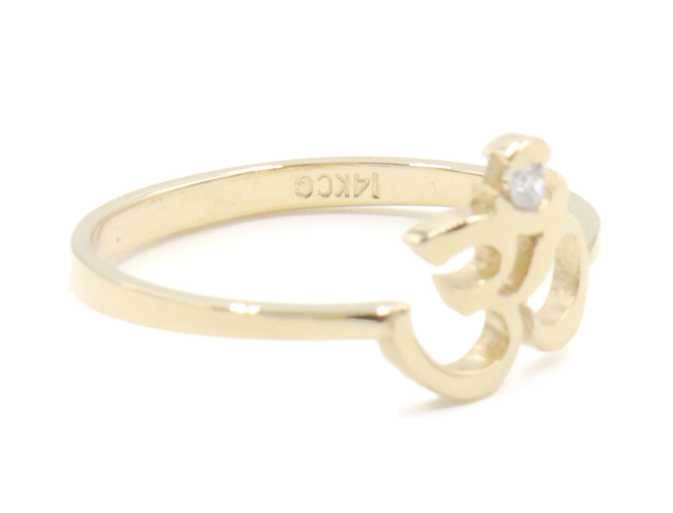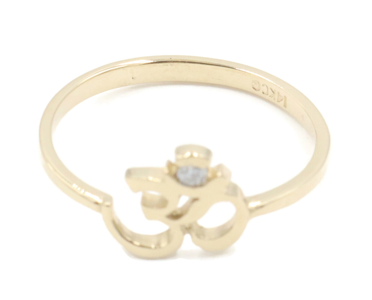 Women's 14KT Yellow Gold Dainty Gold Om Yoga .03 ctw Round Diamond Ring- 1.63g. This ring is a size 7.