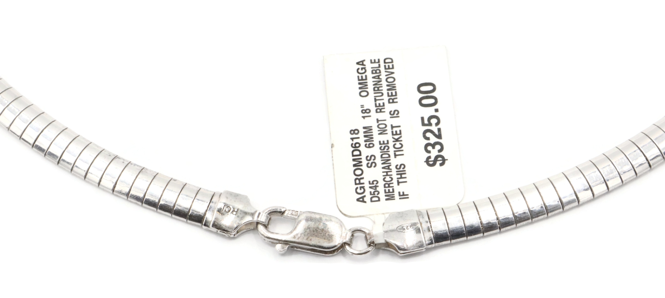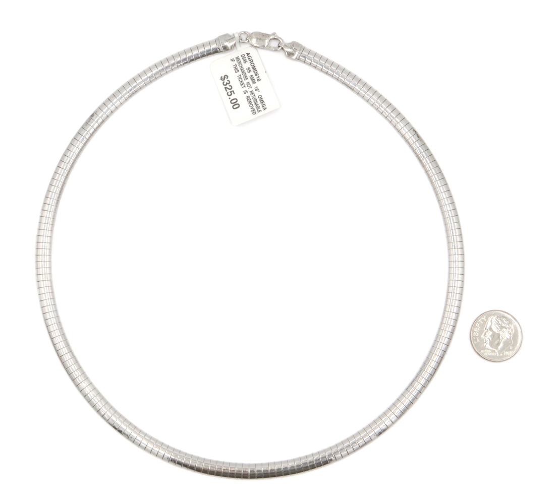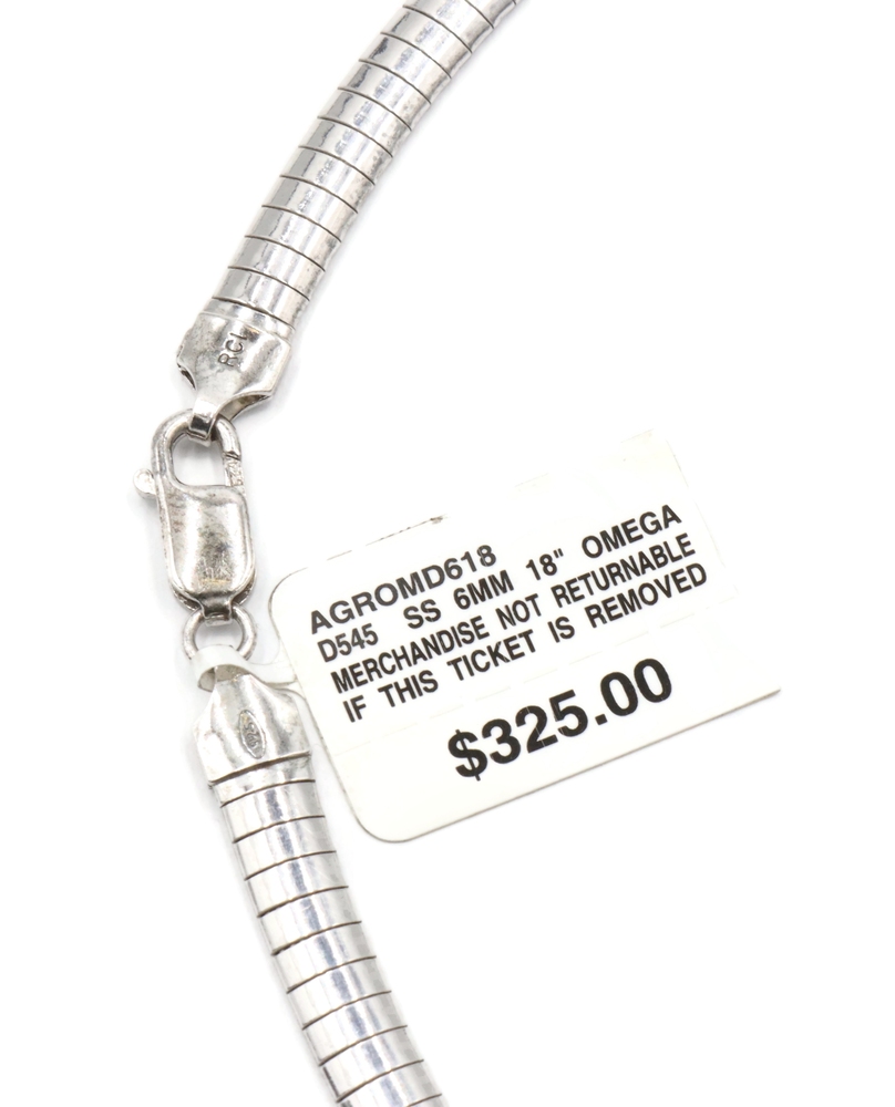 Women's Classic Omega Chain Necklace 6mm Wide 925 Sterling Silver 18" - 25.6g | USA Pawn