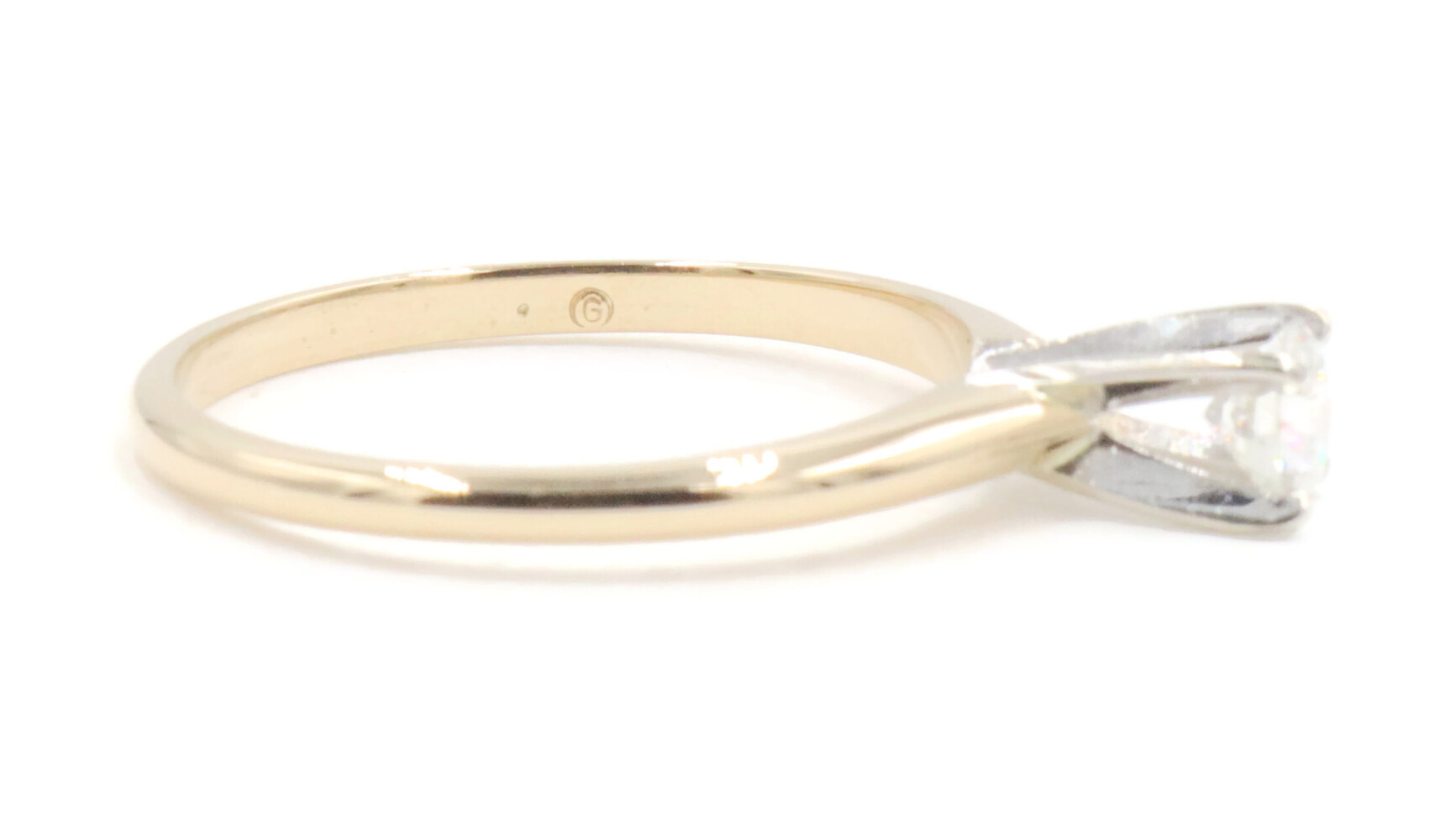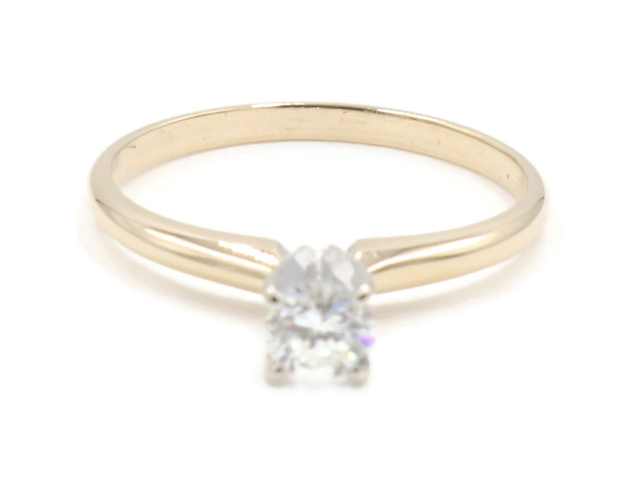 Women's Classic Solitaire 0.25 ctw Round Cut Diamond 14KT Gold Engagement Ring. This ring is a size 6.5.