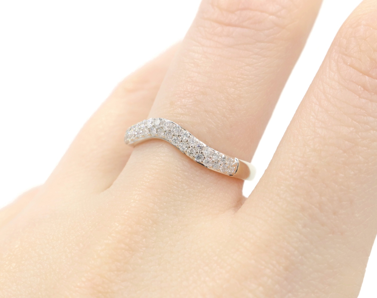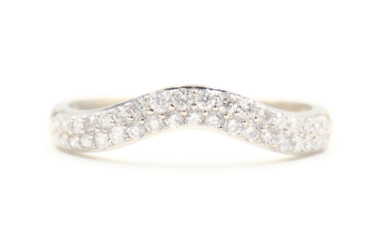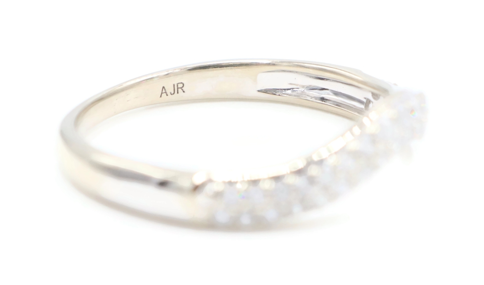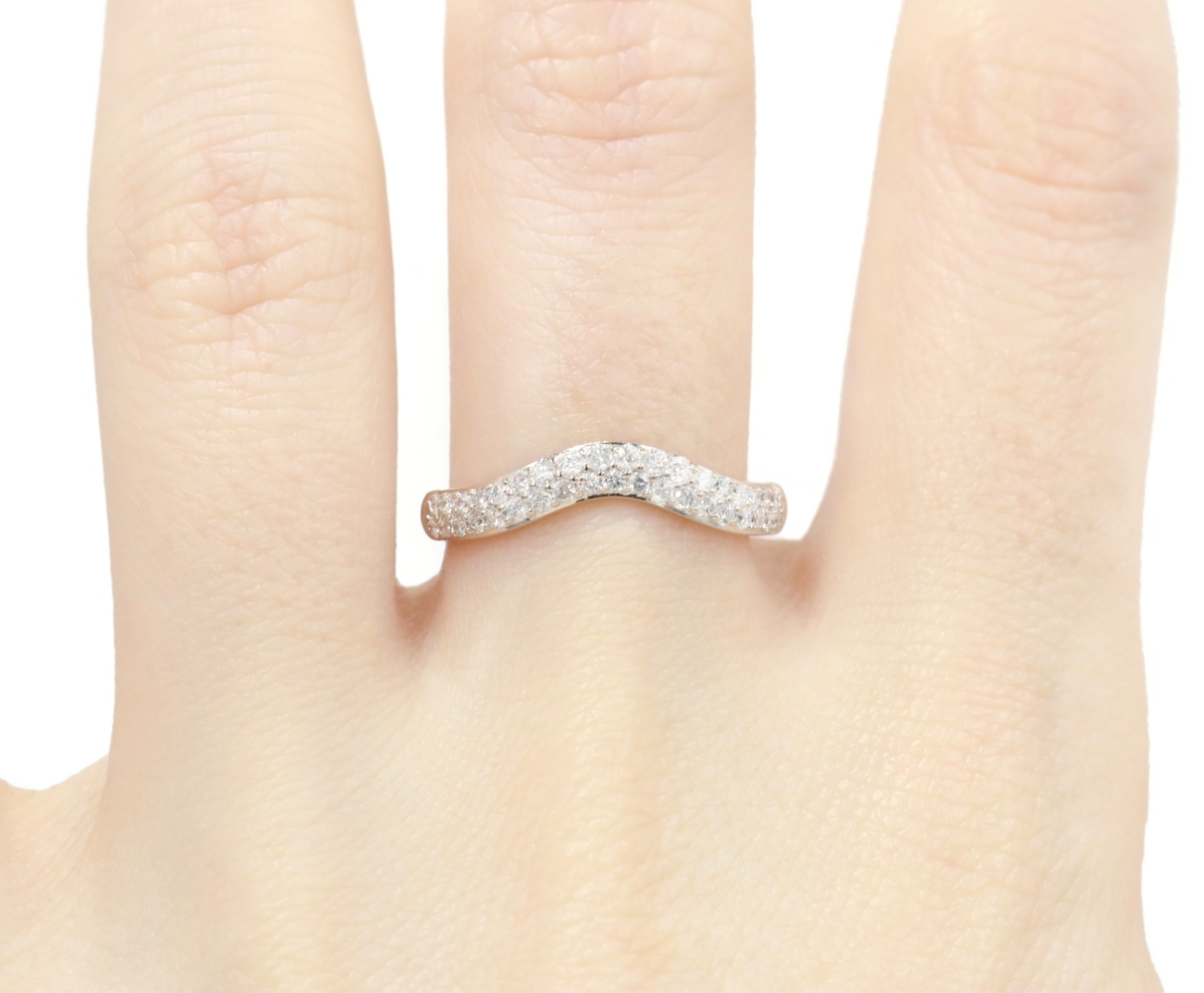 Women's Curved 0.55 Ctw Round Diamond 14KT White Gold Pave Wedding Band Ring AJR. This ring is a size 7.
