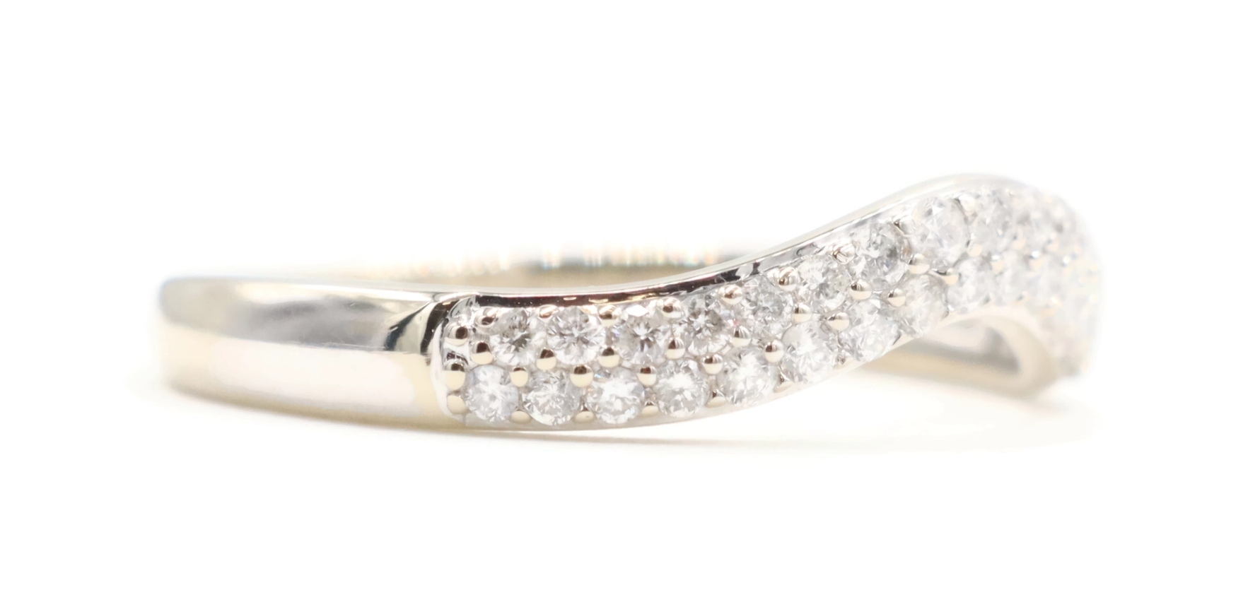 Women's Curved 0.55 Ctw Round Diamond 14KT White Gold Pave Wedding Band Ring AJR | USA Pawn