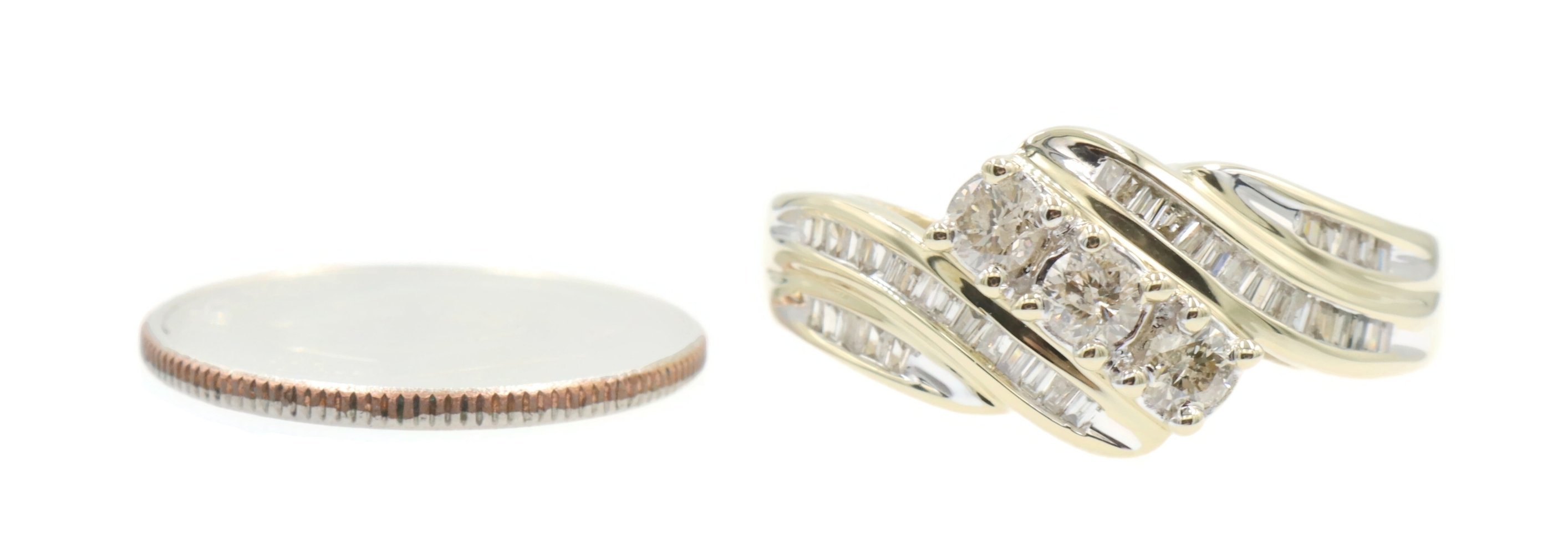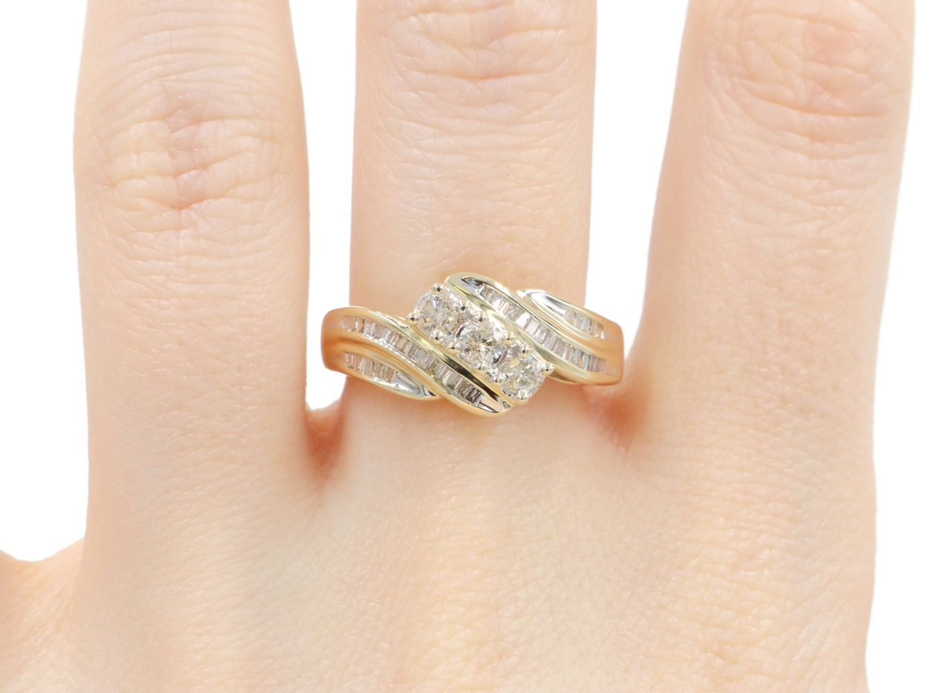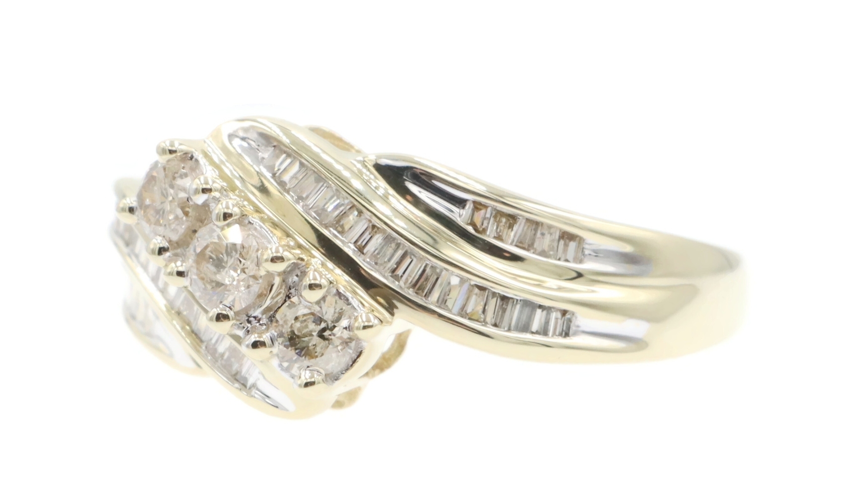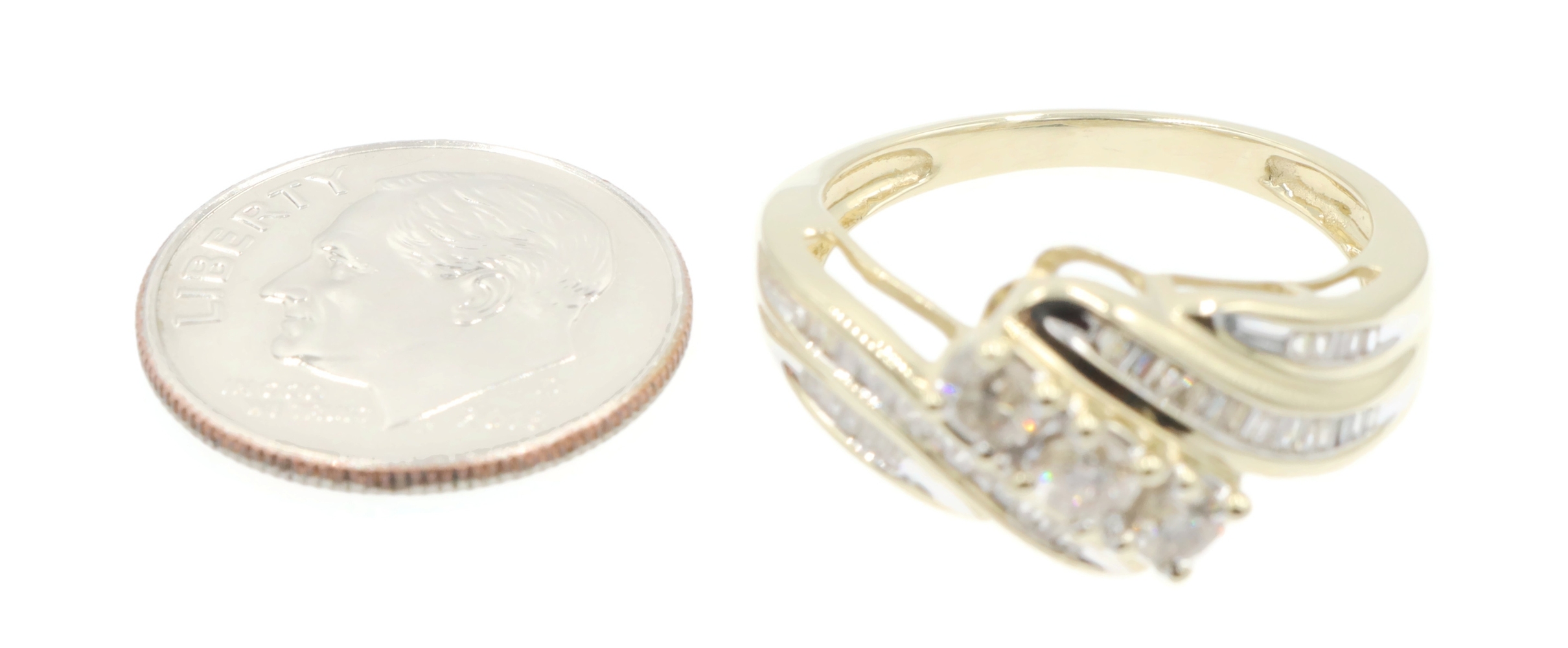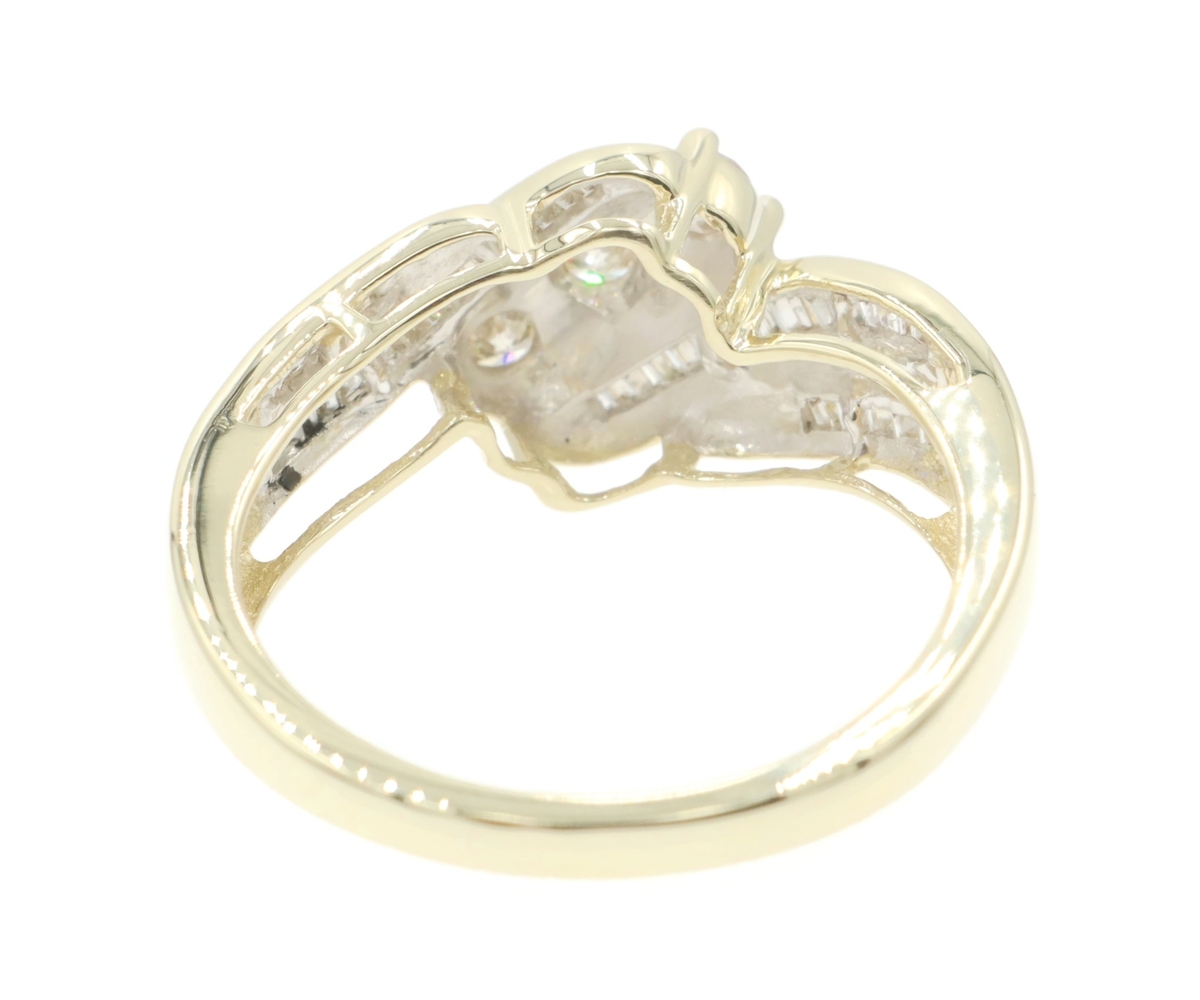Women's Diagonal 1/2 TW Round & Baguette Diamond 10KT Gold Bypass Ring 3.07g | USA Pawn