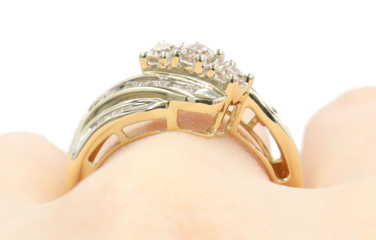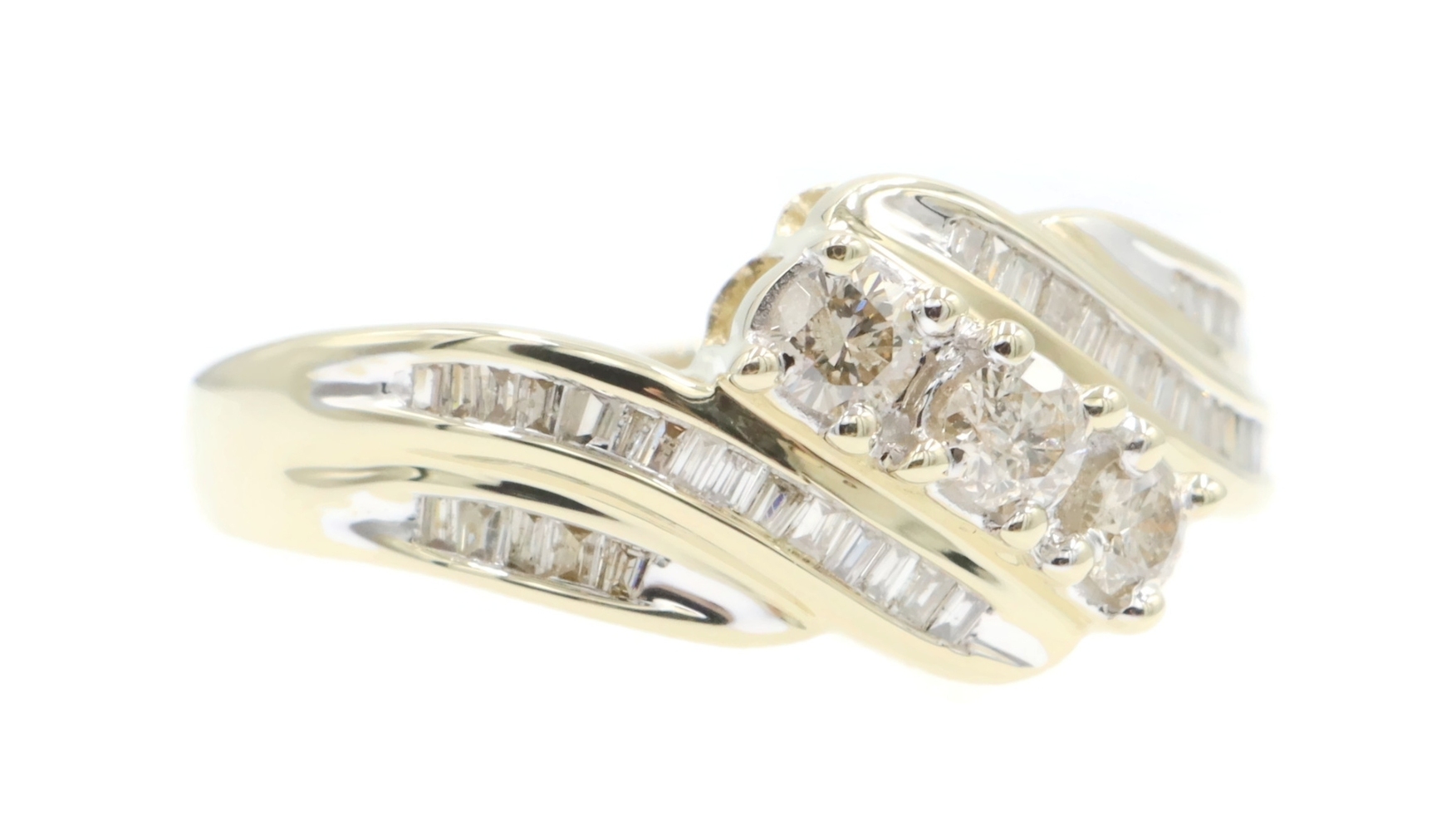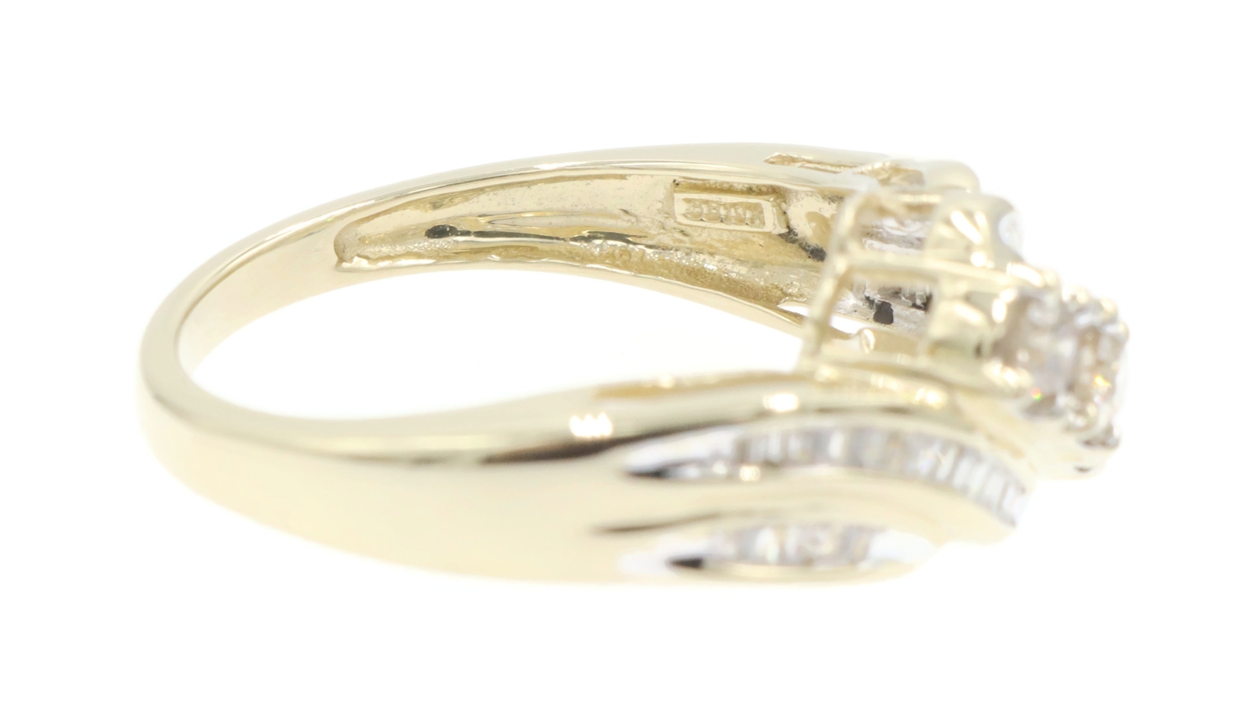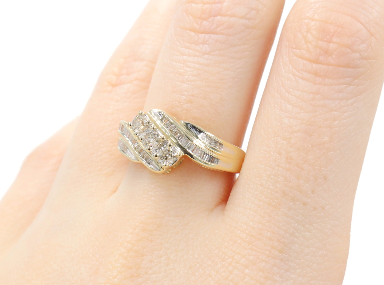Women's Diagonal 1/2 TW Round & Baguette Diamond 10KT Gold Bypass Ring 3.07g | USA Pawn