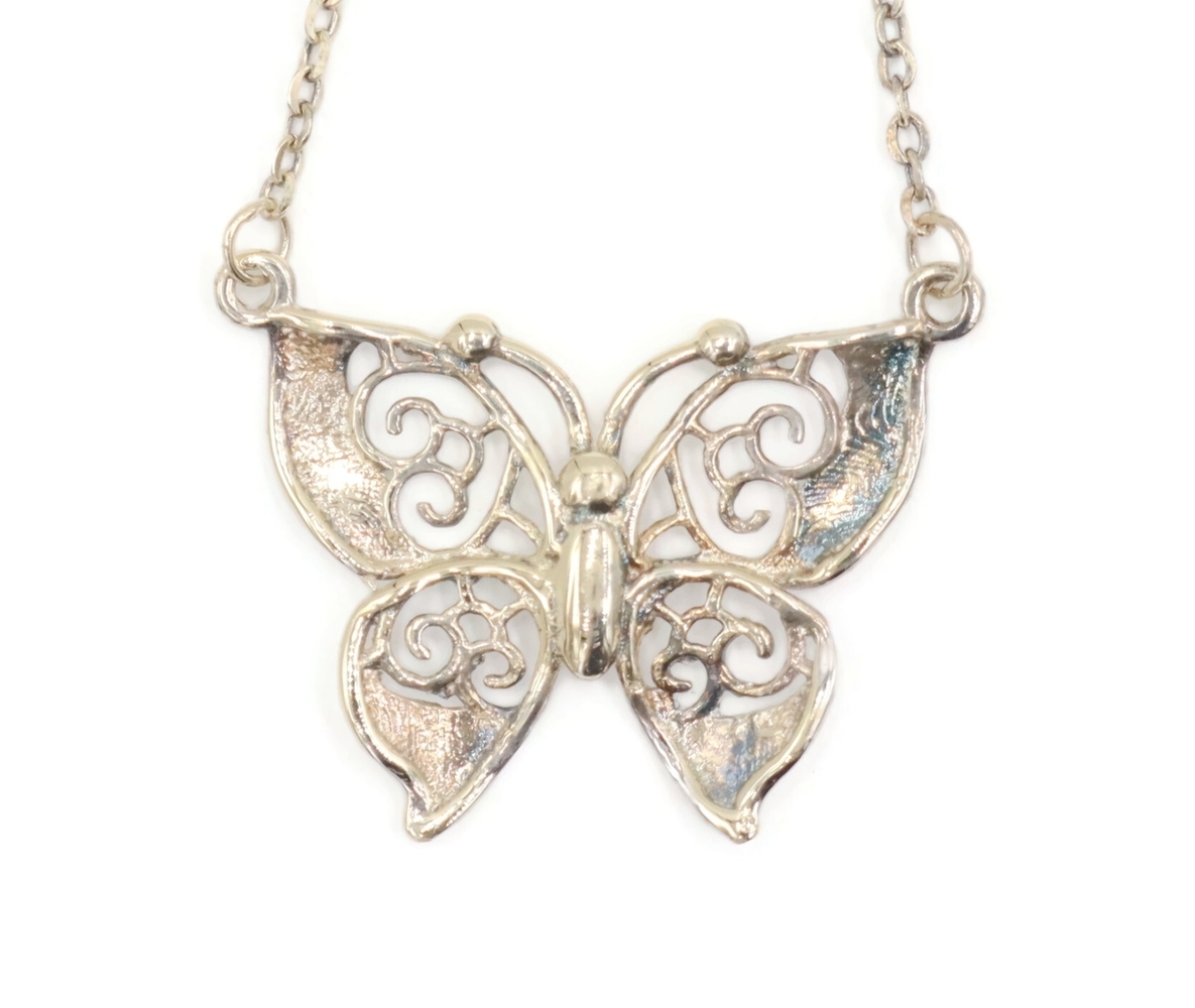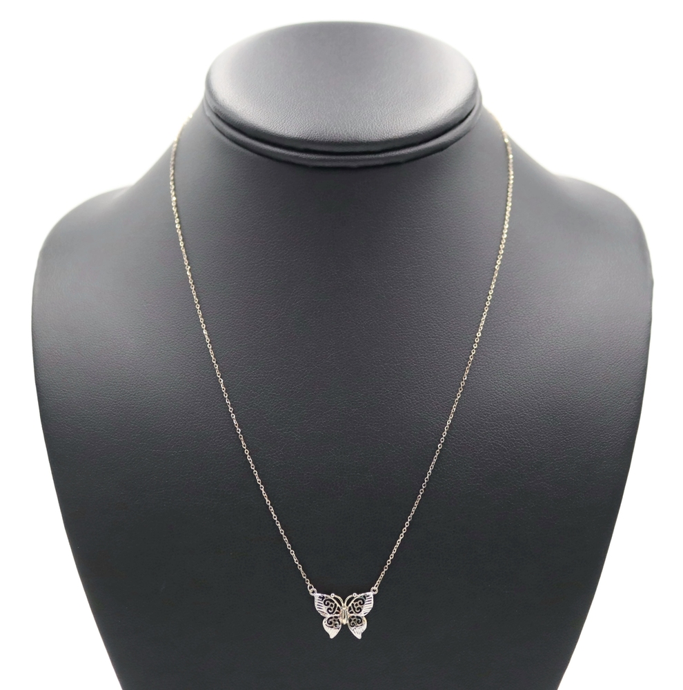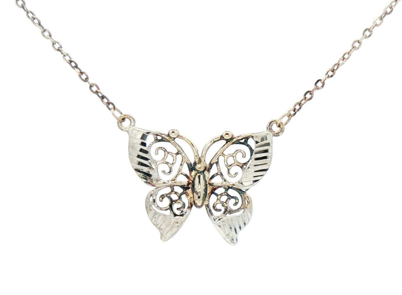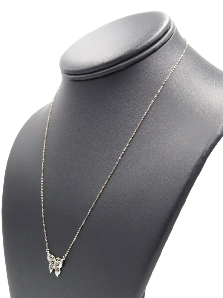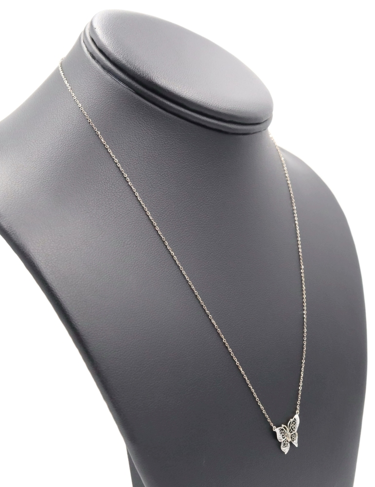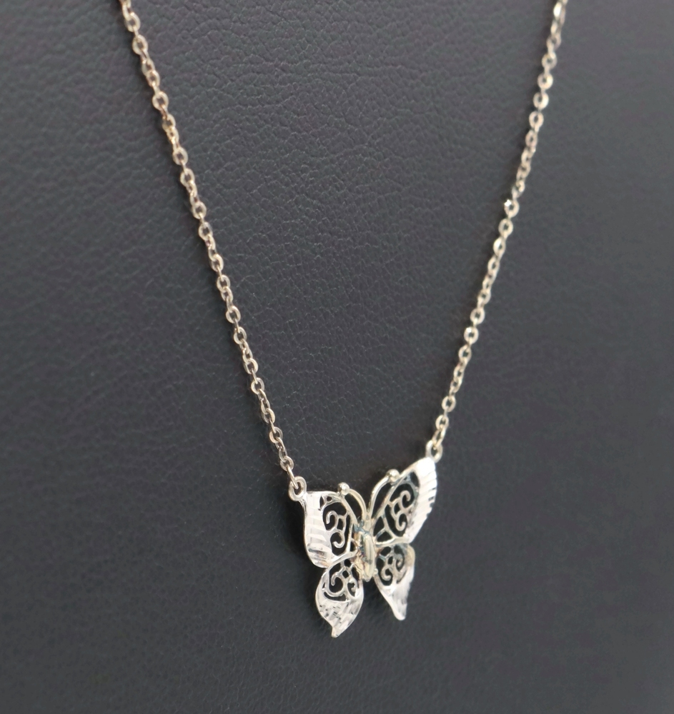 Women's Diamond-Cut 14KT White Gold Butterfly Cable Chain Necklace 18" AE 1.34g. This necklace has an approximate wearable length of 18 inches and the butterfly pendant is approximately 17.7mm in width.