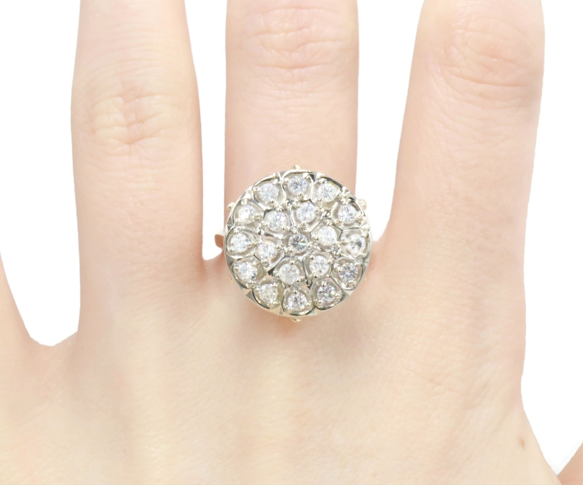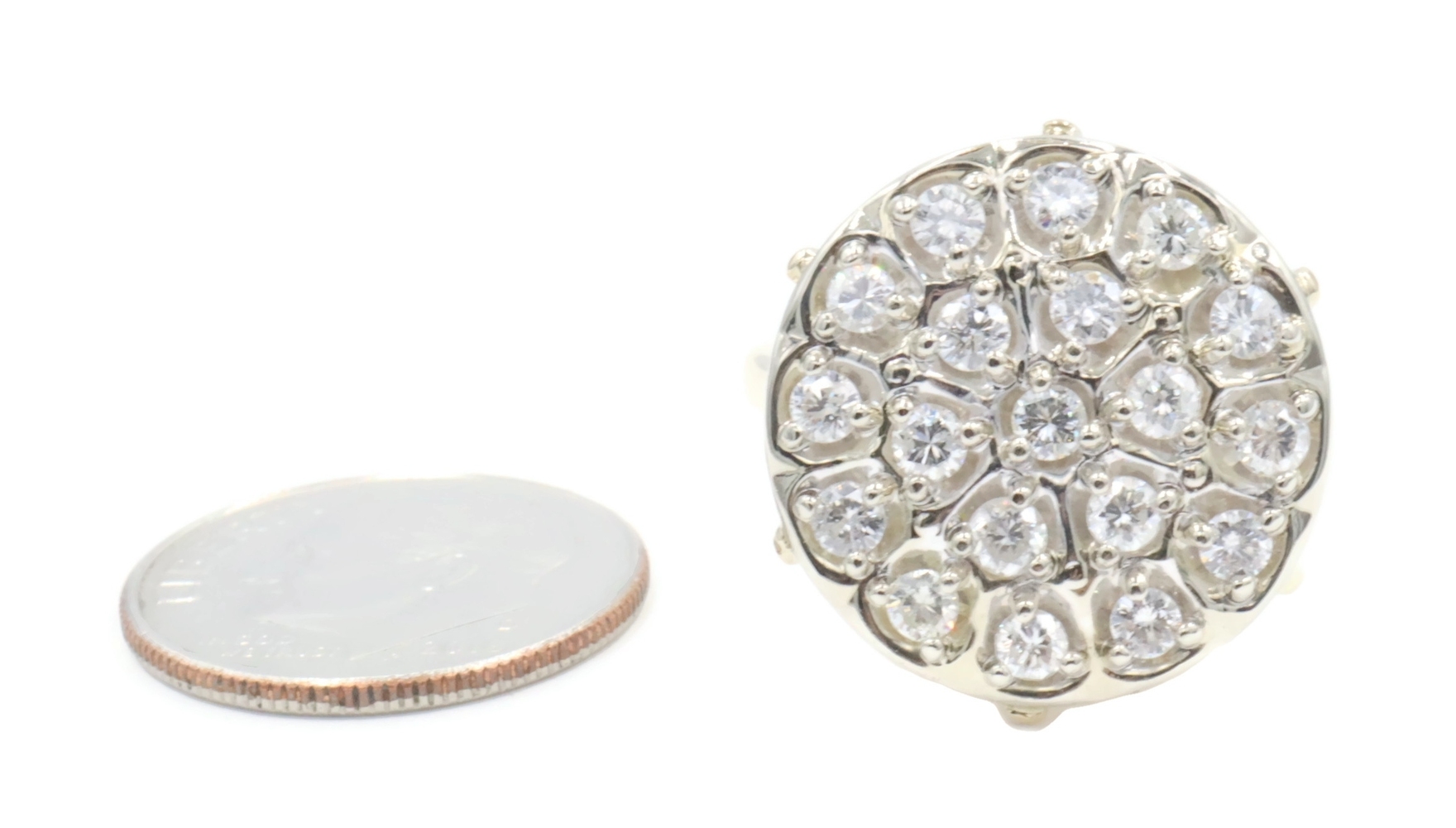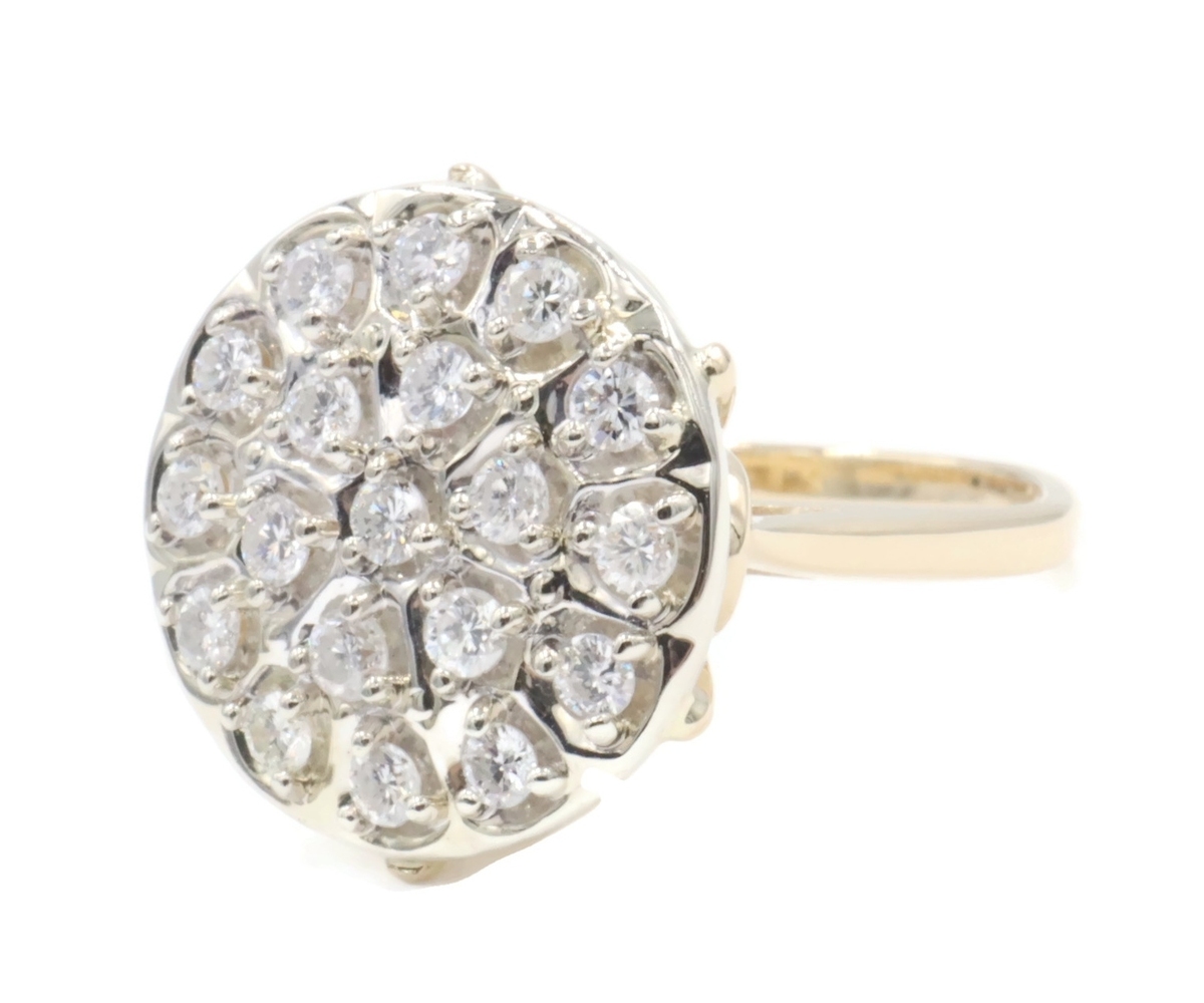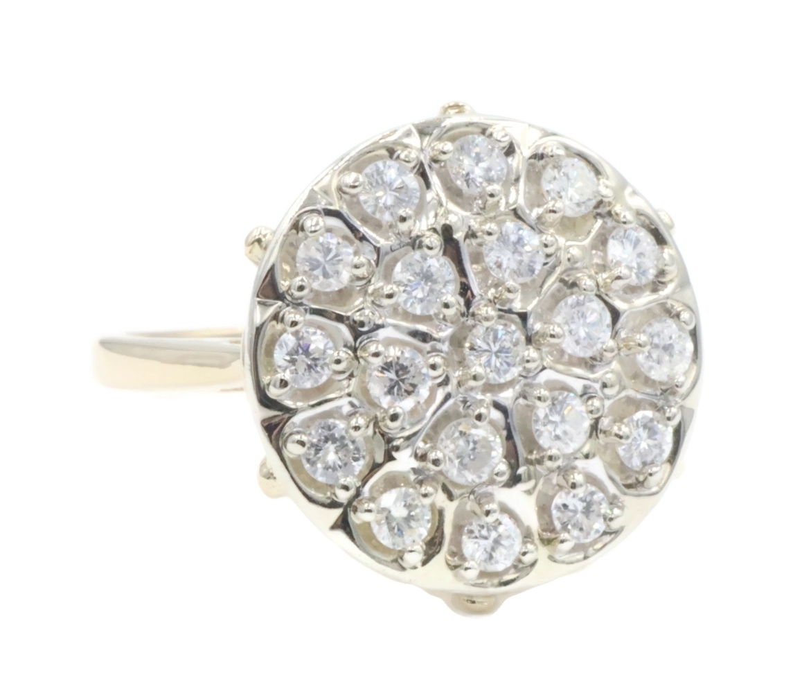 Women's Estate 1.10 Ctw Round Diamond Cluster 14KT Gold Cocktail Ring MGRB 7.37g. This ring is a size 7 1/4.