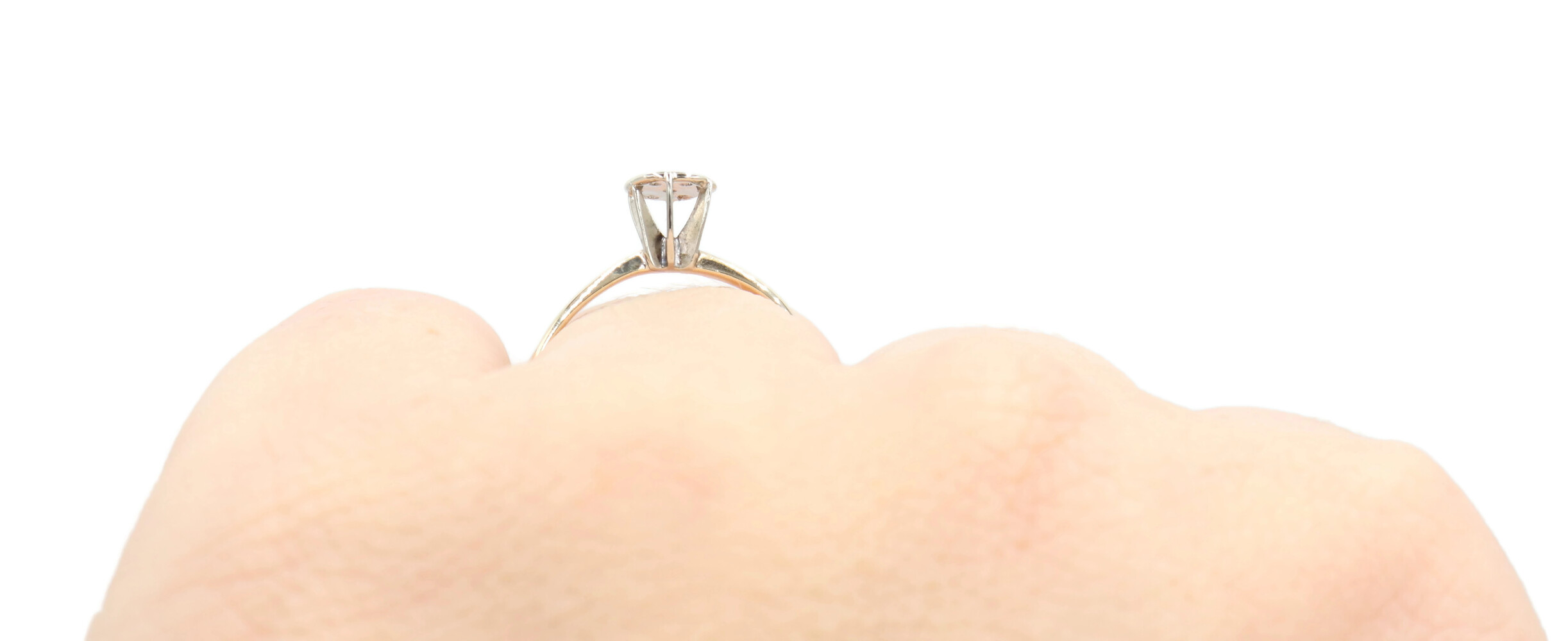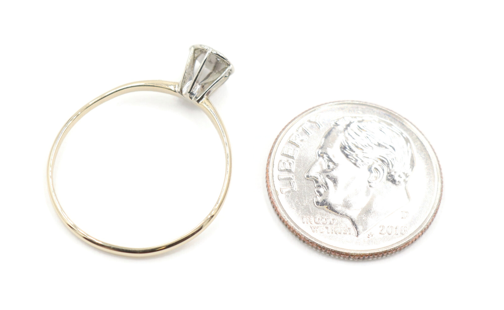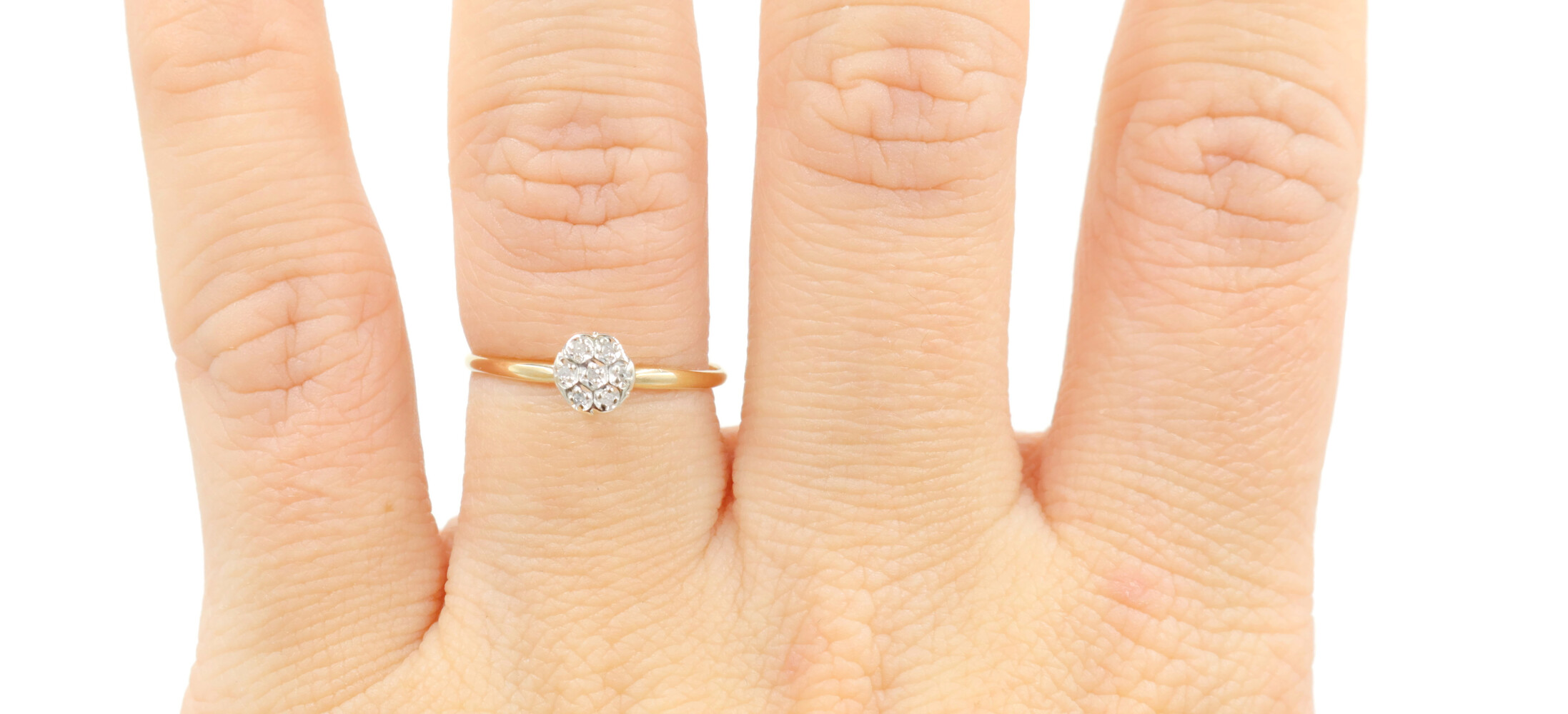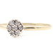 Women's Estate 10KT Yellow Gold 0.04 ctw Round Diamond Flower Cluster Ring. This ring is a size 6 3/4 and features 7 round single cut diamonds with a total approximate diamond carat weight of 0.04 ctw.