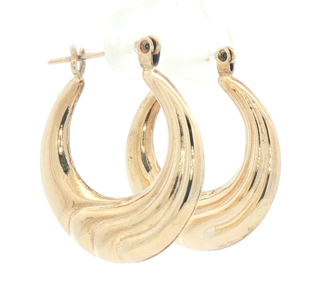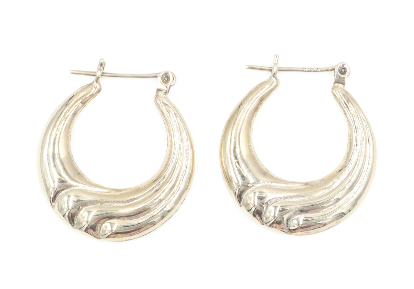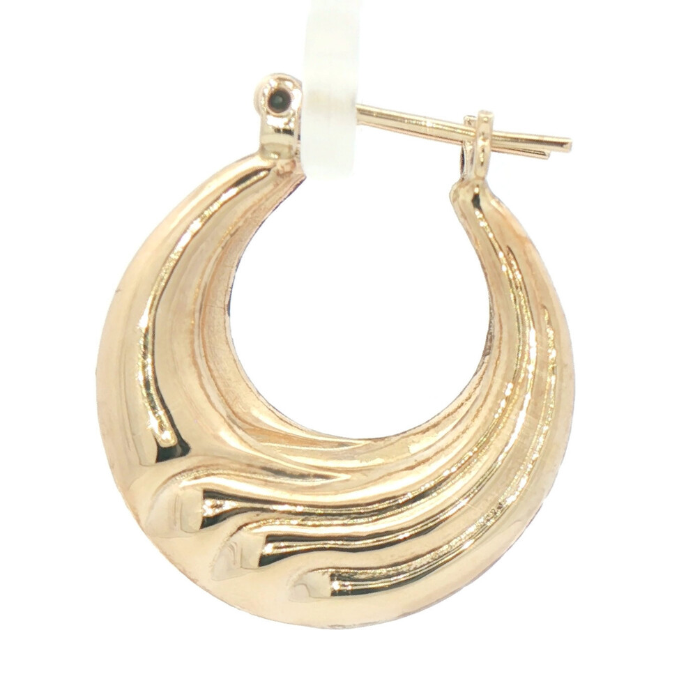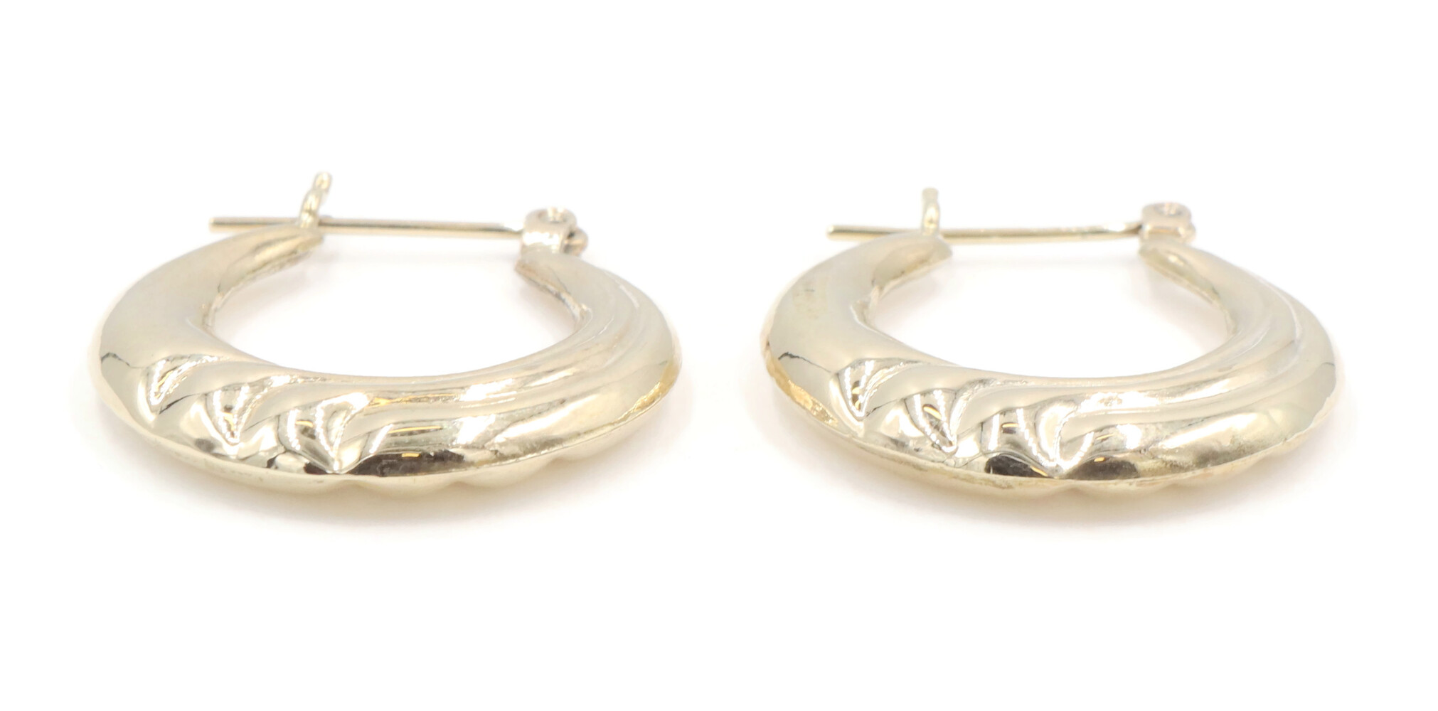 Women's Estate 10KT Yellow Gold High Shine 0.9" Textured Round Hoop Earrings | USA Pawn