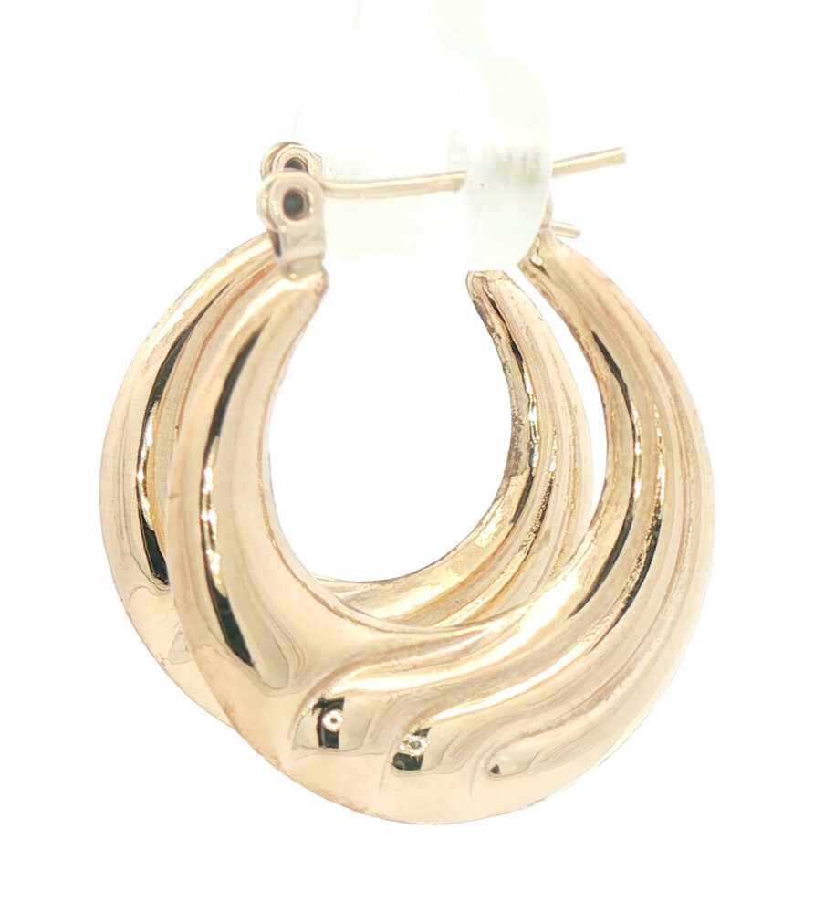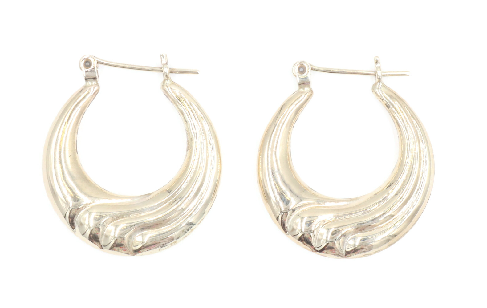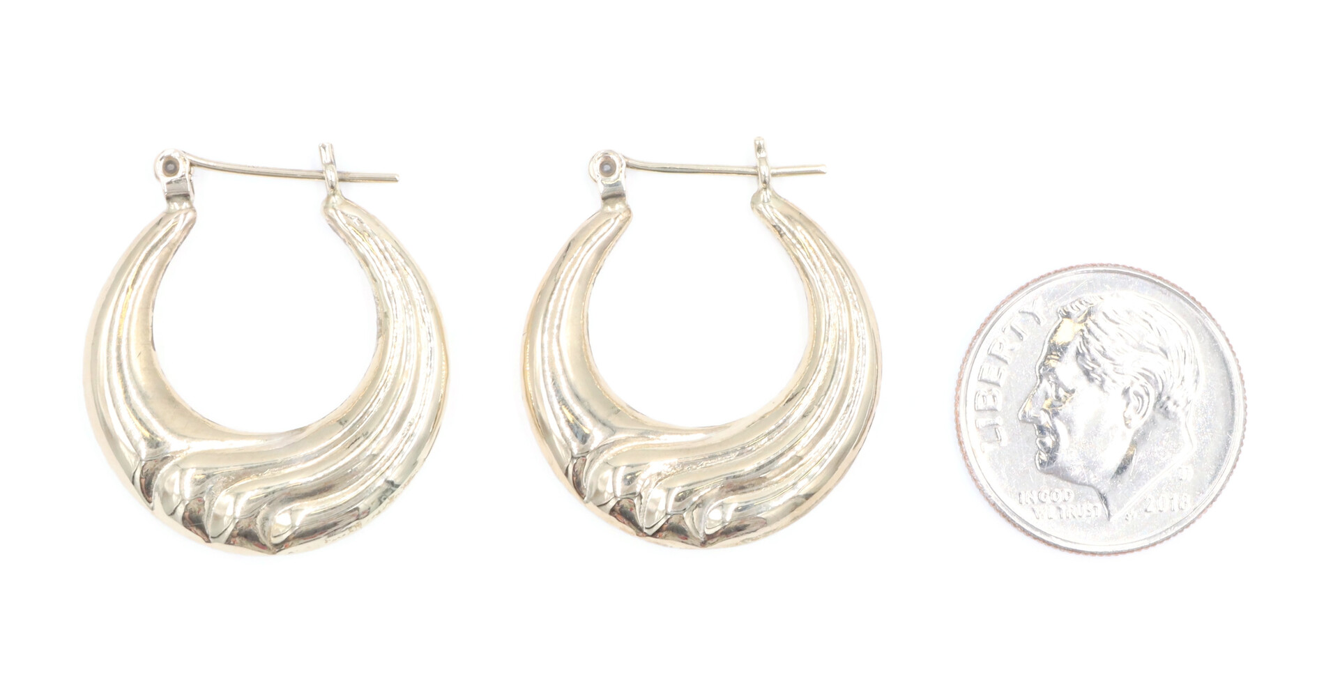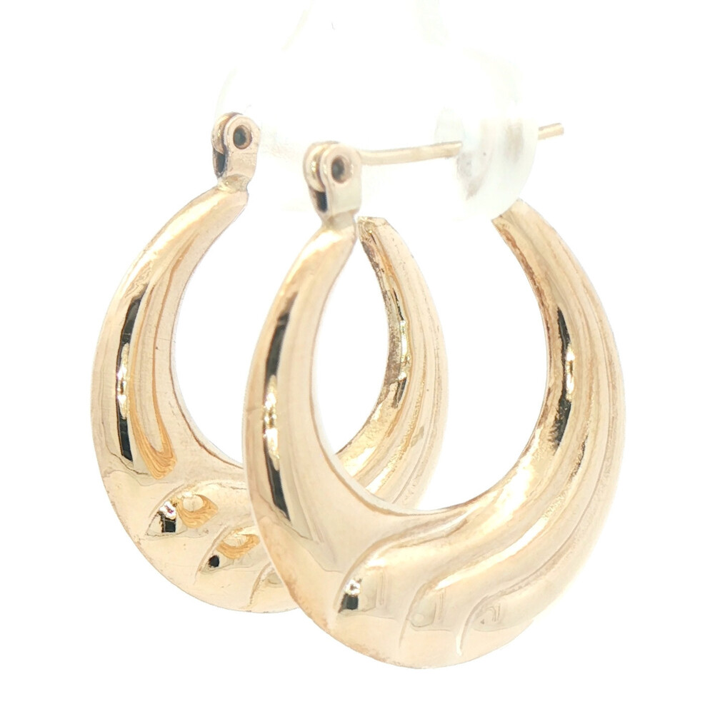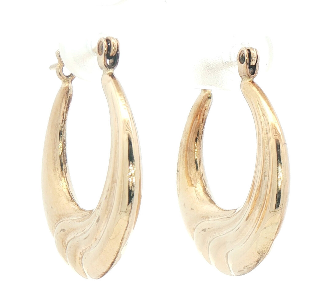 Women's Estate 10KT Yellow Gold High Shine 0.9" Textured Round Hoop Earrings | USA Pawn