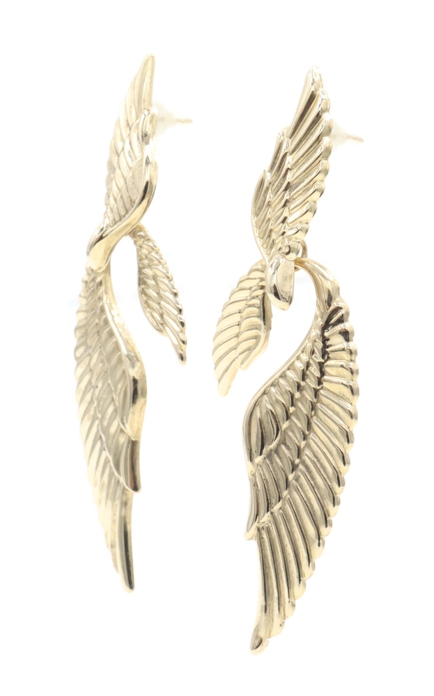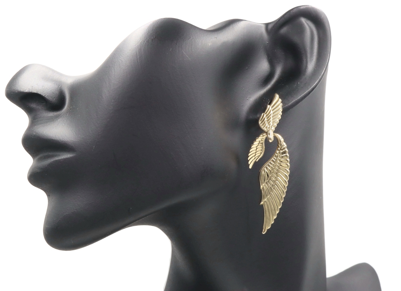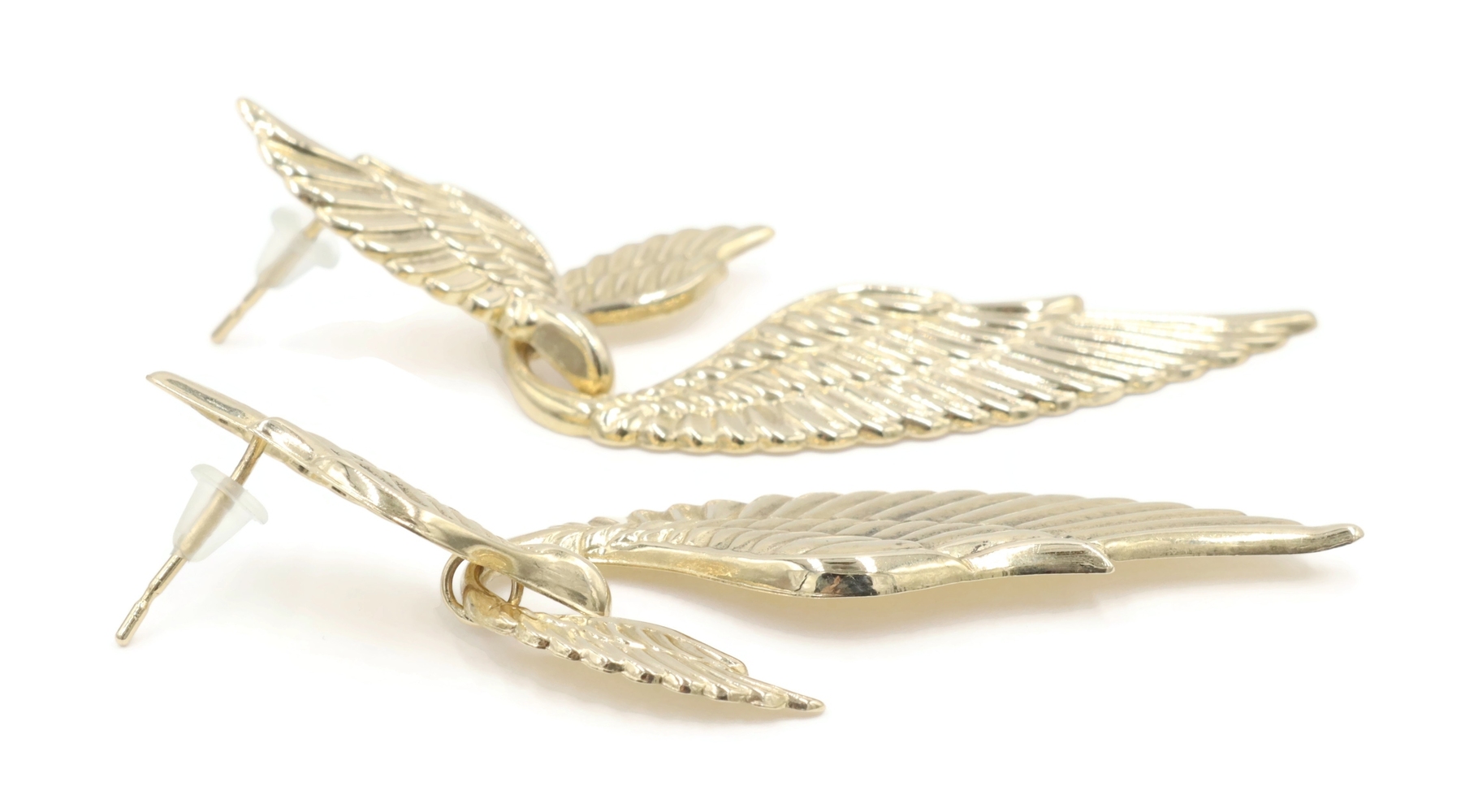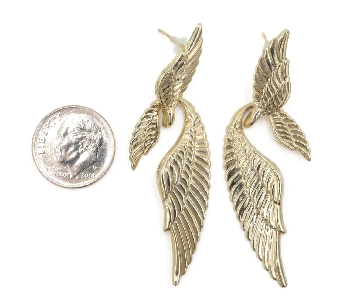 Women's Estate 14KT Yellow Gold 2.2" Stunning Angel Wings Dangle Earrings 2.47g | USA Pawn