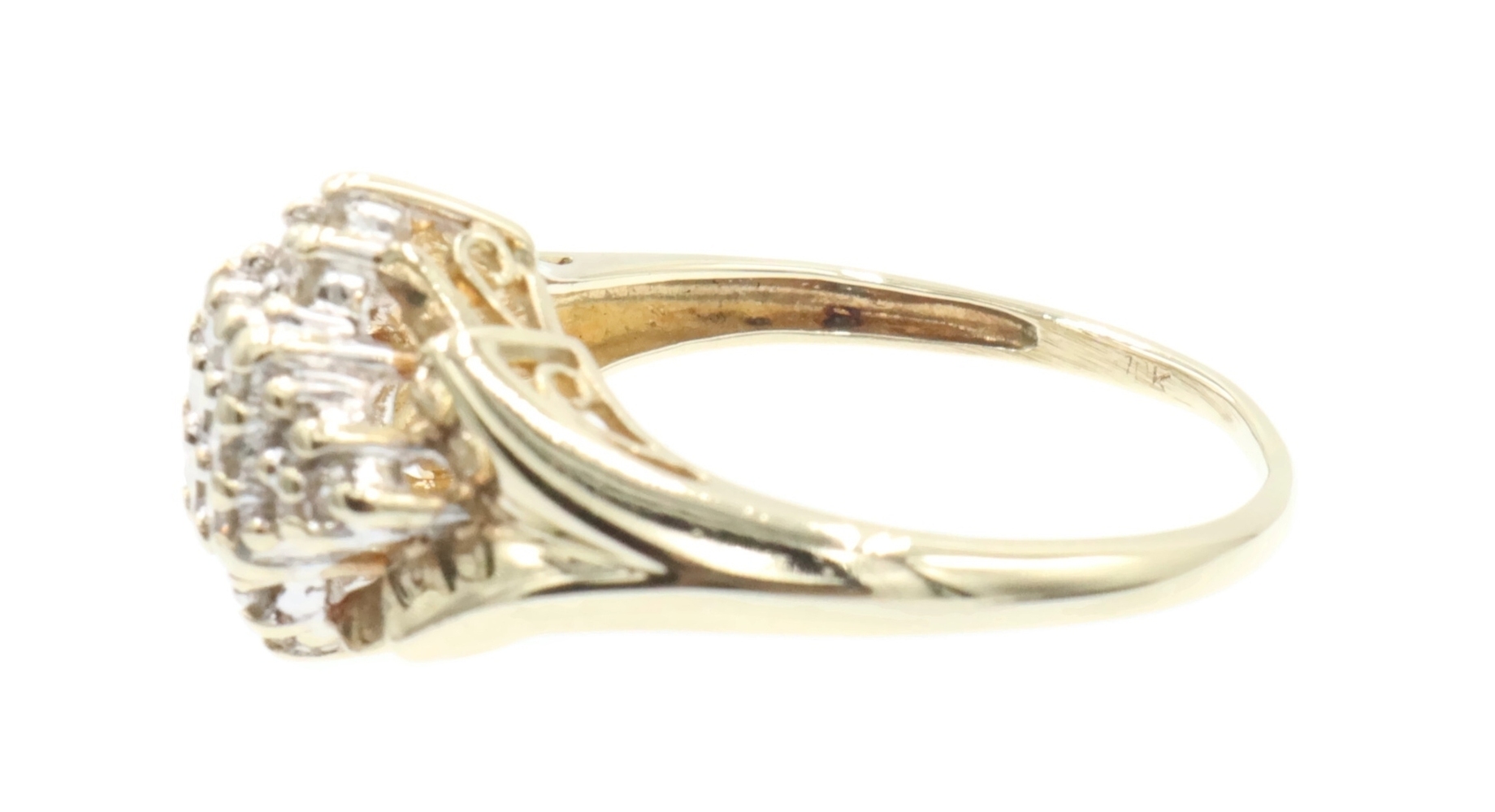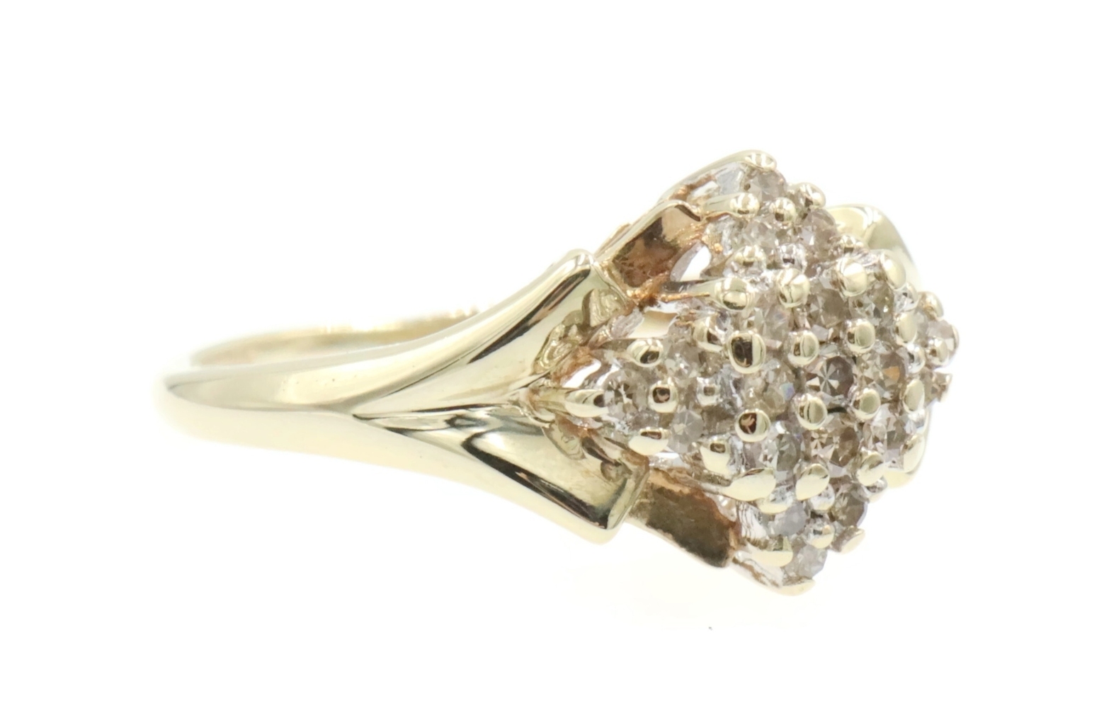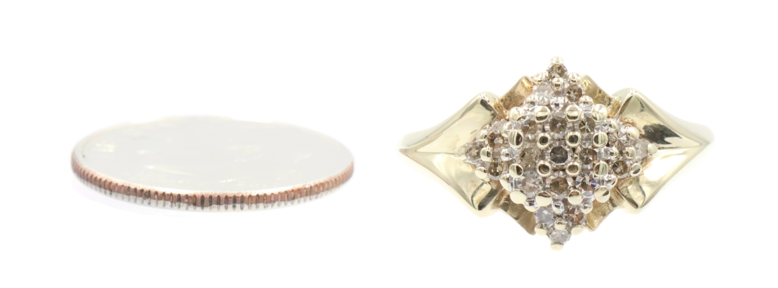 Women's Fancy 0.30 Ctw Round Champagne Diamond 10KT Yellow Gold Cluster Ring GL. This ring is a size 6.