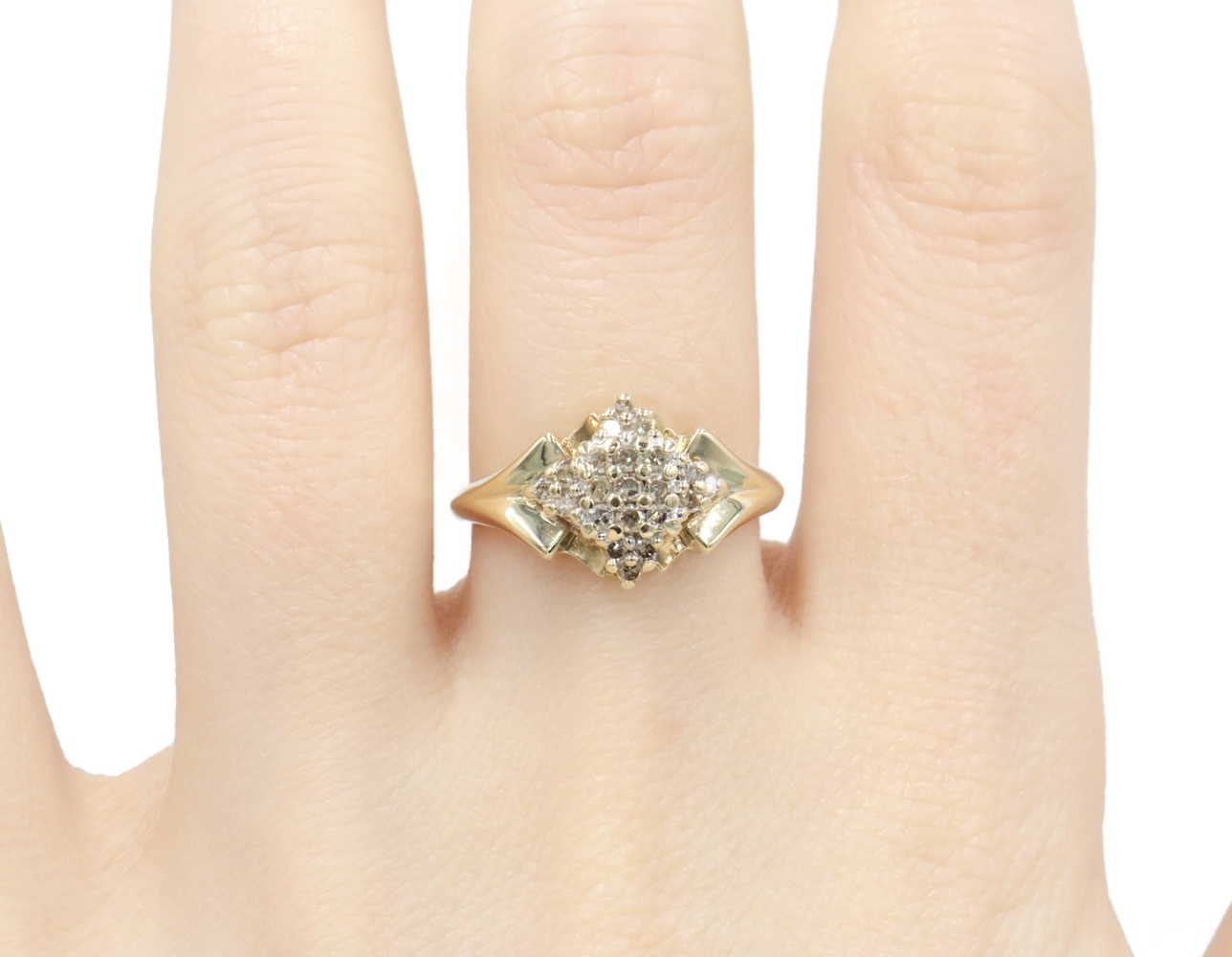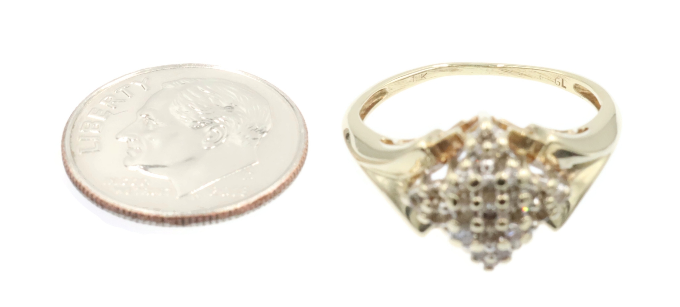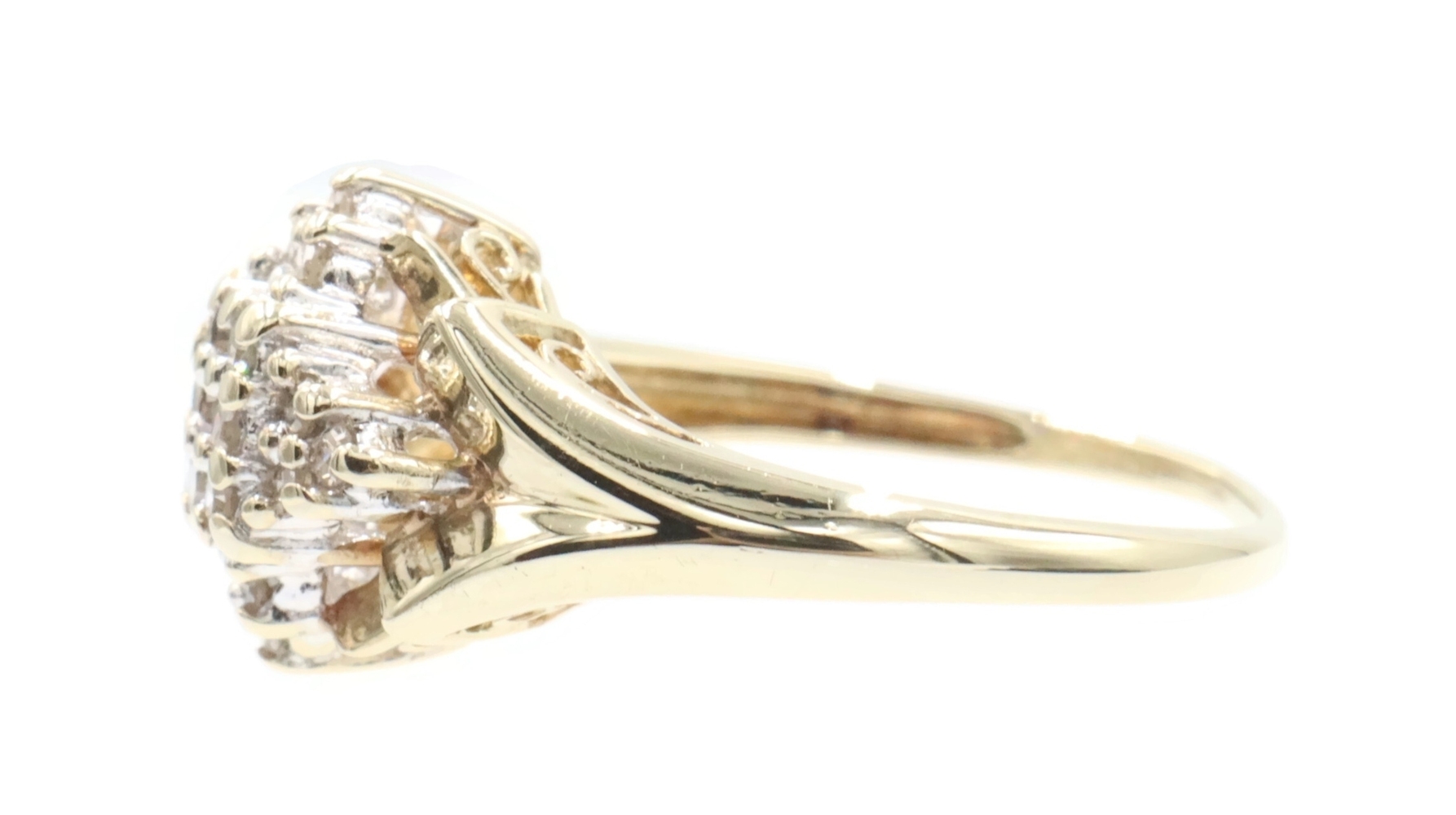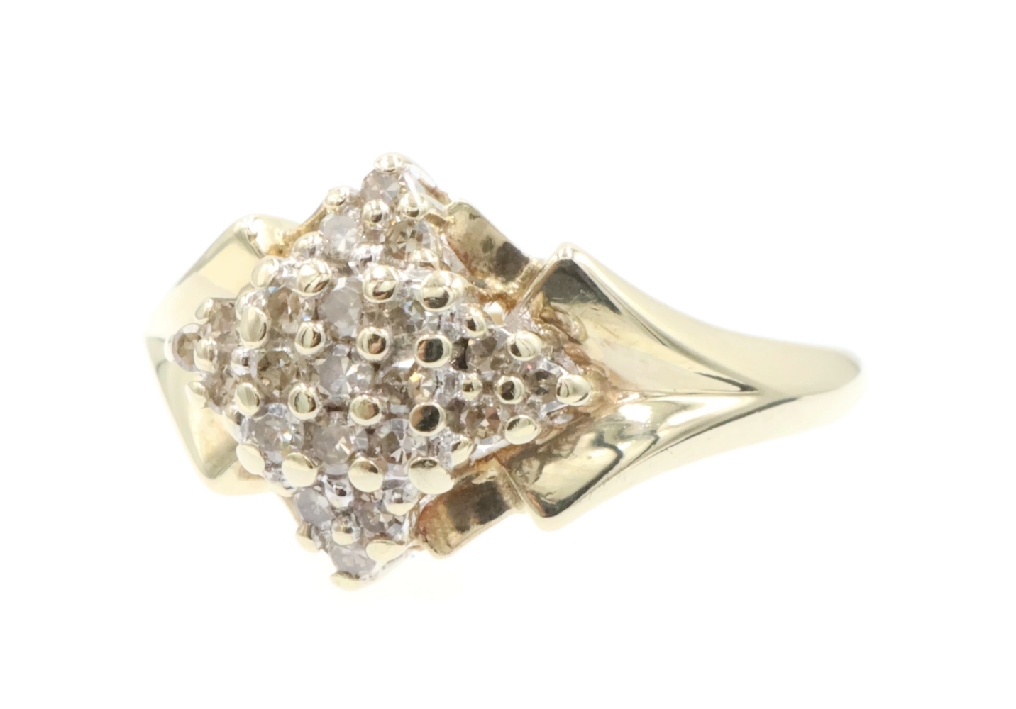 Women's Fancy 0.30 Ctw Round Champagne Diamond 10KT Yellow Gold Cluster Ring GL. This ring is a size 6.