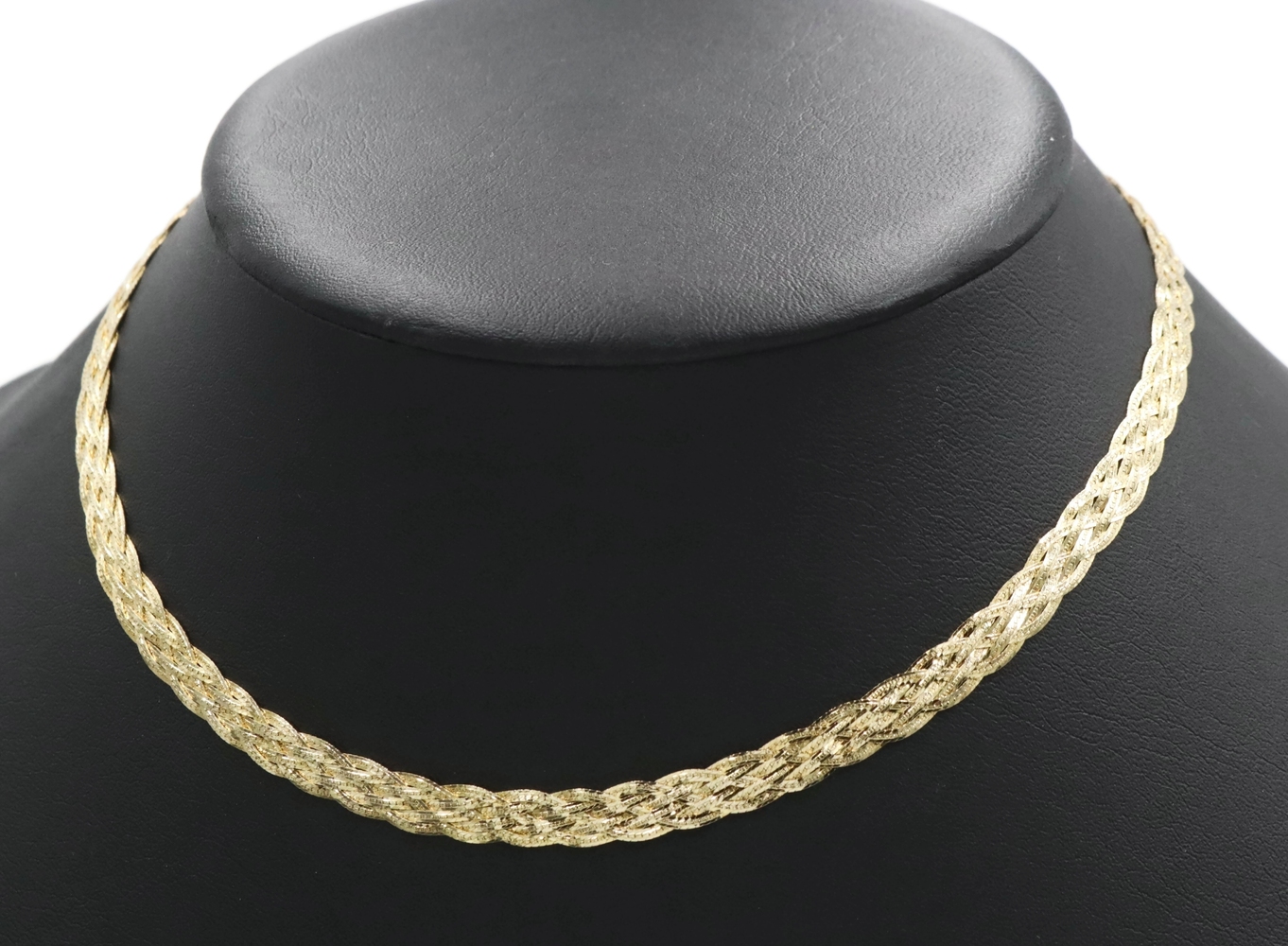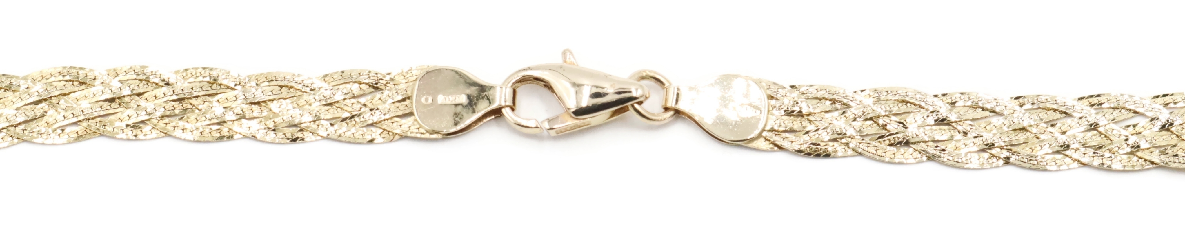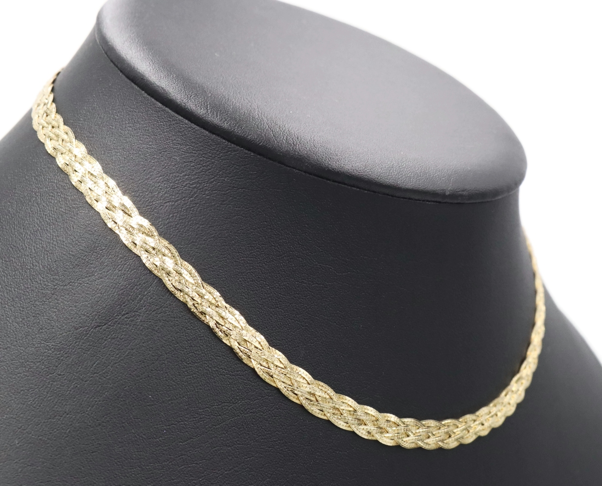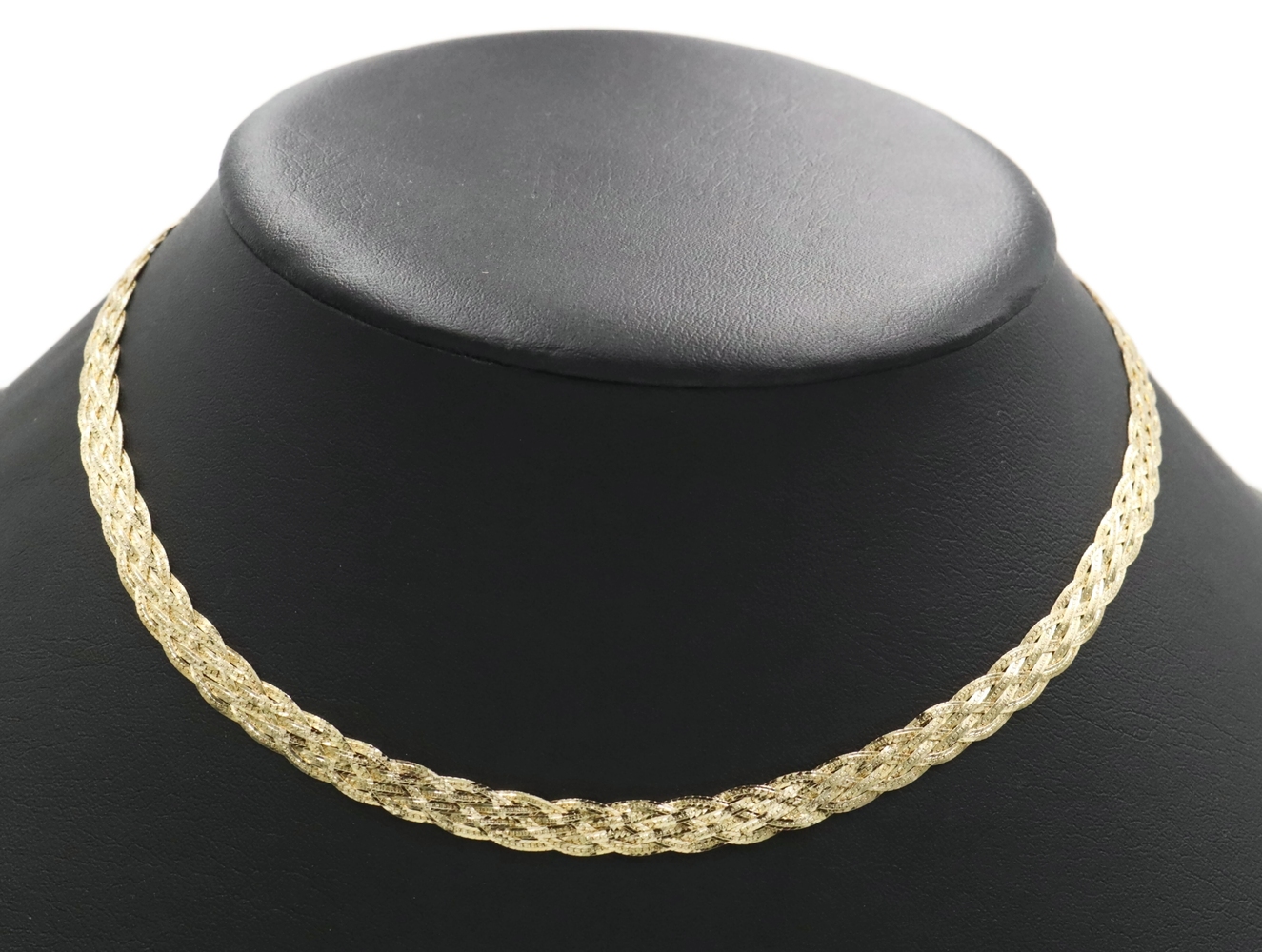 Women's Fancy 14KT Yellow Gold 6.6mm Braided Woven Herringbone Necklace 16" 10g. This necklace is approximately 16 inches in length and 6.6mm in width.