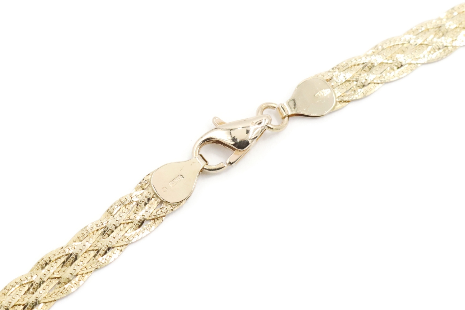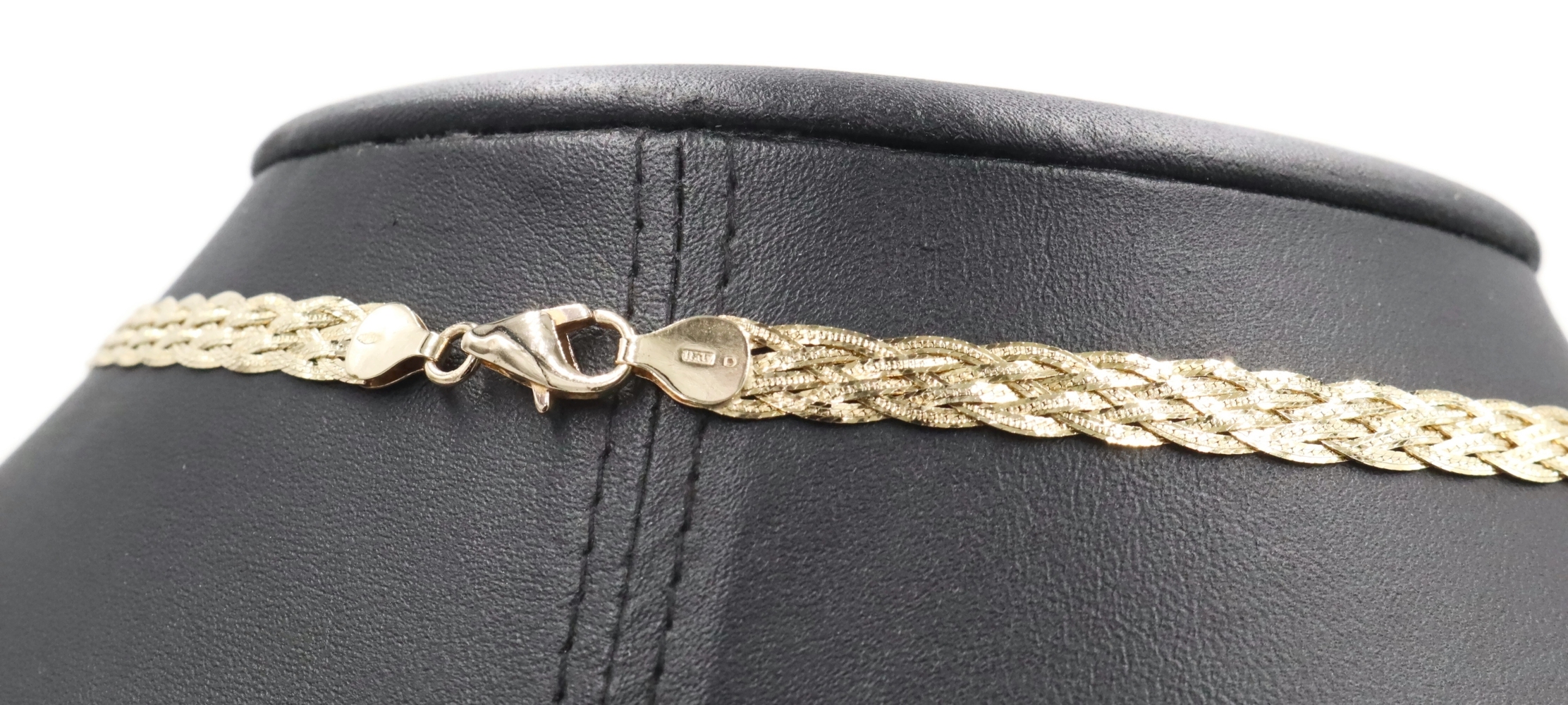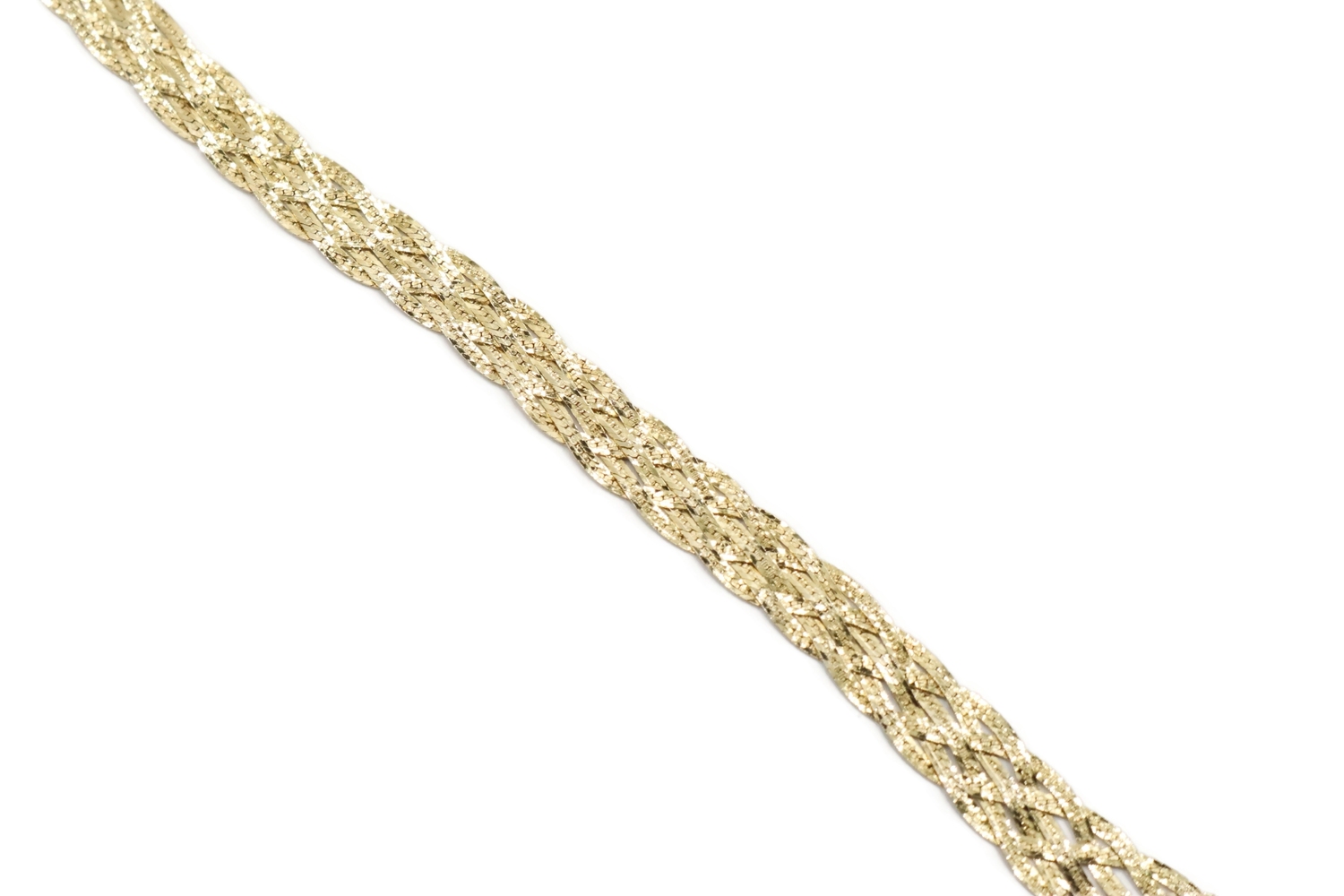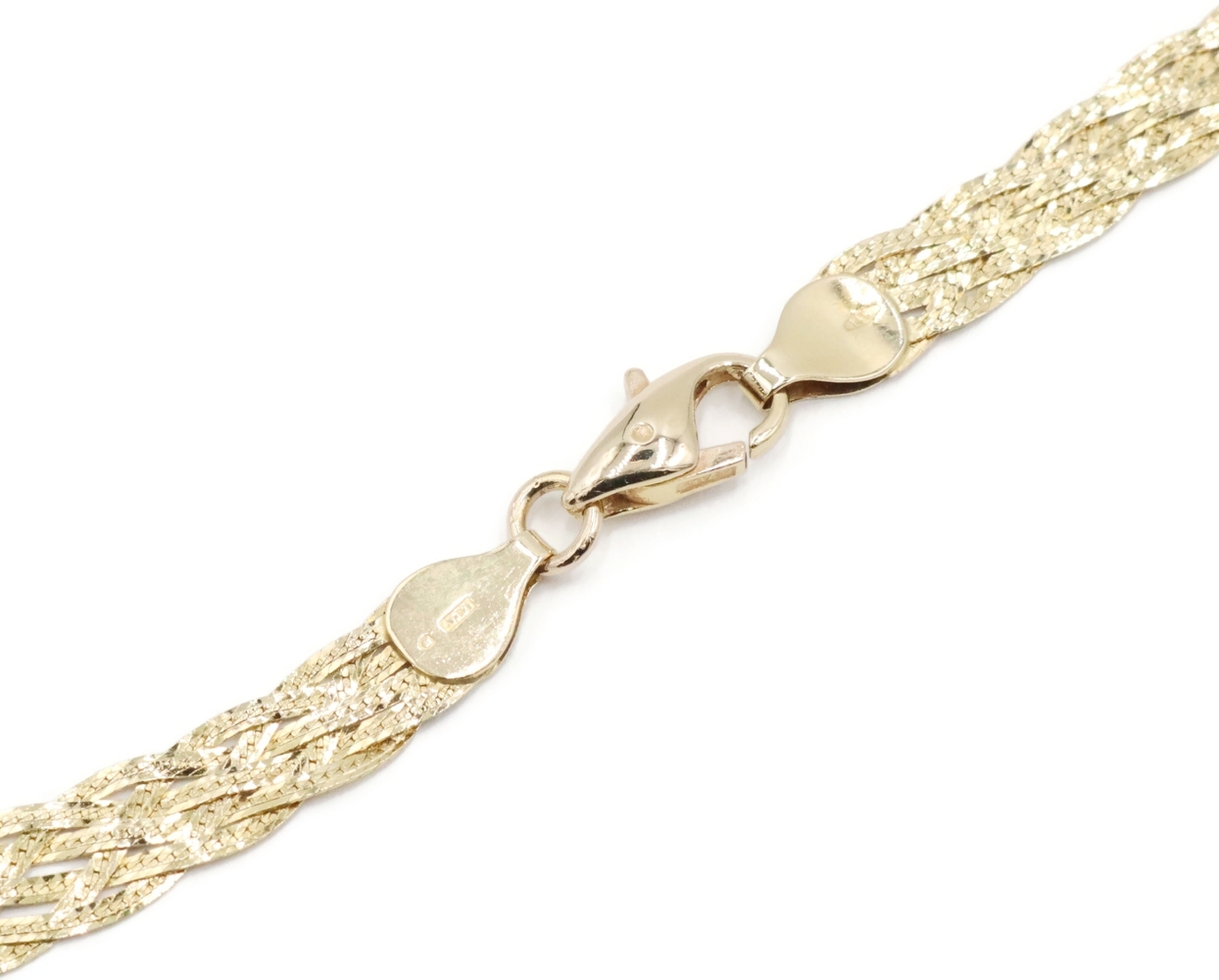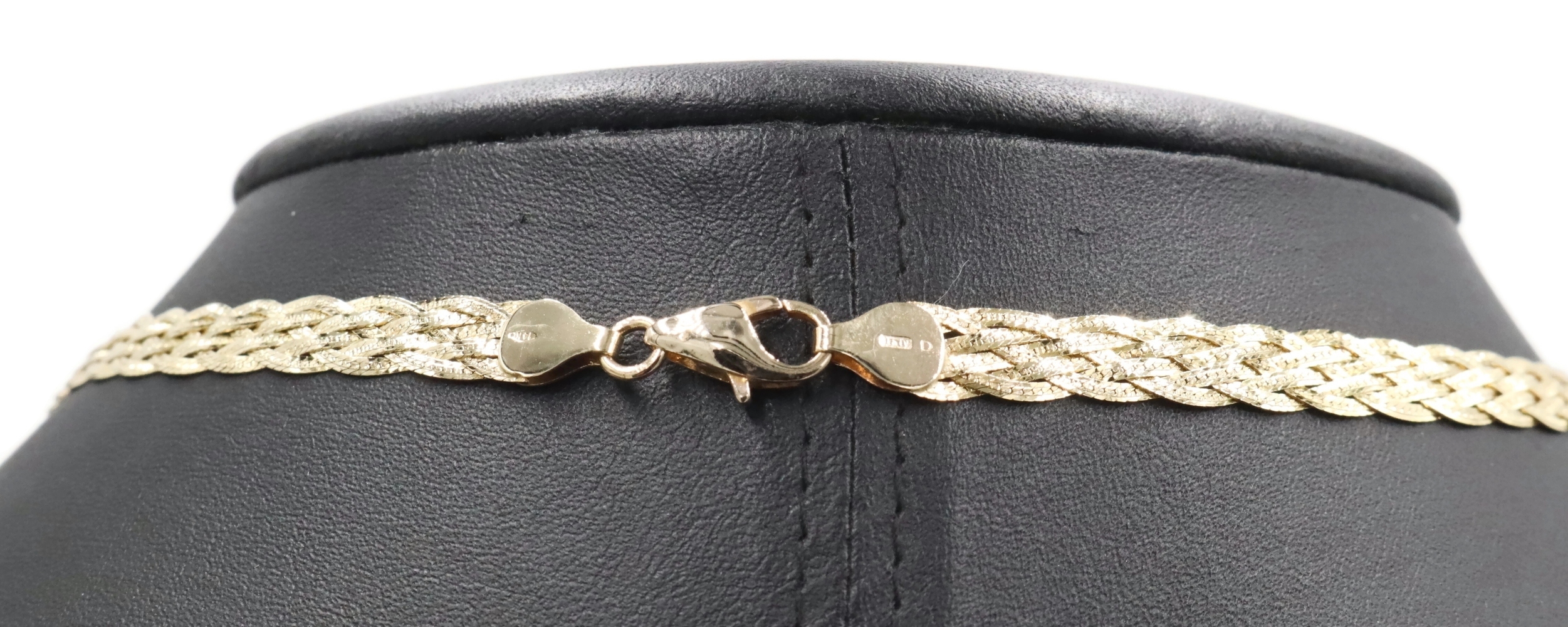 Women's Fancy 14KT Yellow Gold 6.6mm Braided Woven Herringbone Necklace 16" 10g. This necklace is approximately 16 inches in length and 6.6mm in width.