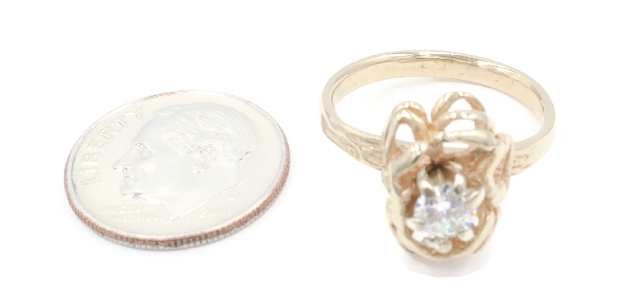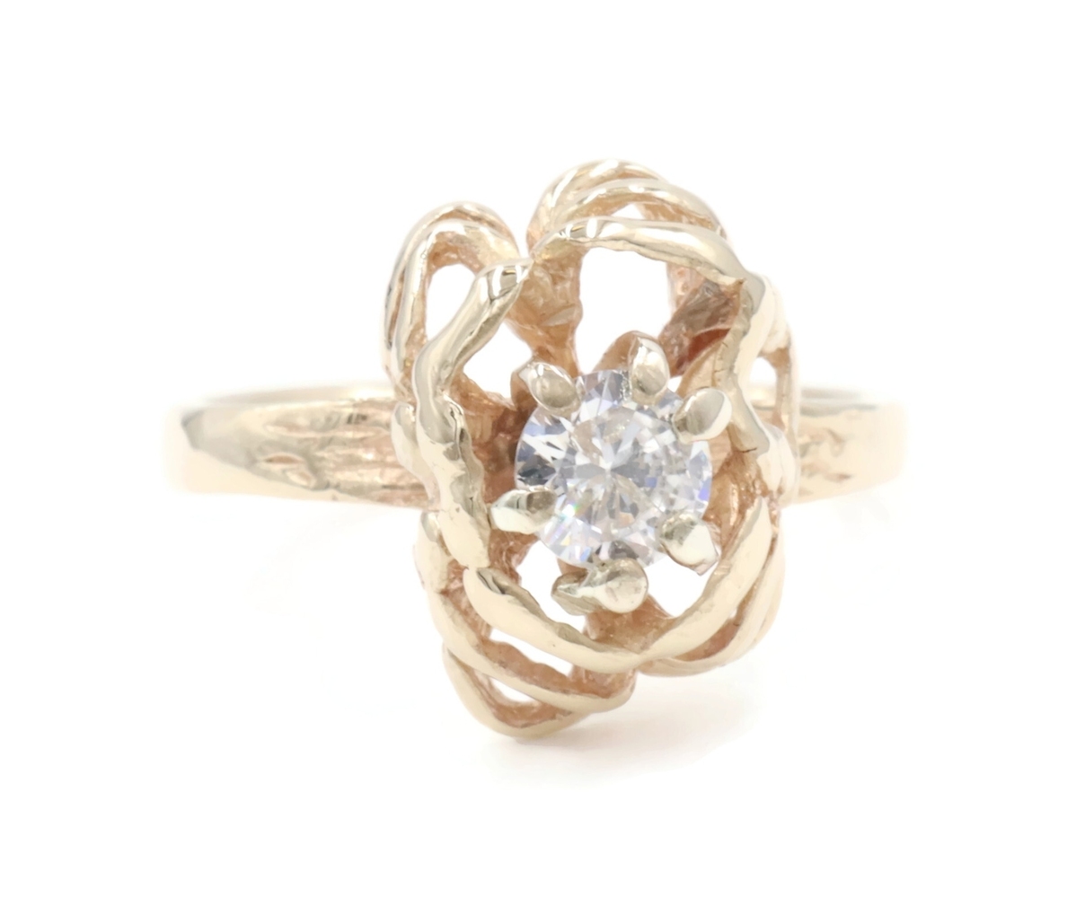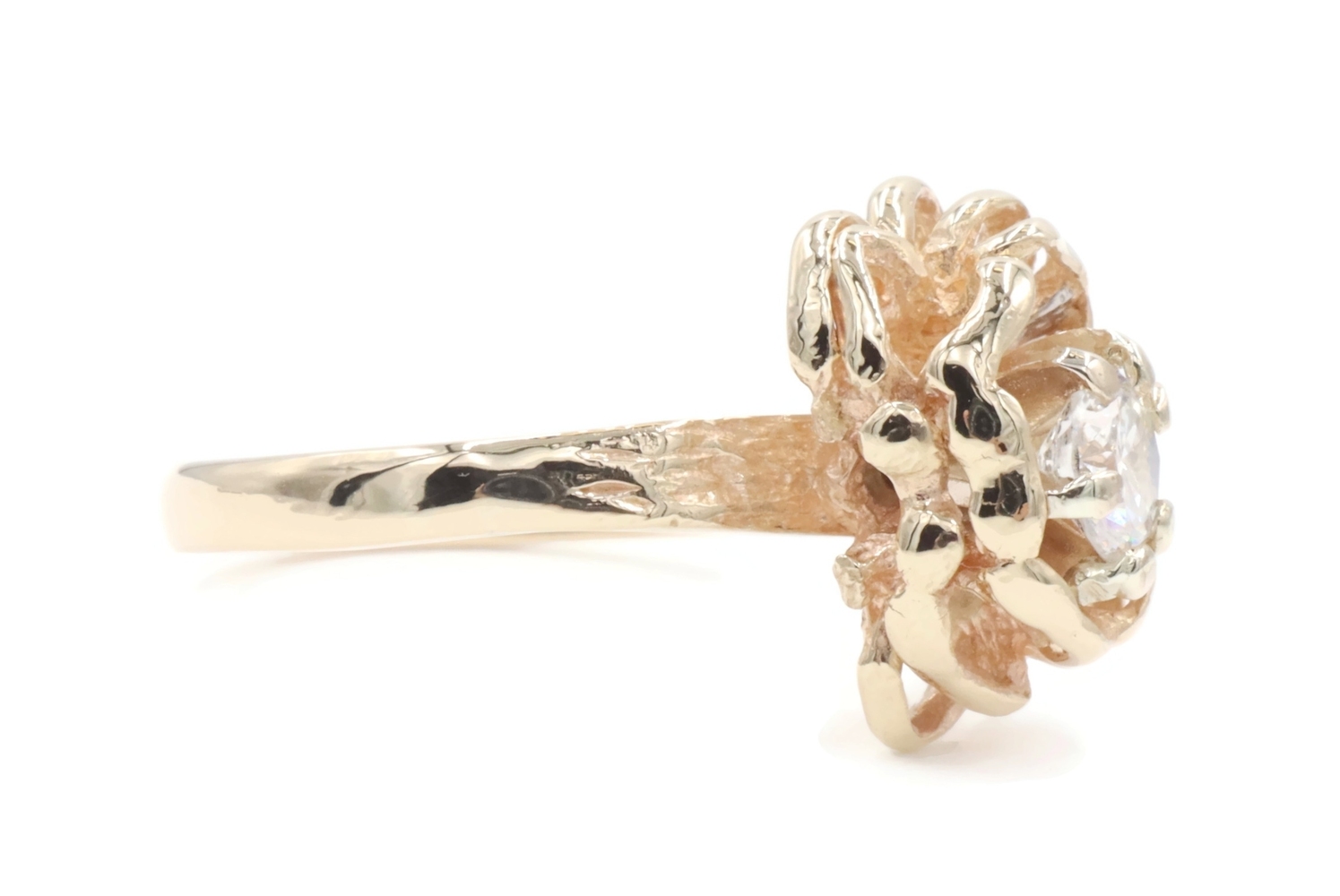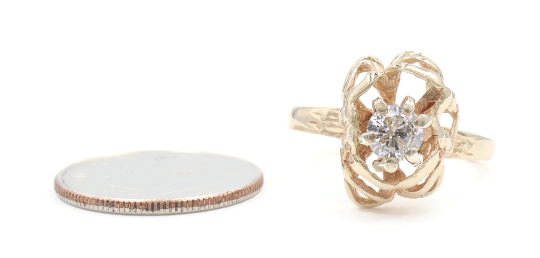 Women's Floral Style 0.35 Ct Solitaire Round Cut Diamond 14KT Yellow Gold Ring. This ring is a size 5 1/4.