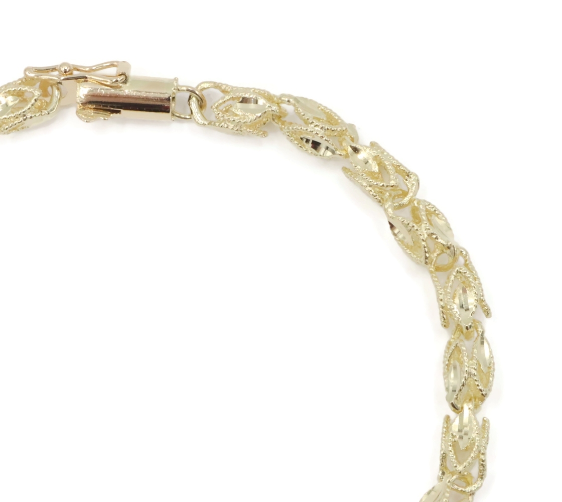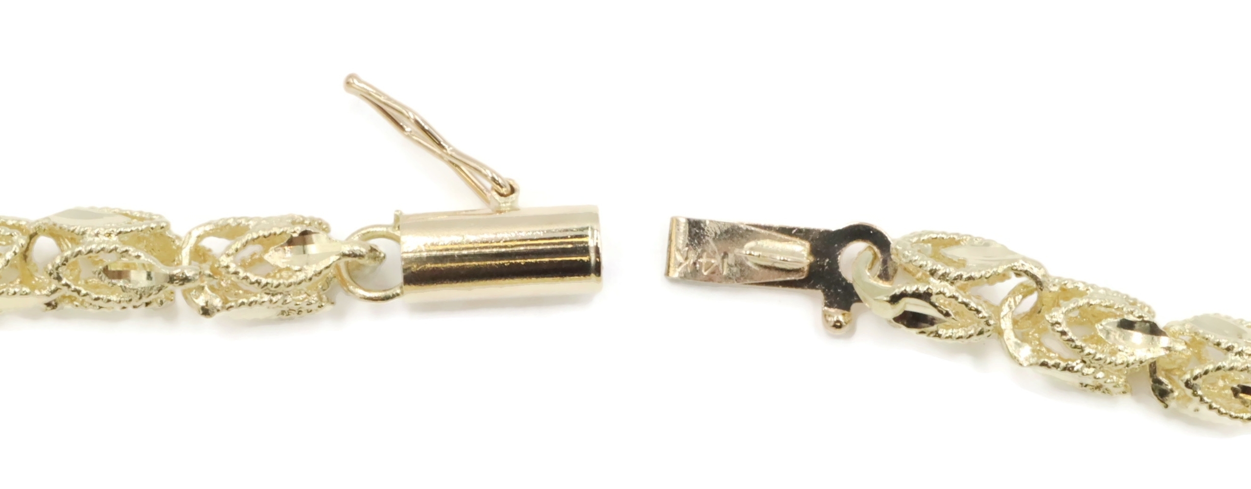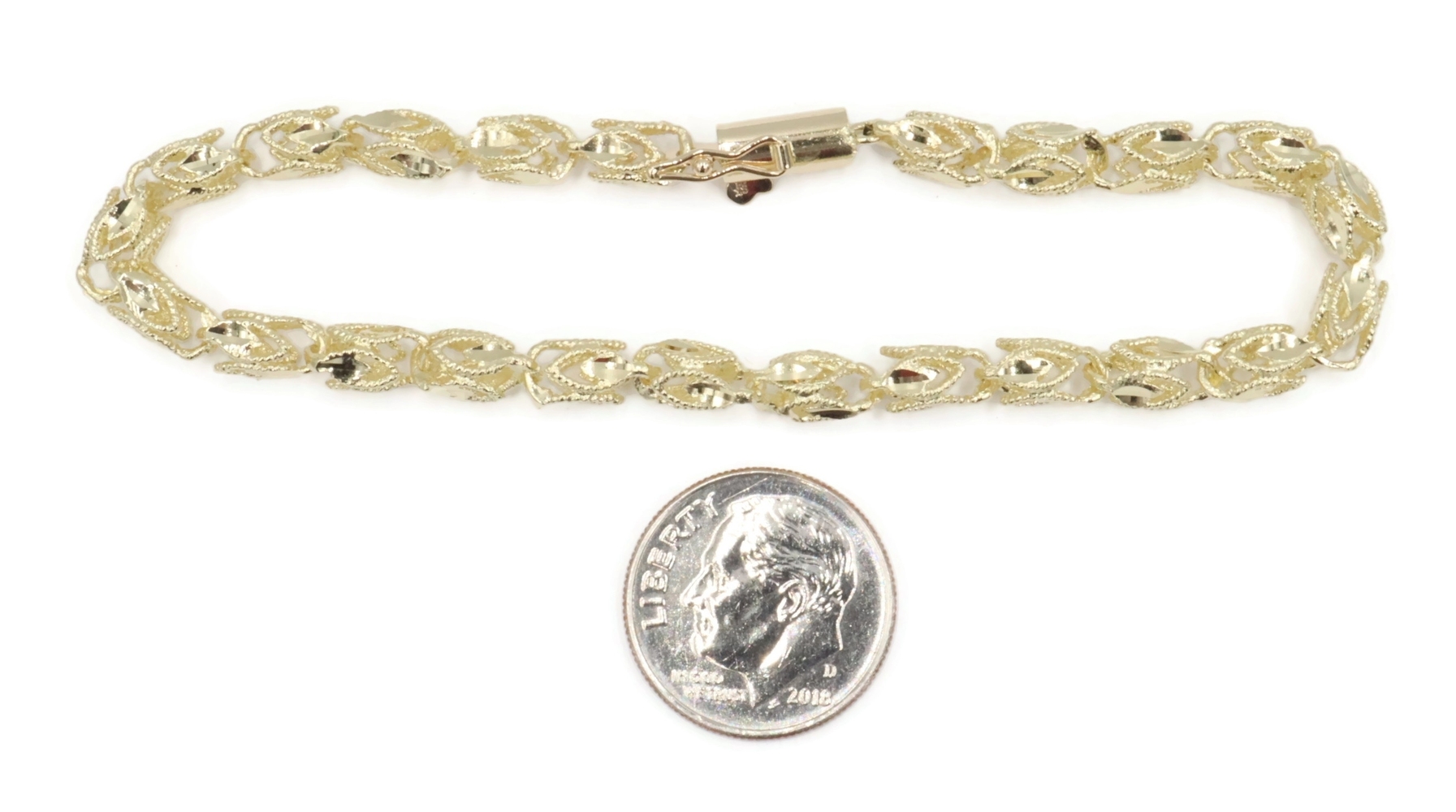 Women's High Shine 14KT Yellow Gold 4.8mm Turkish Chain Bracelet 7.5" SAK 7.11g. This bracelet is approximately 7 1/2 inches in length and 4.8mm in width.