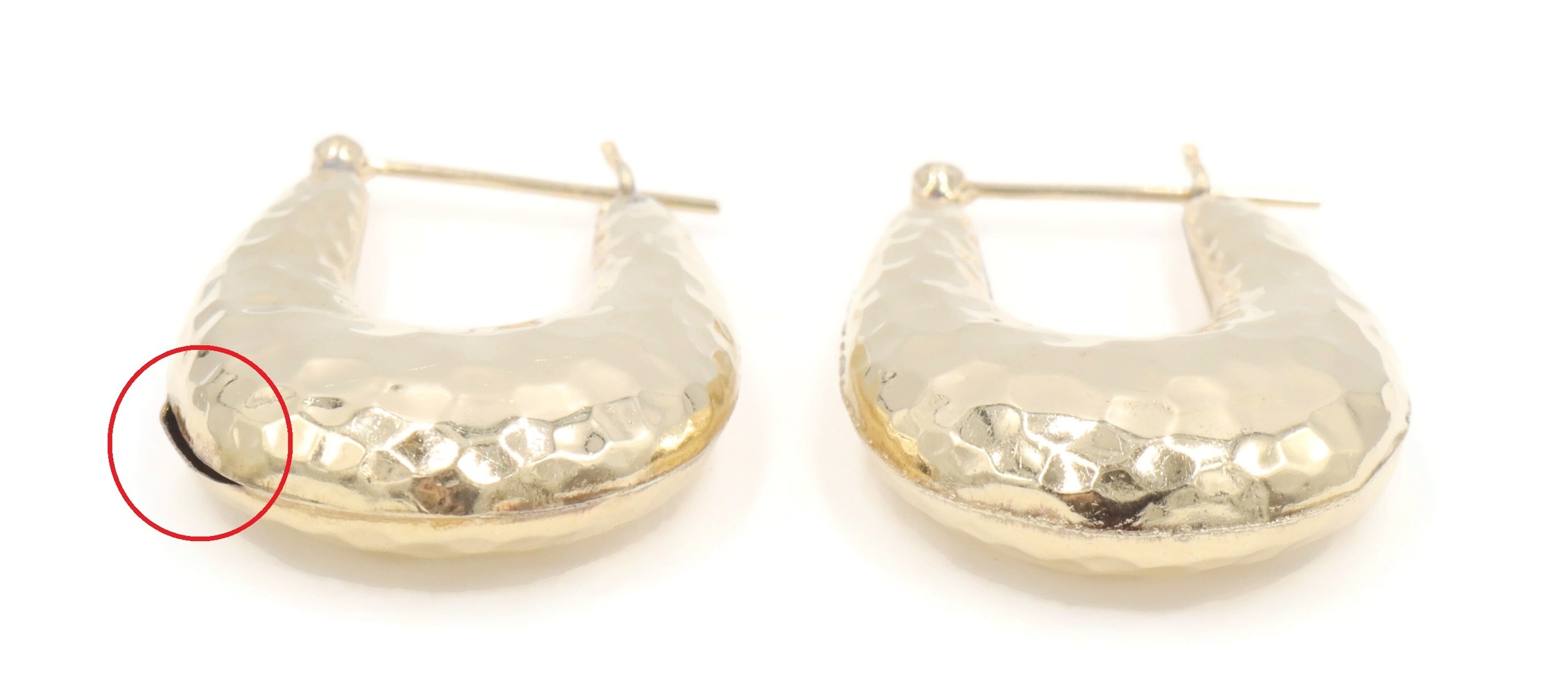 Women's Hollow 14KT Yellow Gold Hammered Texture Oval Hoop Earrings 1.1" - 3.82g | USA Pawn