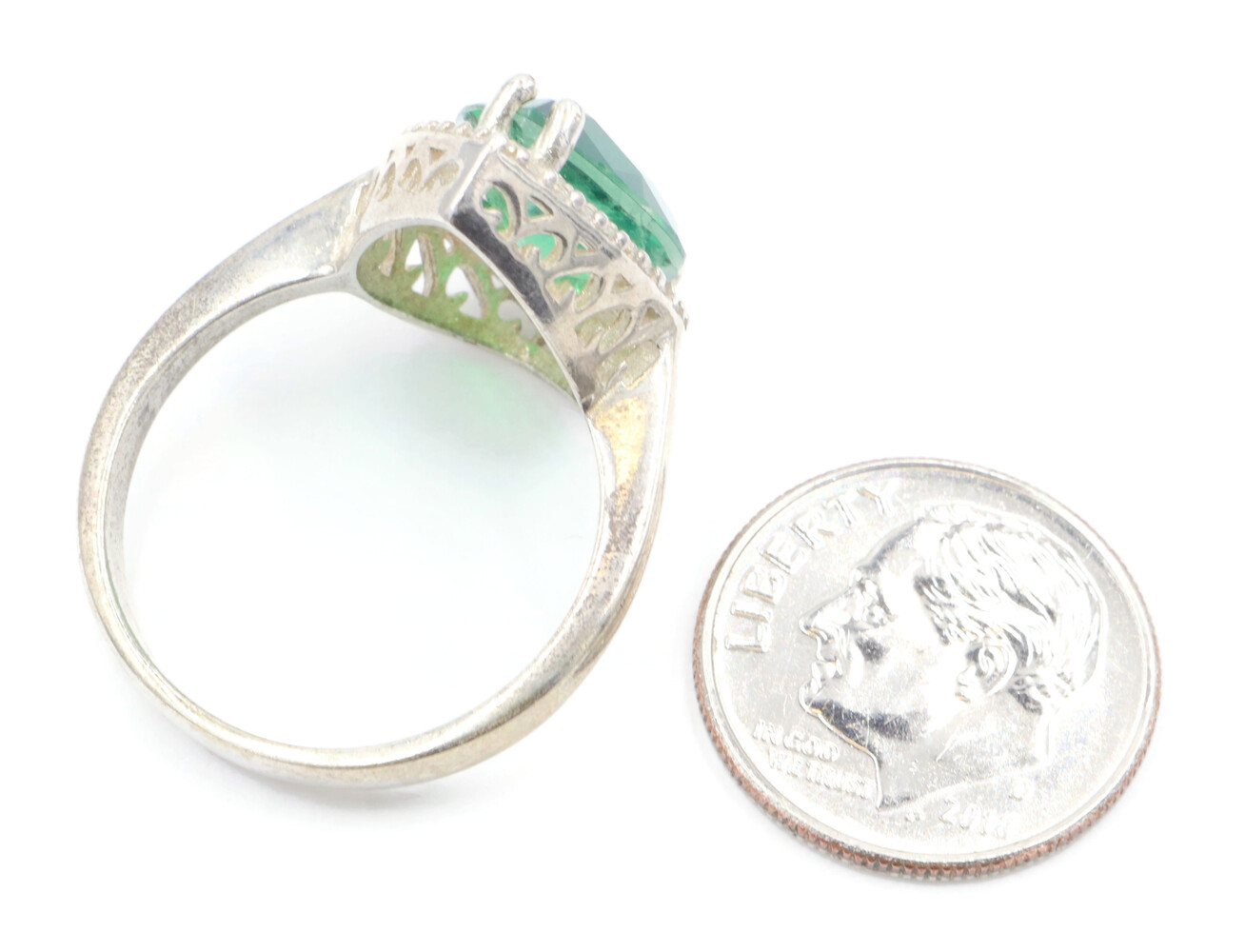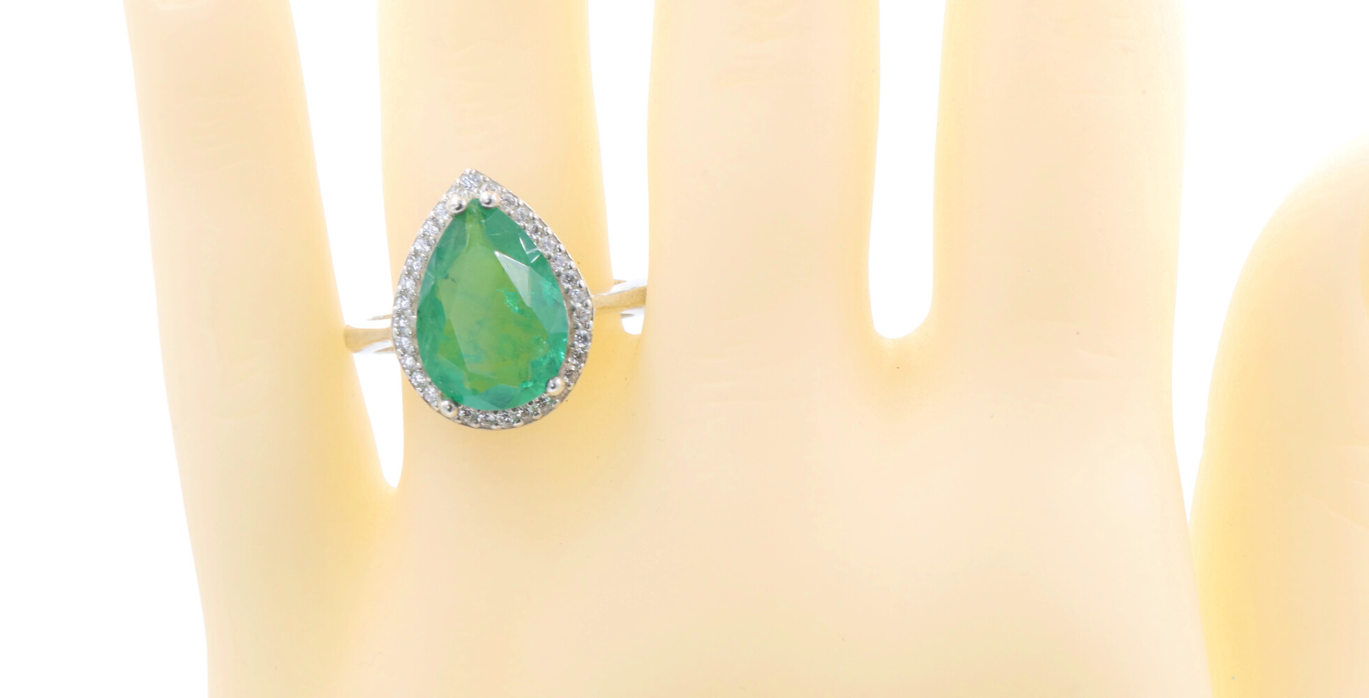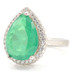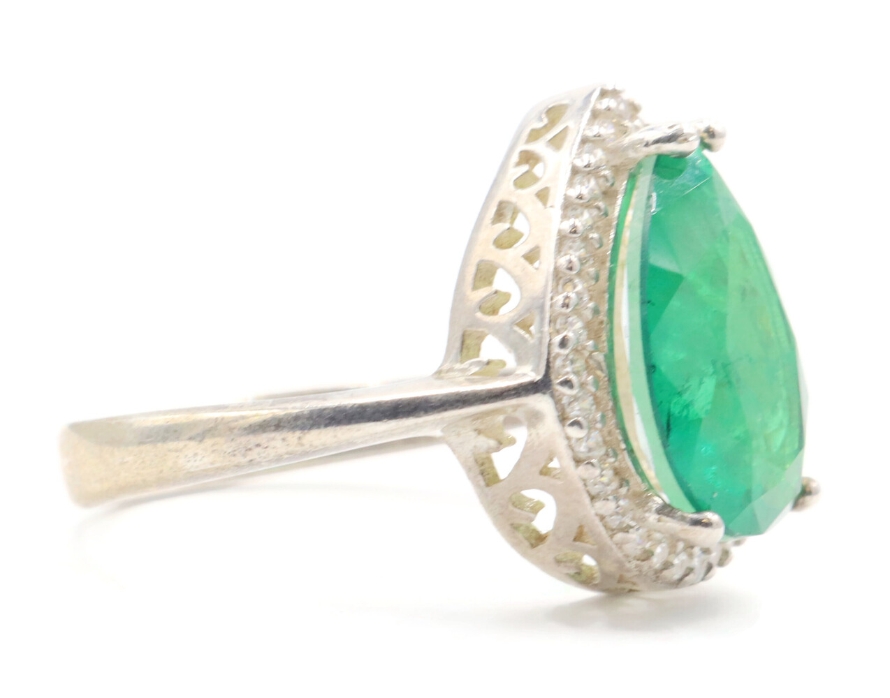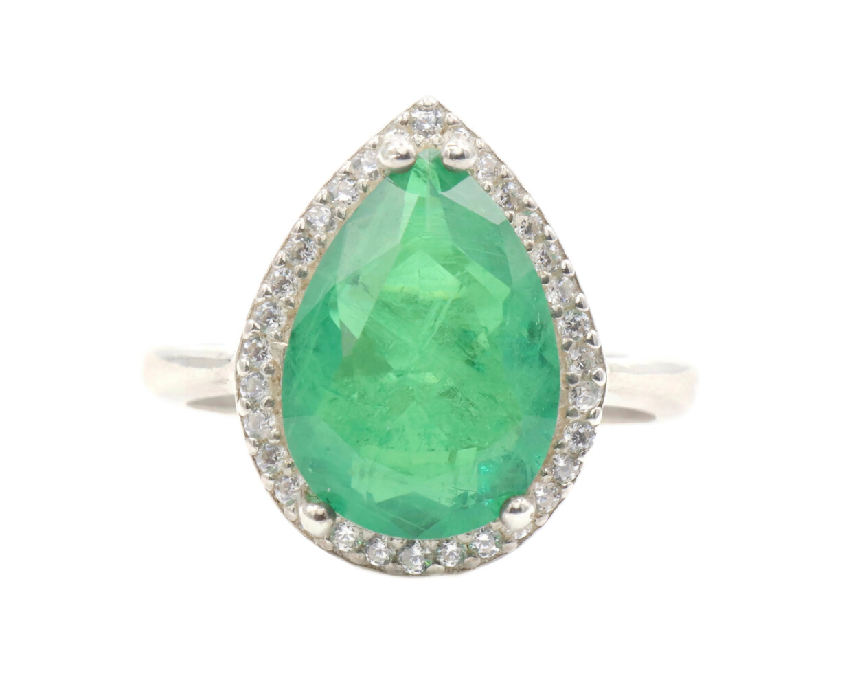 Women's Large Emerald Green Pear Cut CZ with Round CZ Halo Sterling Silver Ring | USA Pawn