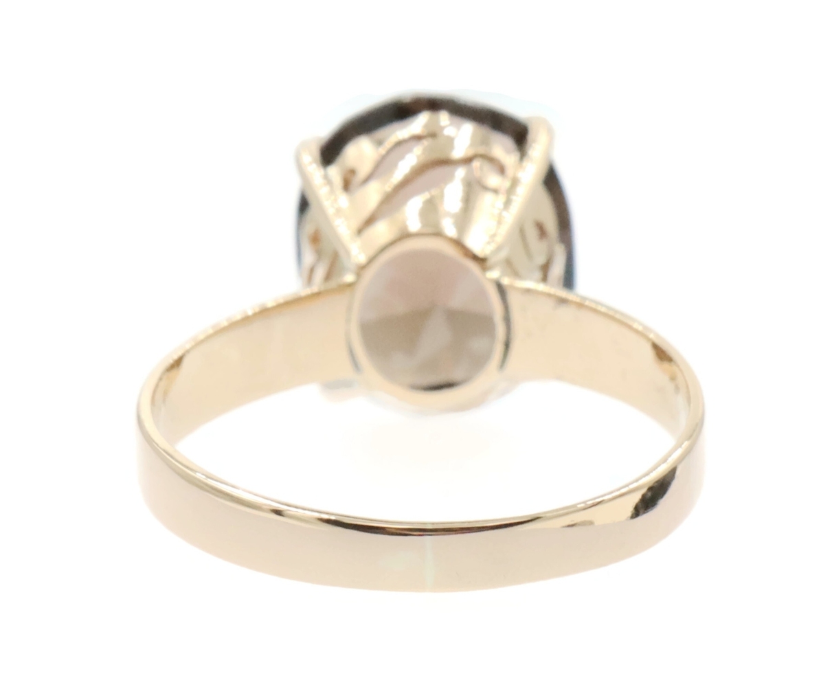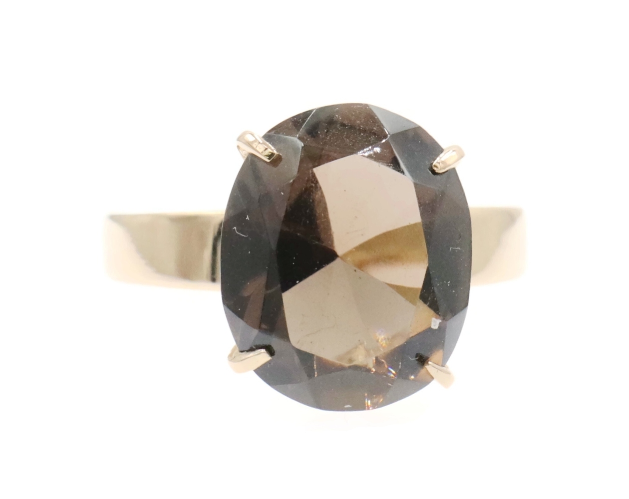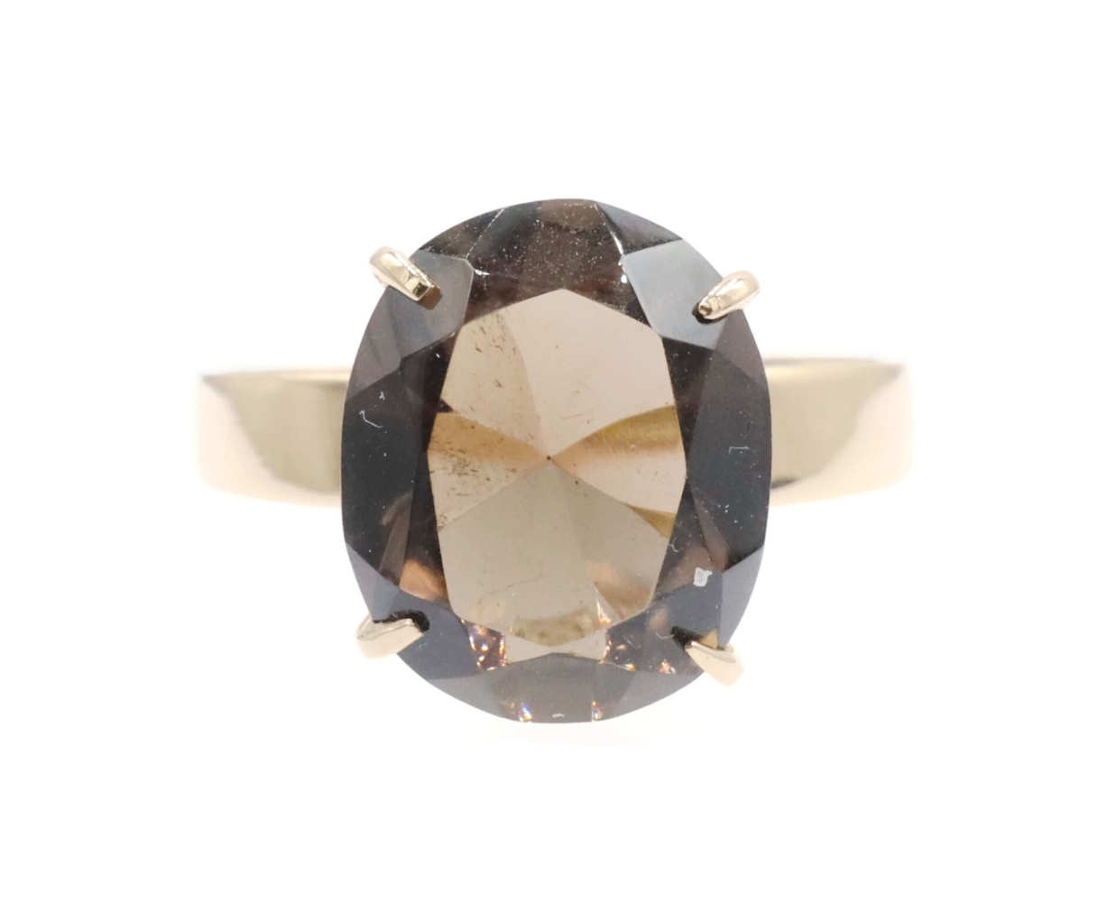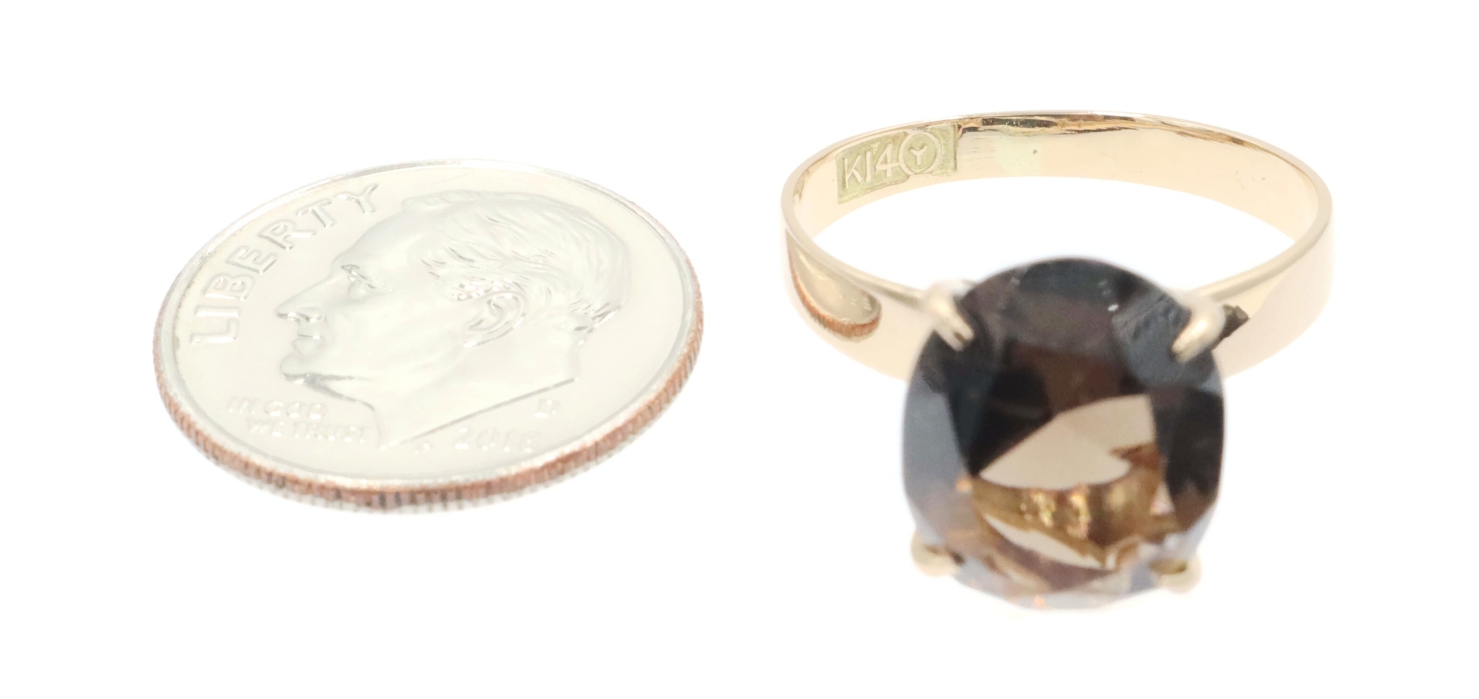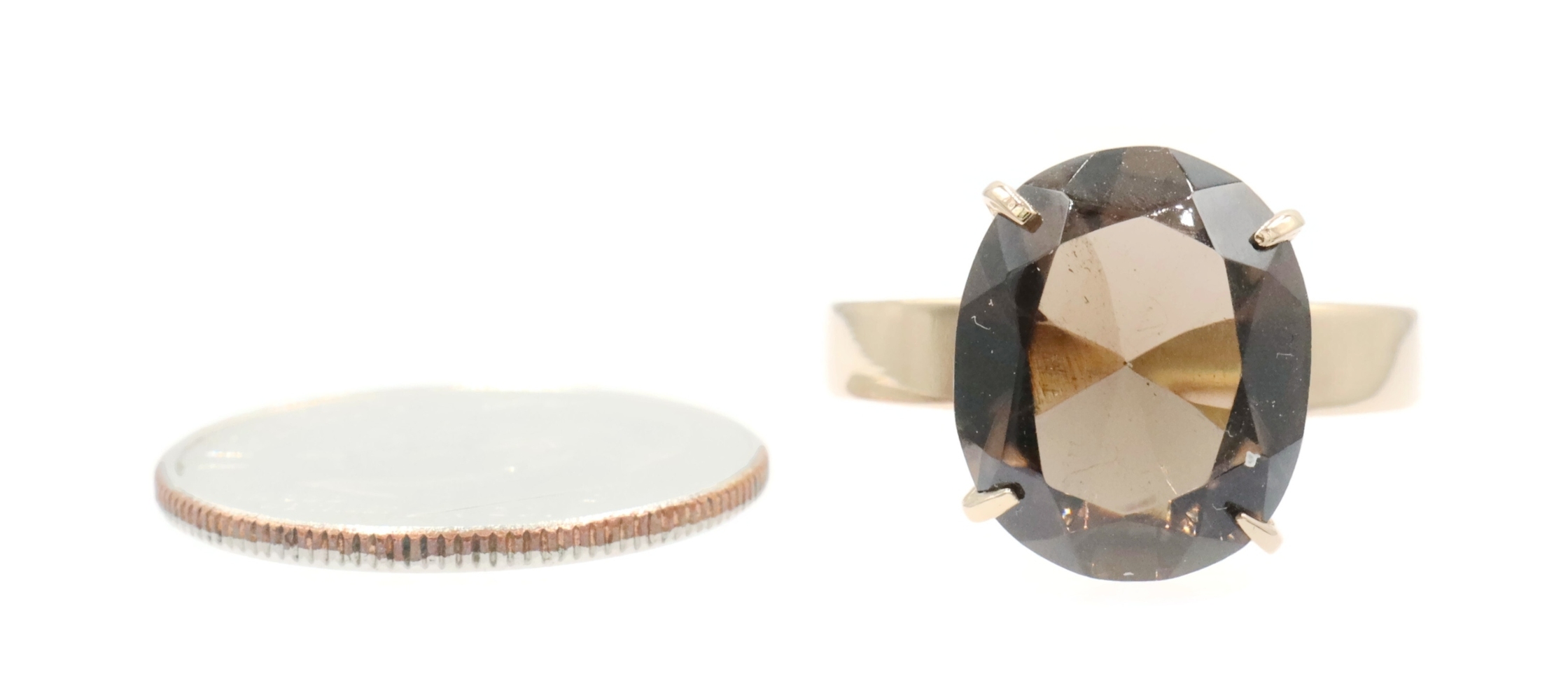 Women's Solitaire 3.05 Ct Oval Smoky Quartz 14KT Yellow Gold Gemstone Ring 2.63g | USA Pawn