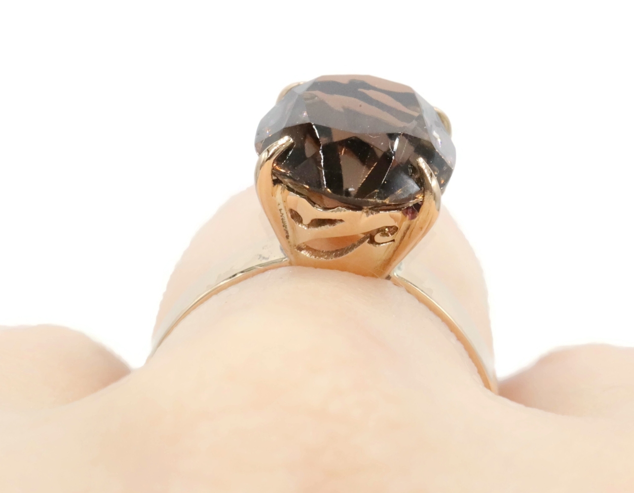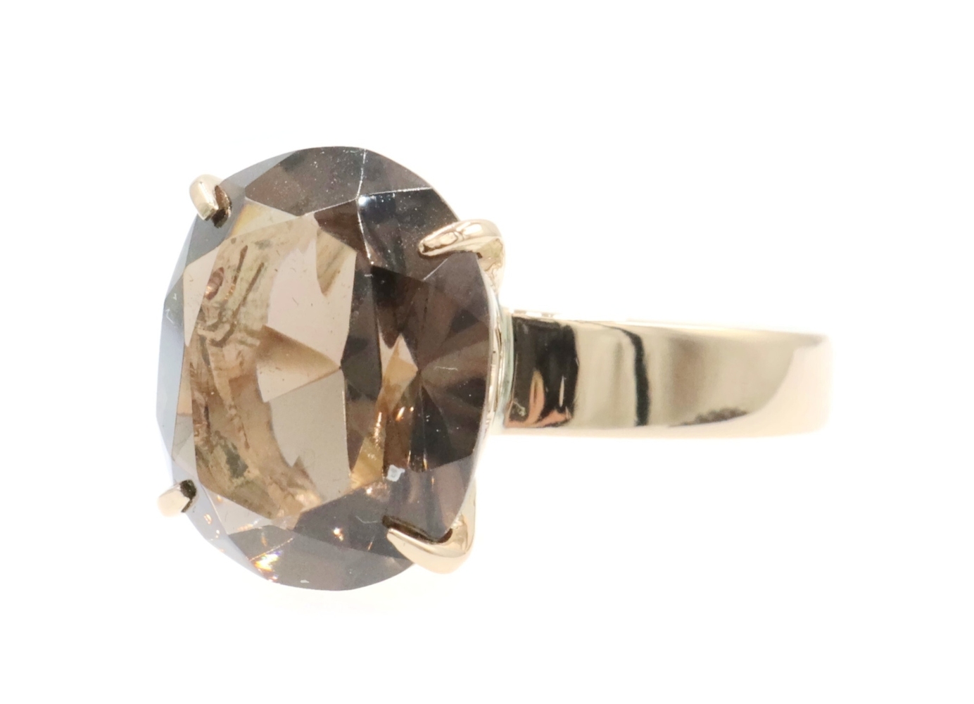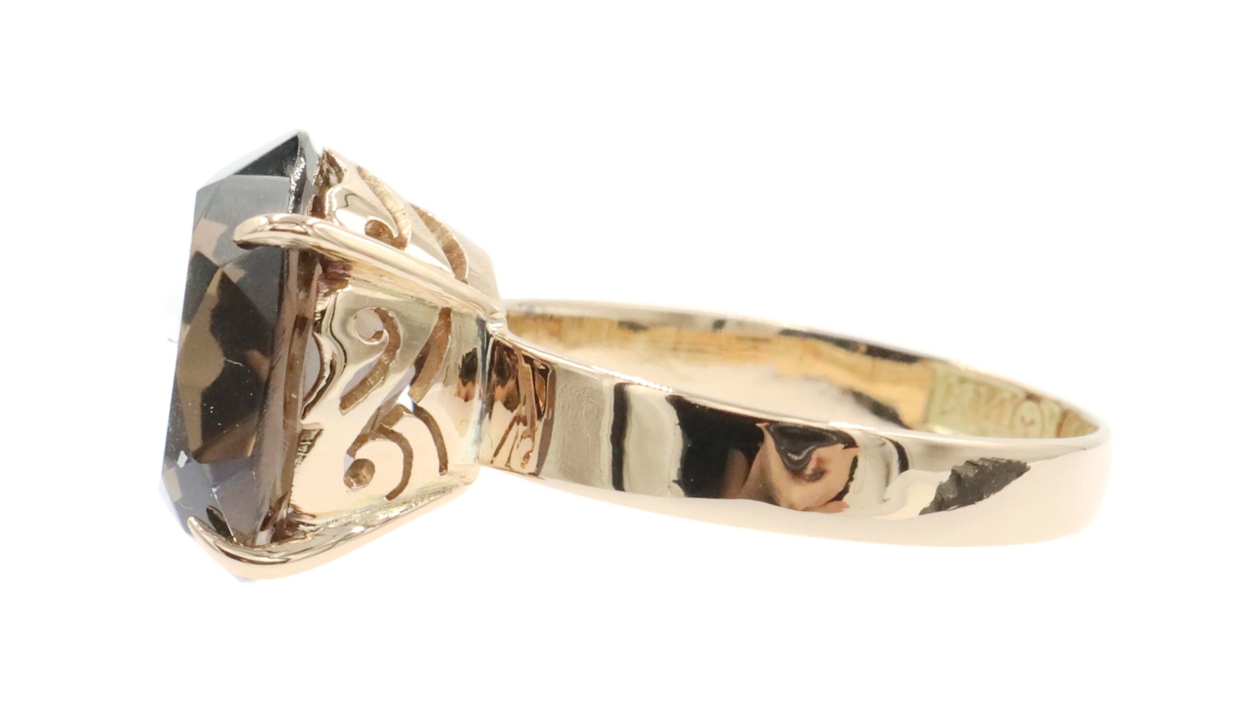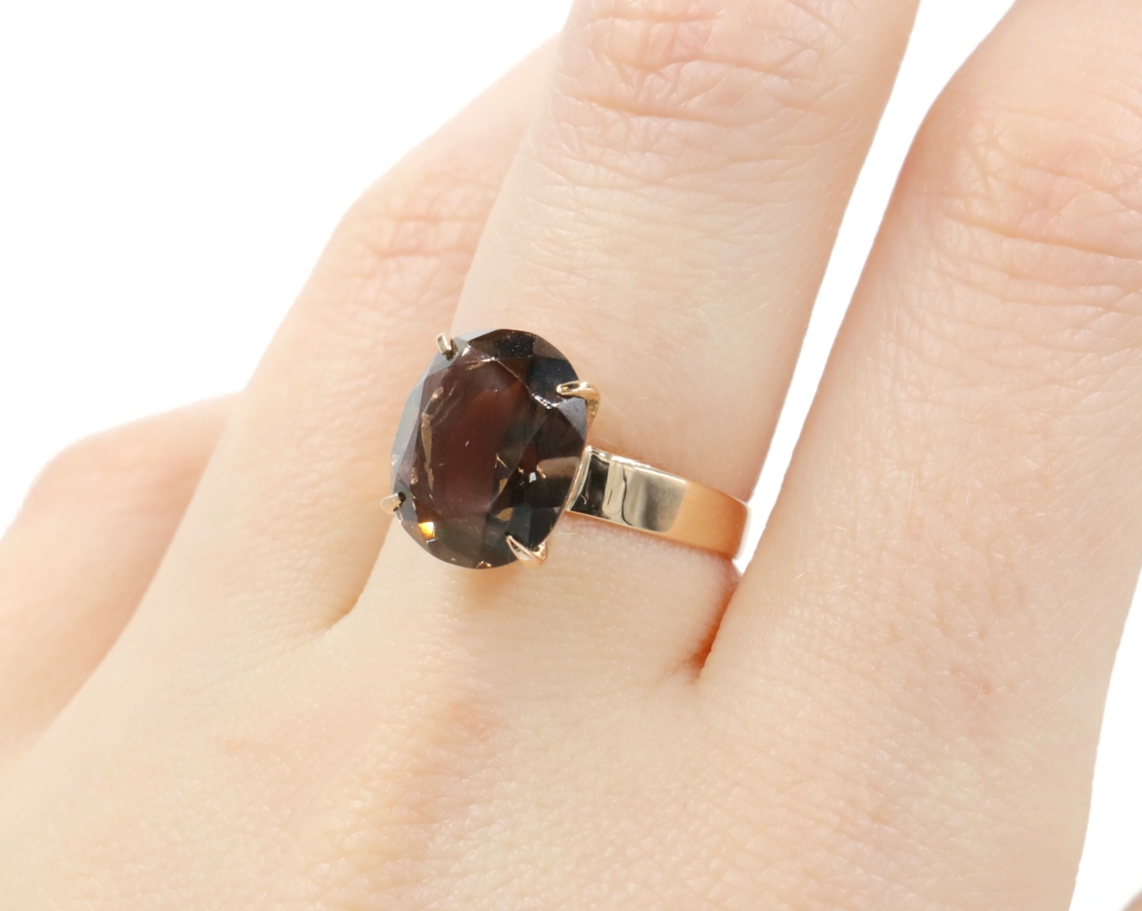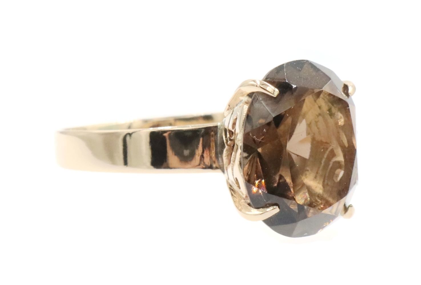 Women's Solitaire 3.05 Ct Oval Smoky Quartz 14KT Yellow Gold Gemstone Ring 2.63g | USA Pawn