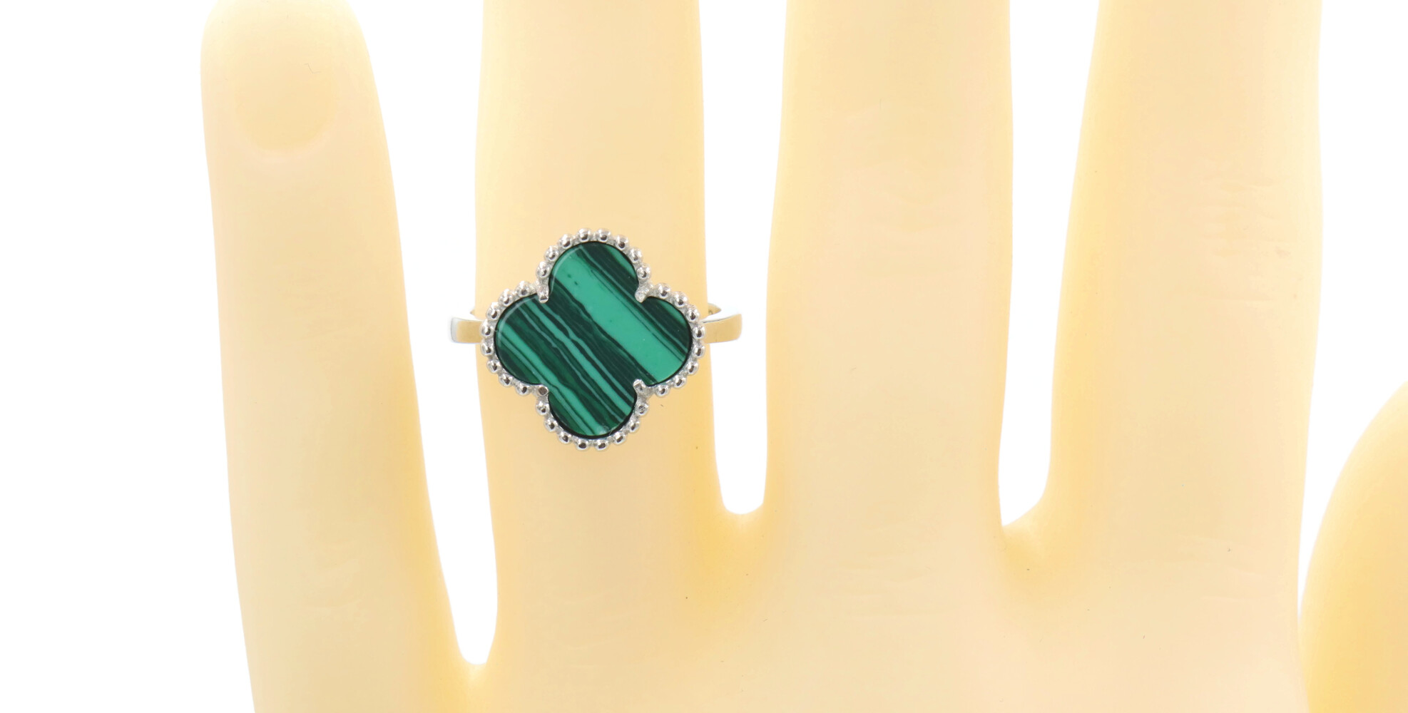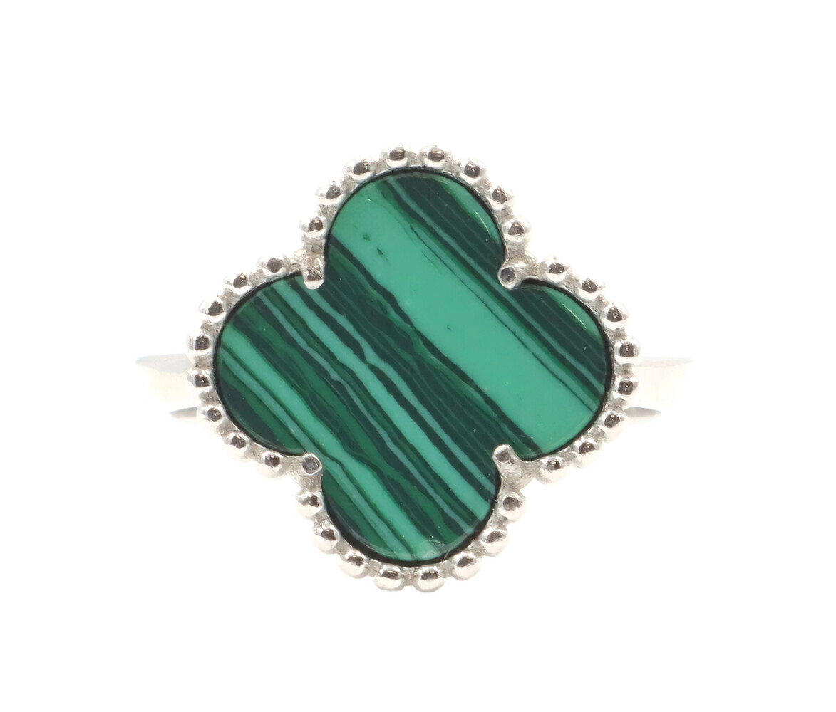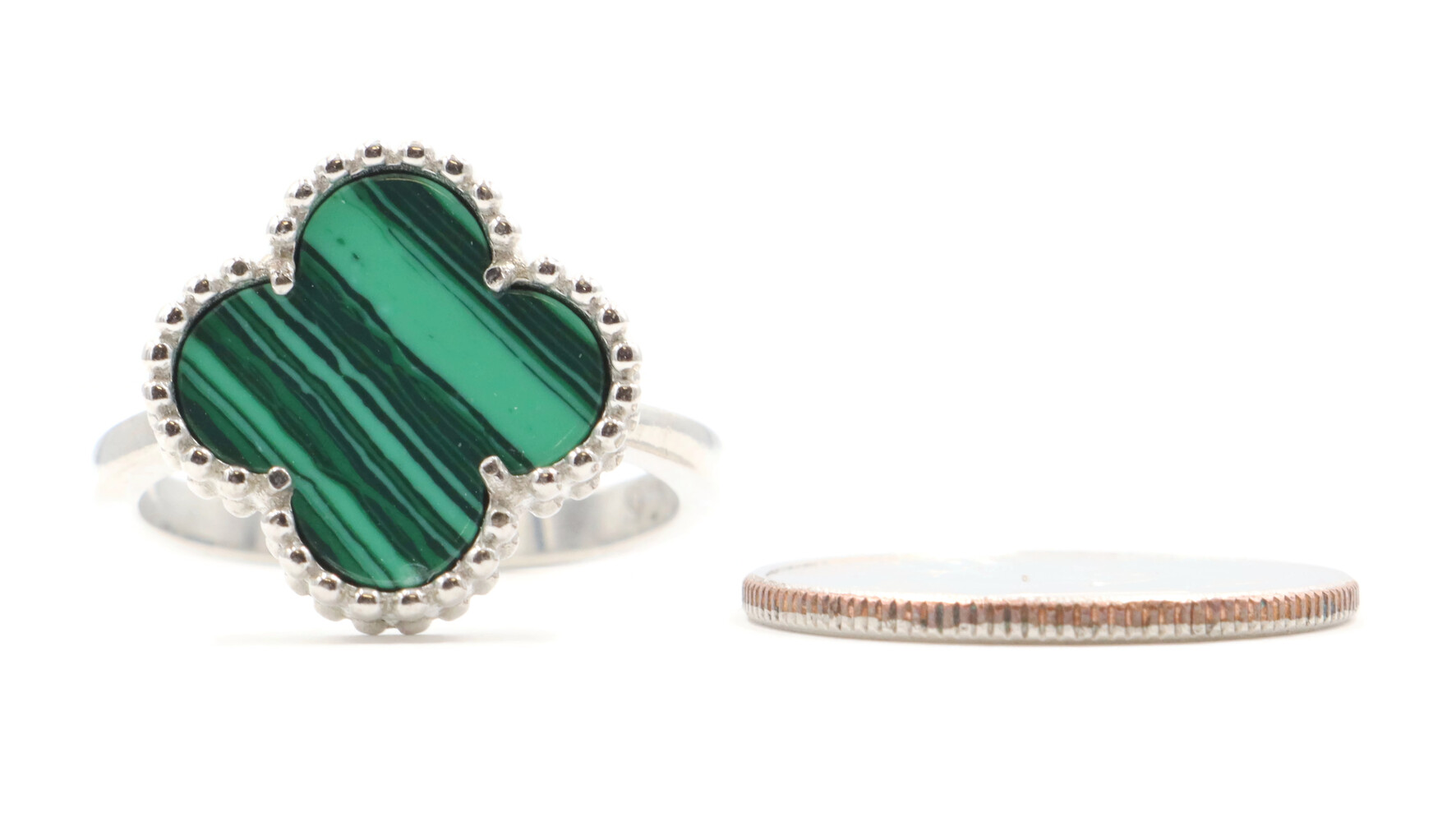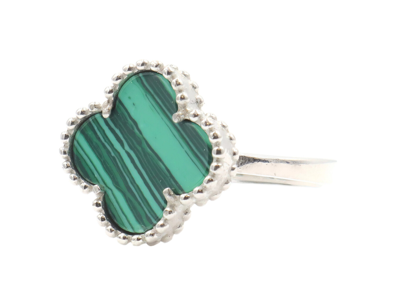 Women's Sterling Silver 13.9mm Faux Malachite 4 Leaf Clover 925 Statement Ring | USA Pawn