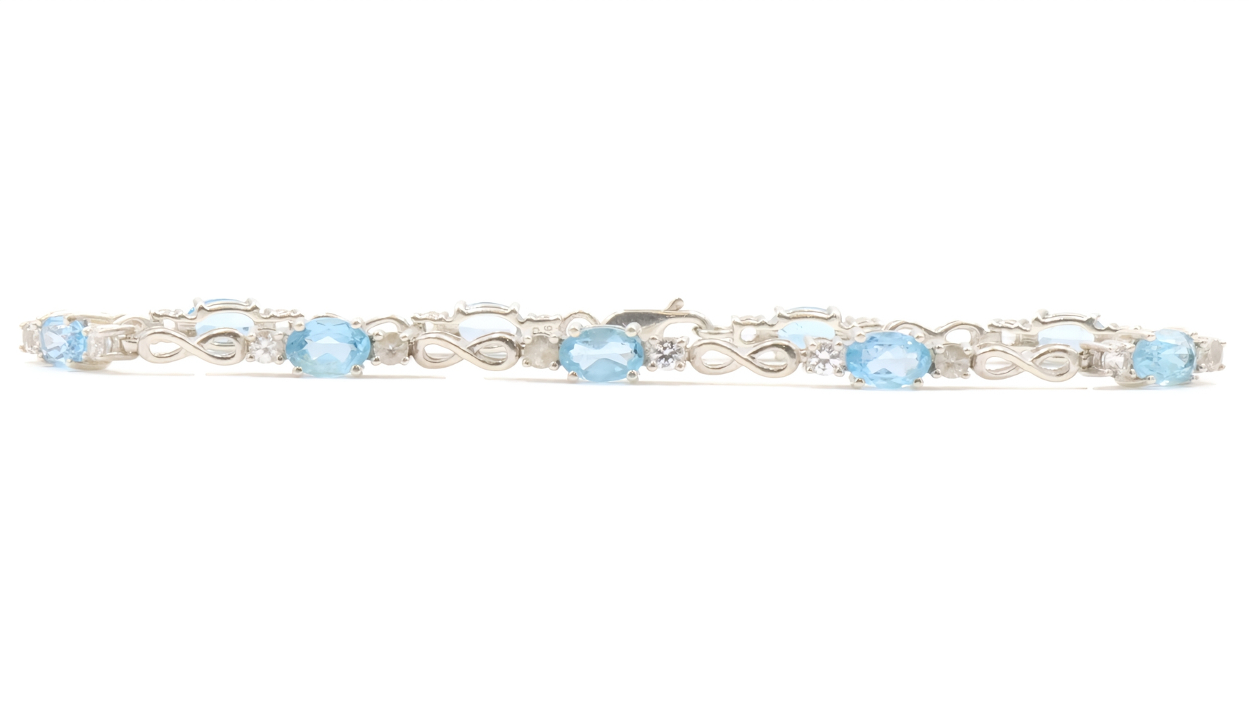 Women's Sterling Silver 7.5" White and Blue Oval Cut CZ Infinity Tennis Bracelet | USA Pawn