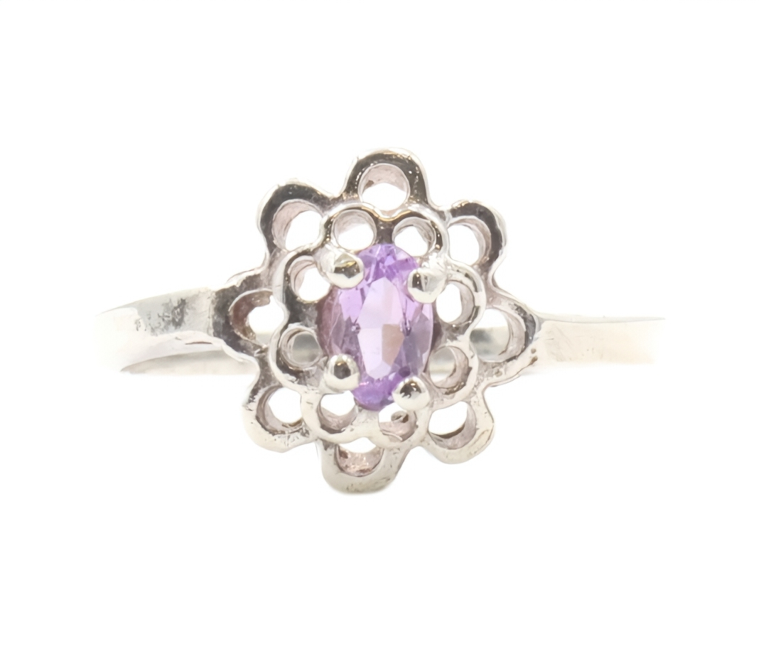 Women's Sterling Silver 925 Oval Cut Purple CZ Solitaire Estate Flower Ring | USA Pawn