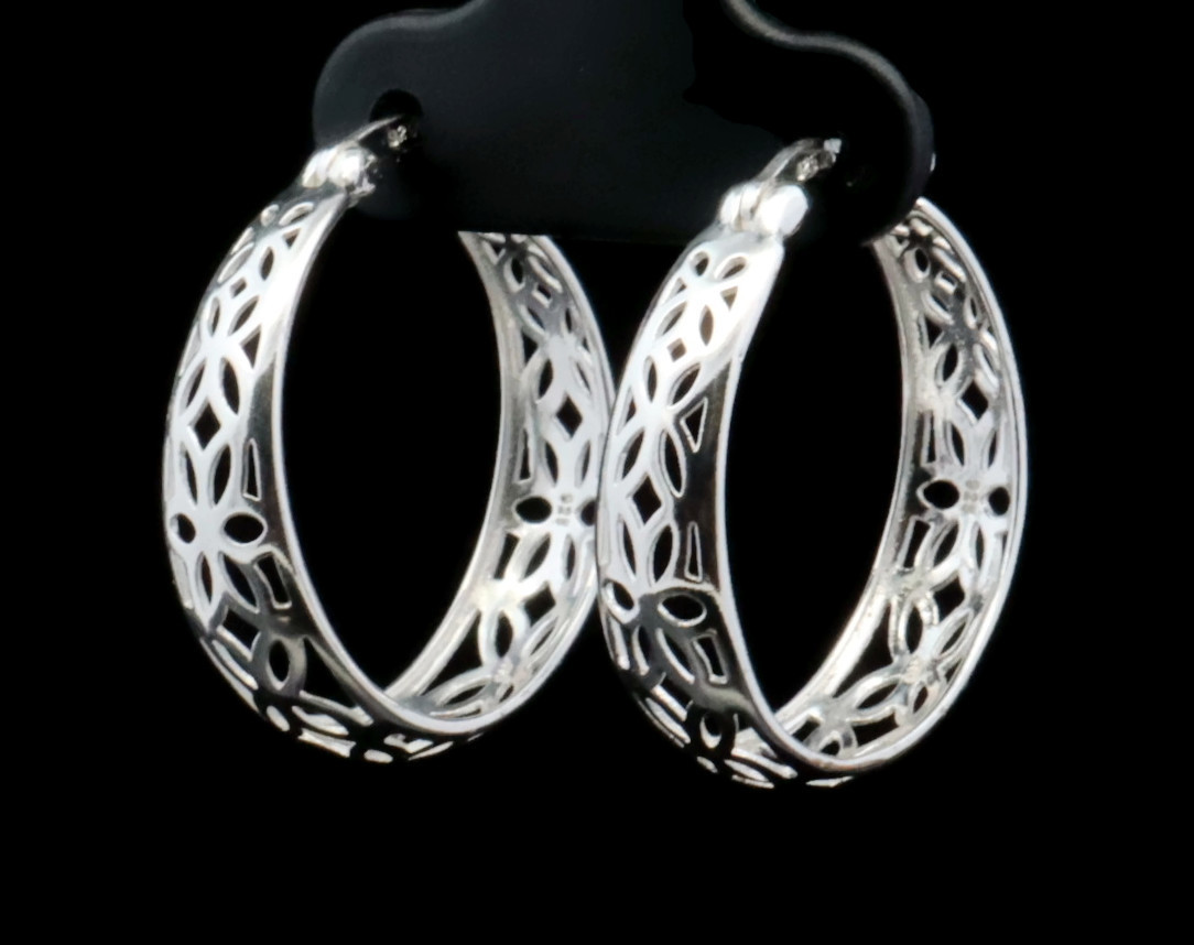 Women's Sterling Silver 925 Unique Cut Out Style 24mm Medium Hoop Earrings 2.6g