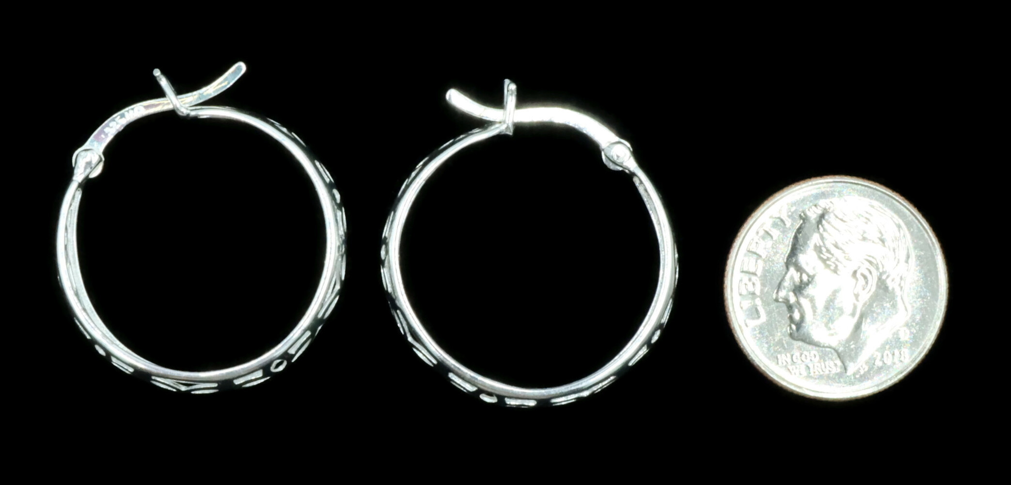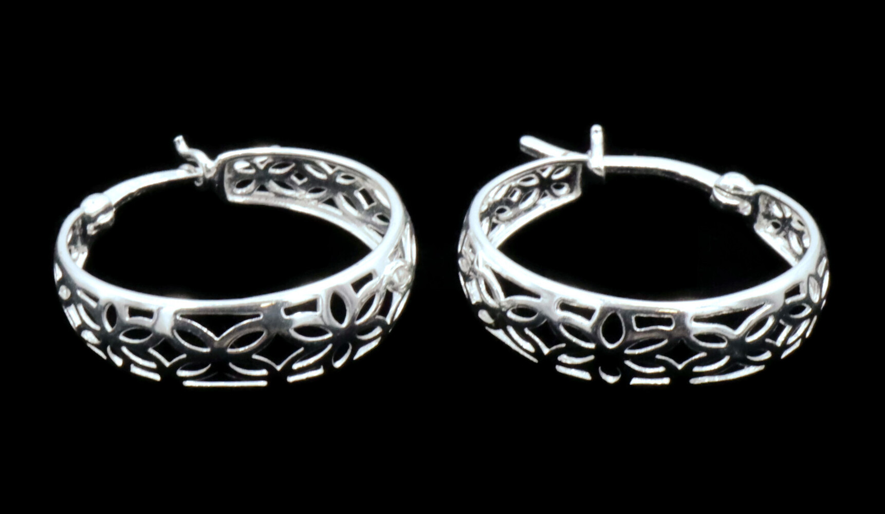 Women's Sterling Silver 925 Unique Cut Out Style 24mm Medium Hoop Earrings 2.6g | USA Pawn